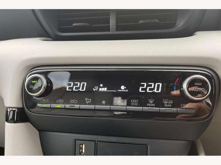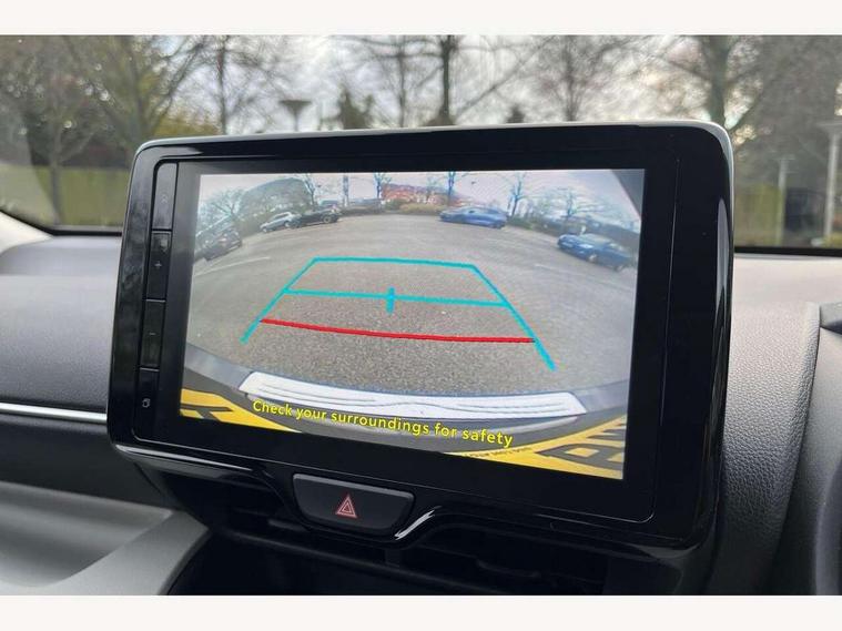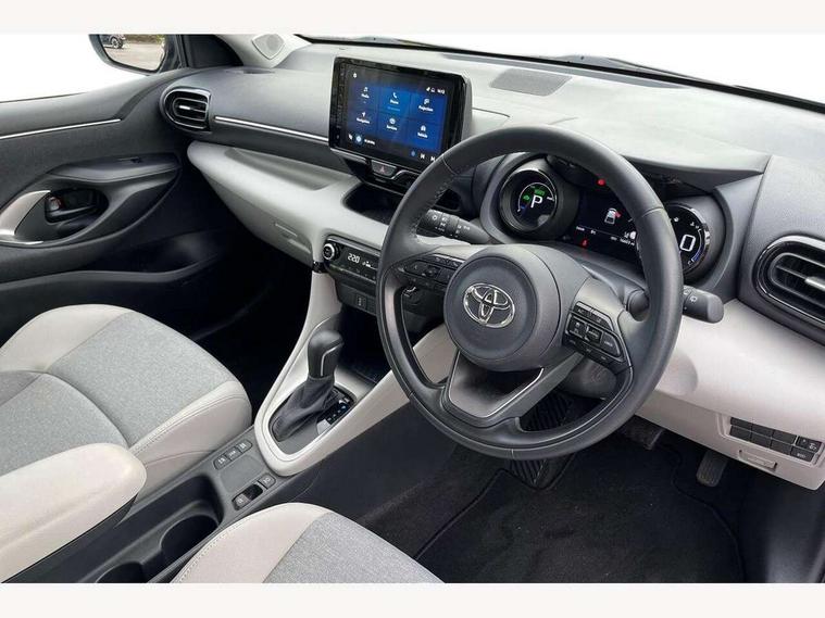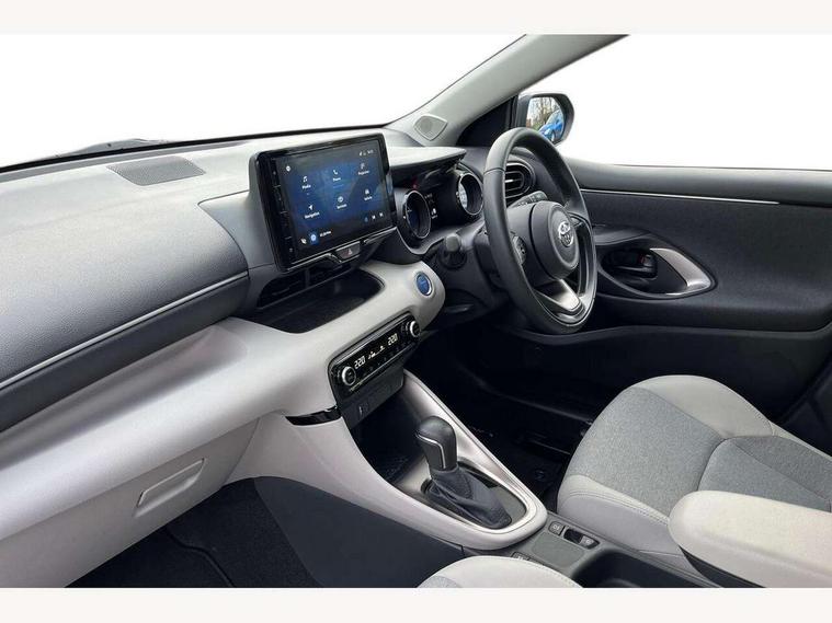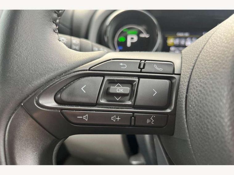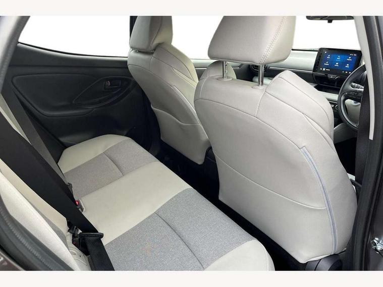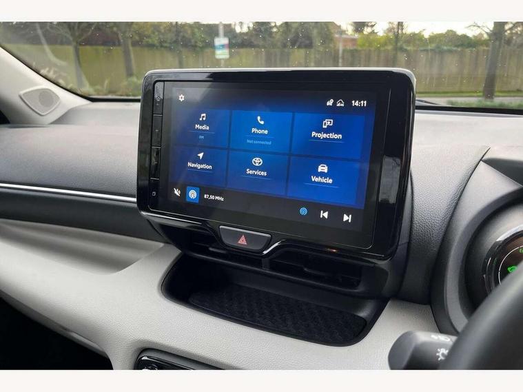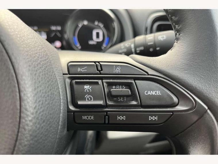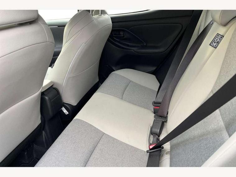 Adaptive cruise control, Adjustable speed limit with speed warning, Blind spot monitoring, Bluetooth connectivity, Colour binocular inspired displays with digital speedometer, E-call, Electric power steering, Hybrid energy display, Multi information display switches on steering wheel, Reversing camera, Smartphone integration with Apple CarPlay and Android auto, Tailgate, Touch 2 navigation system, Voice recognition, Vehicle Stability Control (VSC), 6 speakers, 9" HD multimedia display touch screen with Toyota smart connect, USB connection, Acoustic windscreen glass, Auto windscreen wipers, Automatic headlights, Automatically retractable door mirrors, Body coloured door mirrors, Electric adjustable heated door mirrors, Follow me home headlights, Front auto power windows with anti jam protection, Full LED rear lights, LED daytime running lights, LED front fog lights, LED front light guide, LED Headlights, LED High mounted stop lamp, LED Indicators, LED rear light guide, Manual headlight levelling, Painted chequered front grille, Rain sensor, Rear auto power windows with anti jam protection, Rear privacy glass, Rear side wing doors, Rear spoiler, Rear wiper, Satin lower front grille, Shark fin antenna, Turning signal integrated indicators in door mirrors, Variable front intermittent wipers, 3 adjustable rear headrests, 3 seat bench in 2nd row, 3 spoke leather steering wheel, 60/40 split folding rear seat, Active headrests, Adjustable boot height, Coat hooks in rear grab handles, Cup holders (2 front & door), Data Communication Module (DCM) connected services, Dual zone automatic air conditioning, Fabric seat with partial synthetic leather upholstery, Front armrest, Front sport seats, Glovebox, Grey roof lining, Height adjustable driver's seat, Height adjustable passenger seat, Isofix seat fixing, Leather gearshift, Map pockets on the backs of the front seats, Pollen filter, Shopping bag hooks, Single front passenger seat, Tilt/telescopic steering column, Parking pack - Yaris, 3 point seatbelts on all rear seats, ABS+EBD+Brake assist, Electronic parking brake, Emergency brake light system (EBS), Front passenger airbag on/off switch, Front seatbelt reminder, Hill start assist control (HAC), Rear child proof door locks, Rear seat belt reminder, Supplemental Restraint System (SRS) 8 airbags: Driver & passenger's airbags, dual side curtain airbags, side impact airbags, front centre airbag, Toyota Safety Sense 2, Precollison + Night time Pedestrian & Cyclist Detection, Lane Trace Assist, Auto High Beam, Intelligent ACC & Road Sign Assist, Tyre pressure warning system, 2x Master key, Alarm/immobiliser, Keyless smart entry with push button start, Remote AC via MyT, Remote locking via MyT, Remote powered central double locking doors, Satin chrome interior styling, Soft touch instrument panel, Space saver spare wheel,