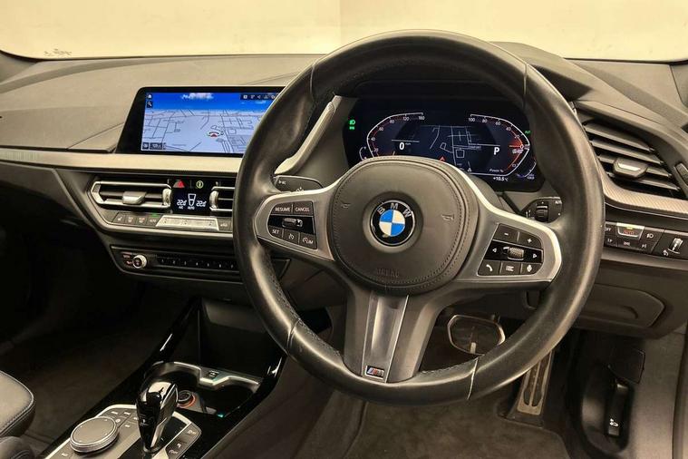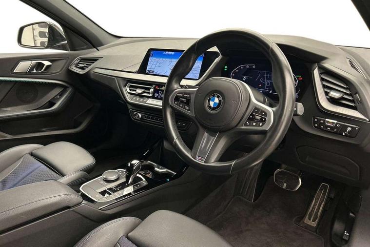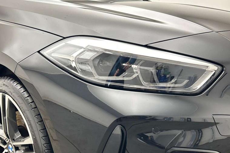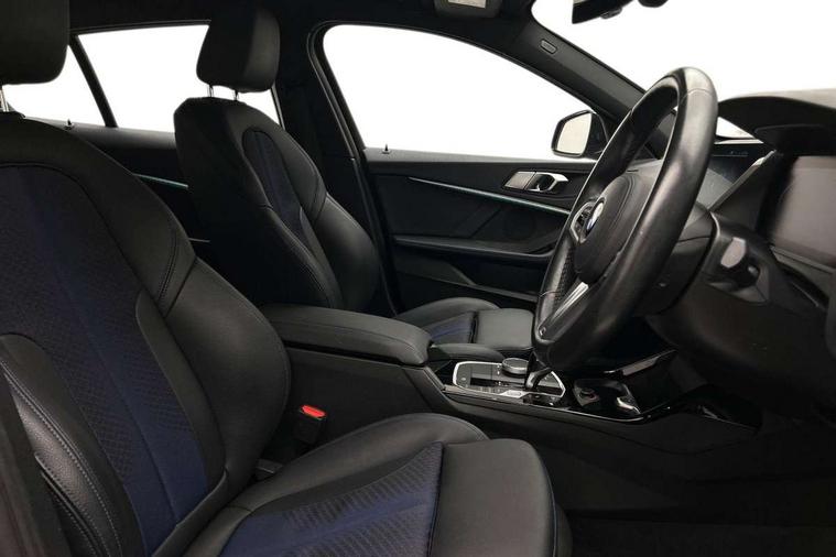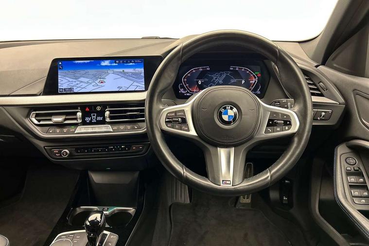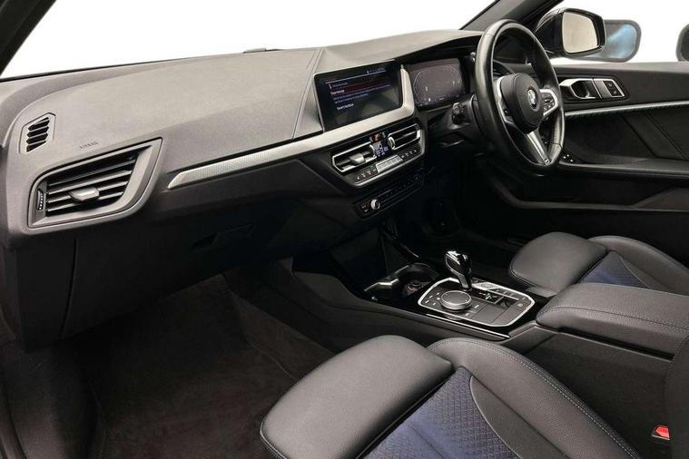 Active guard plus, Attentiveness assist, BMW Online services, BMW Teleservices, Check Control warning system for monitoring of lights and door/luggage compartment open warning, Connected eDrive Services, Eco pro mode, Integrated owners handbook, Oil sensor for level and grade, On board computer, Optimum shift indicator, Personal Profile, Pull away assistant, Speed limiter, Aluminium lightweight construction, Anti roll bar front and rear, Balancer shaft, Double VANOS, Drive Performance Control, Electronic differential lock, High precision injection, M sport suspension, Petrol Particulate Filter, VALVETRONIC engine management, Bluetooth audio streaming, DAB Digital radio, Auto dimming rear view mirror, Automatic headlight beam throw control, Automatic windscreen wipers and automatic headlight, Body colour door handles, Body colour mirror caps, Chrome 'M' logo side designation, Chrome exhaust tailpipe in single, round (Exhaust tailpipe, stainless steel - single, round), Chrome kidney grille frame with Satin Aluminium struts, Direction indicator side lights in exterior mirrors, Electric folding and anti dazzle exterior mirrors, Fading support, Follow me home headlights, Front and rear bumper system with replaceable deformation elements, Front and rear electric windows with open and close fingertip control, anti trap facility and comfort closing, Front door sill finishers in black plastic with M designation in metallic look, Green tinted heat protection glazing, Heated, electrically adjustable exterior mirror aspheric on driver side, convex on passenger side, High gloss shadowline window frame, Recess cover mirror frames and B/C pillar embelisher trim, High level third brake light, LED daytime running lights, LED eyebrow turn indicators, LED front fog lights, Lightweight engineering, Matt black air guide grilles, Model designation on right side of tailgate, Nearside reverse light in rear light cluster, Preparation for high beam assistant, Rain sensor including auto headlights activation, Rear fog lights, Rear window wiper, Shark fin antenna, Visible VIN plate, Welcome lighting, 12V power socket in centre console, 3 rear seat head restraints, 3 spoke M sports design leather steering wheel finished in nappa leather with specific M badge, Anthracite headlining, Anthracite Velour floor mats, Child seat ISOFIX attachment for two outer rear seats and front passenger seat with anchorage points, Conditioned based service, Dakota leather upholstery with perforation and contrast stitching, Driver and front passenger seat heating, Folding rear clothes hook, Four grab handles integrated in roof lining, Front and rear door pockets, Front and rear door pockets with bottle holders, Front and rear side armrest integrated into door trim, Front armrest foldable with integrated storage compartment, Front sports seats with electric side bolster adjustment, Glove compartment, Height adjustable front head restraints, Manual adjust steering wheel, Multi-function controls for steering wheel, Storage compartment in centre console, Sun visors with vanity mirrors and insert tab, Two zone automatic air conditioning, Additional interior lighting pack - 1 Series, Connected pack professional - 1 Series, Extended storage pack - 1 Series, Interior lights pack - 1 Series, Luggage compartment pack - 1 Series, M Sport exterior styling aerodynamics pack - 1 Series, 2 tone horn, 3 point seatbelts on all seats, front pyrotechnic belt tensioners, stopper and belt force limiters, rear coded belt buckles, Airbags - front driver/passenger, front & rear curtain, front side, Anti lock braking system (ABS) with brake assist, BMW emergency call, Brake drying, Braking readiness, Crash sensor activating central locking release, hazard warning lights, fuel cut off, interior lighting + activation of safety battery terminal clamp, Driver and front passenger seat belt security check, Dynamic stability control + (DSC+), Dynamic Traction Control - DTC, Electrically operated hand brake, Front and rear disc brakes, Front passenger manual airbag deactivation, Seatbelt warning, Side impact protection, Tyre pressure monitoring system, Warning triangle and first aid kit, Automatic drive away locking facility, Central locking switch for all doors, fuel filler cap and luggage compartment, Deadlocking function system to all doors, Locking wheel bolts, Remote control with integrated key with High-gloss Black inlay and M designation and 1 button for open/ close lock, window, open luggage compartment, Start/stop button with comfort go keyless engine start and auto start stop deactivation button, Thatcham Cat.1 alarm and immobiliser, Contrast stitching on instrument panel, Reduced rolling resistance tyres,