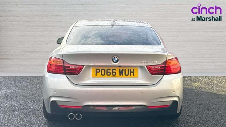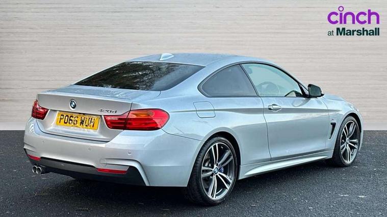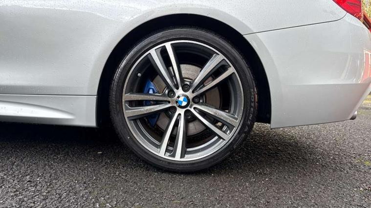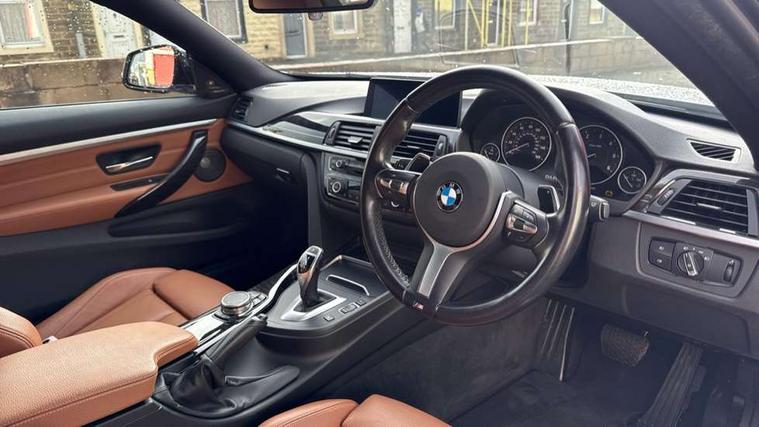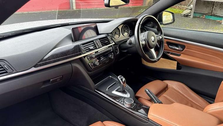 BMW Online services, BMW Teleservices, Brake pad wear indicator warning light, Check control system, Door/boot open warning, Front/rear Parking distance control, Lights on warning, Oil temperature gauge, On board computer, Outside temperature display, Run flat indicator, Service interval indicator, Stop/start button, Diesel particulate filter, Drive Performance Control, Sports function on gearbox with steering wheel mounted gearshift paddles, Auxiliary point for auxiliary devices, Bluetooth audio streaming, BMW professional radio/CD/MP3, DAB Digital radio, 2 speed adjustable intermittent wipers with wash/wipe function, Auto dimming rear view mirror, Body colour bumpers, Body colour door handles, Body colour door mirrors, Body colour roof mouldings, Chrome exhaust tailpipe, Chrome kidney grille with chrome vertical slats, Daytime running lights, Door sill finishers, Electric adjustable heated door mirrors, Electric front windows/one touch facility, Follow me home headlights, Front fog lights, Headlight washers, Heat insulating tinted glass, Heated windscreen washer jets, High gloss shadow line, M aerodynamic bodystyling, Rain sensor including auto headlights activation, Windscreen with grey shadeband, 12V sockets in front centre console and passenger footwell, 3 spoke leather M sport multifunction sports steering wheel, 4 grab handles, Anthracite headlining, Anthracite Velour floor mats, Dual zone climate control, Folding storage compartment with glasses holder + coin tray, Front centre armrest with storage compartment, Front cupholders x 2, Front head restraints, Front sports seats with electric side bolster adjustment, Front/rear armrests within door panels, Glovebox with lid, Heated front seats, Integrated rear head restraints, ISOFIX child seat preparation+airbag deactivation, Lashing eyelets in boot, Leather gearknob, Leather handbrake grip, Reach + rake adjustable steering column, Rear centre armrest, Storage compartment in rear centre console, Sunvisors with vanity mirrors, Toolkit located in luggage compartment, Extended lights package - 4 Series, 3 point seatbelts on all seats, ABS/EBD, Automatic Stability Control (ASC), BMW emergency call, Cornering brake control (CBC), Crash Sensor - activates hazard/interior lighting + unlocks doors, Driver seatbelt warning indicator, Driver/Front Passenger airbags, DSC+, Dynamic brake control, Dynamic Traction Control - DTC, Front seatbelt force limiters, Front seatbelt pretensioner, Front side airbags, Hill start assist, ITS head airbags for front/rear, Tyre pressure monitor, Warning triangle and first aid kit, Drive away door locking, Electronic immobiliser, Remote central locking, Remote control Thatcham category 1 alarm,