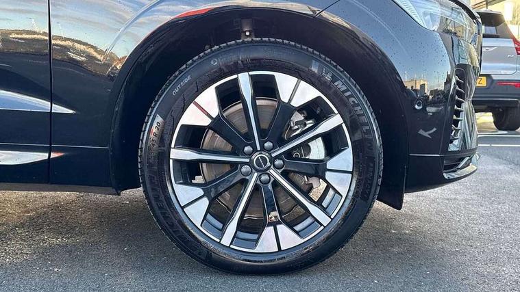 11.2" centre console touch screen, 12.3" Progressive Driver Display, 360 degree surround view parking camera with side proximity sensors, Adaptive cruise control, Adjustable steering wheel force, Android auto (Wired), Apple carplay (wired), Bluetooth handsfree system, Drive mode settings, Driver alert control with lane keeping aid, Emergency services call system, Front and rear park assist, Google Automotive Services, Intelligent speed assistance, Oncoming Lane Mitigation, PAS, Power operated tailgate with handsfree opening and closing, Service interval indicator, Speed limiter, Speed sensitive steering, Trip computer, Volvo cars services with app, Volvo on call with App, Wireless/Inductive Mobile Phone Charging, 2 phase on board charger 6.4kW (home charging limited to 3.7kW), 6m 3 phase 16amp Type 2 / mode 3 charge cable, 8 speed automatic transmission with start/stop + manual change functions, Active four-C chassis + four corner adaptive damper with electronic rear air suspension, Electric rear axle drive, Recharging port located in nearside front wing, DAB Digital radio, Low speed exterior sound speaker, Premium Sound by Bowers and Wilkins, dirac live, dolby pro logic II surround sound, 14 speakers/1100W output and subwoofer, Steering wheel remote infotainment controls, Active bending headlights with adaptive shadow technology, Adaptive brake lights with high level LED brake lights, Auto dimming interior + exterior mirrors, Automatic headlight levelling system, Automatic LED Headlights + Active high beam incorporating daytime running lights, Dark tinted windows for rear side windows and cargo area, Electric adjustable/heated/auto power folding door mirrors, Electric front+rear windows, Front aluminium tread plates, Headlight cleaning system, High gloss black door mirrors, High gloss black front and rear bumper decoratives, High gloss black mesh front grille with high gloss black surround, Home safe and approach lighting, Integrated roof rails in high gloss black, Power glass tilt and slide panoramic sunroof with sun curtain, Puddle lights, Rain sensor with automatic windscreen wiper activation, Rear side wing doors, Rear wiper, Roof antenna, Roof spoiler, Tinted windscreen, Visible VIN plate, 12V socket in front tunnel console and luggage compartment, 2 zone electronic climate control with Clean zone air quality system and pollen filter, 3 seat bench in 2nd row, A-pillar parking ticket holder, Air purifier particulate matter (PM) 2.5 filter, B Pillar ventilation, Bright metal luggage scuff plate, Centre console cupholders and storage, Charcoal floor mats, Front and rear courtesy lights, Front and rear door pocket illumination, Front cupholder illumination, Front footwell illumination, Front reading lights, Front seat cushion extensions, Glovebox compartment with illumination, Head restraints for all seats, Heated front seats, Heated steering wheel, Height/reach adjustable steering column, Illuminated luggage compartment, Illuminated vanity mirrors + ticket holder, Inner door release handle illumination, ISOFIX attachment on outer rear seats, Load cover, Load protection net, Multi directional lumbar support, Power driver seat with memory + exterior mirrors memory, Power folding rear headrests, Power passenger seat with memory, Rear armrest with cupholder, Rear footwell and front and rear side step illumination, Rear reading lights, Rear seat concealed storage, Single front passenger seat, Tailgate illumination and ambient door lighting, Underfloor stowage compartment, Versatile split folding rear seat - 60/40, Driver assist pack without Adaptive cruise control - XC60, 5 three point seatbelts, City safety with steering support with Pedestrian + cyclist + front collision warning with full auto brake and rear auto brake, Drivers knee airbag, Dual stage driver/passenger airbags, Electronic parking brake with auto hold, First aid kit, Front seats SIPS airbags, Hill descent control - Off-road drive mode, Hill start assist, IC (Inflatable Curtains) - Full Length, Passenger airbag cut-off device, Power child locks on rear doors, Run off Road Mitigation, Run off Road Protection, Seatbelt reminder and pretensioners, SIPS (Side Impact Protection System), Slippery road and hazard light alert, Stability and Traction Control with Spin control, Engine Drag Control and Corner Traction Control, Tyre pressure monitoring system, Vehicle deceleration control with Anti-lock Brake System, Electronic Brake Distribution and Emergency Brake Assist, Warning triangle, WHIPS whiplash protection system - front, Anti-theft alarm including immobiliser/volume sensor + level sensor, Key integrated remote control central locking + fuel flap with deadlocking system and auto open/close power windows, Keyless Drive (includes Keyless Entry and Keyless Start), Locking wheel nuts, Private locking for tailgate, Tailored instrument panel with contrast stitching, Summer tyres, Tyre sealant kit + 12v compressor,