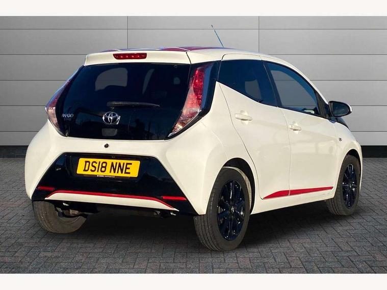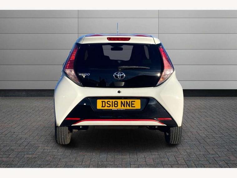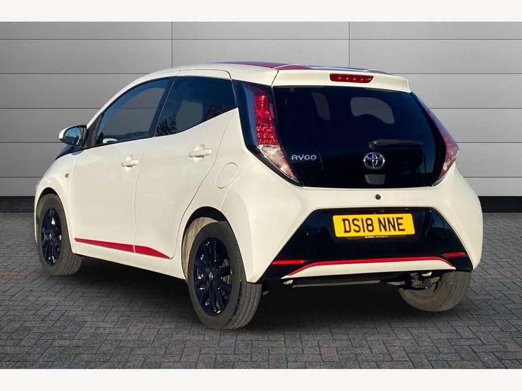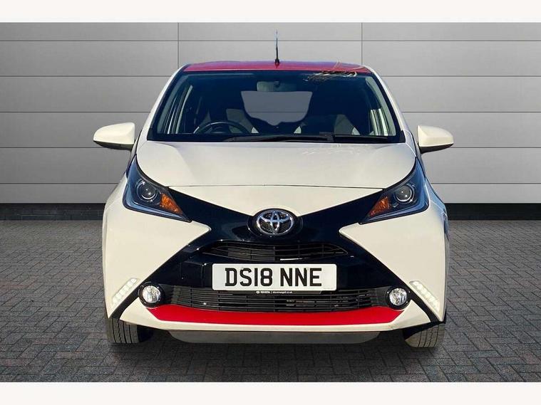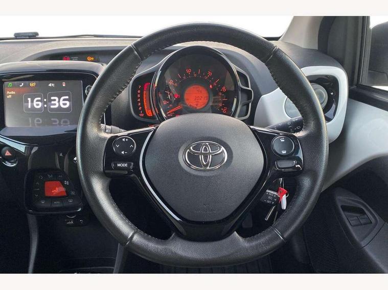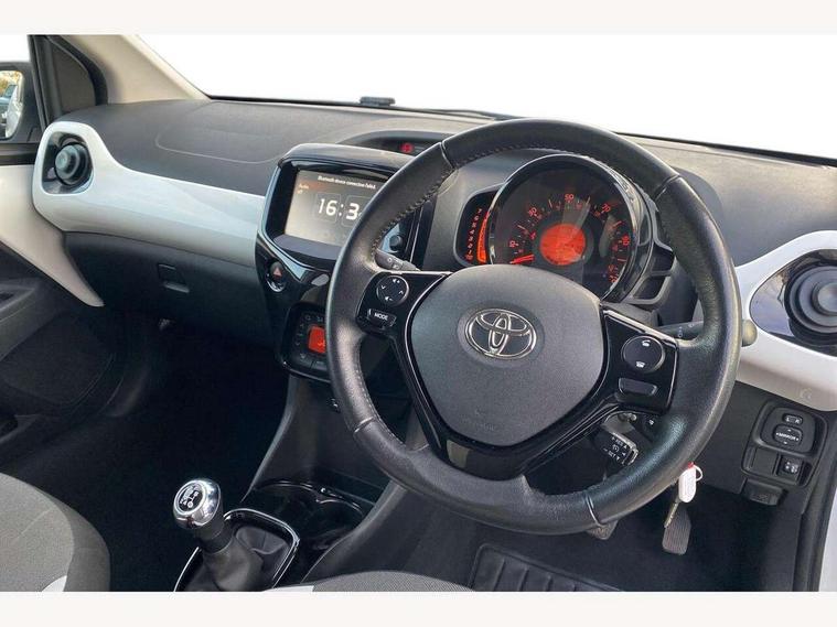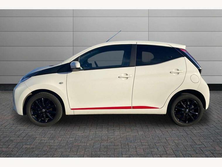 7" touch screen, Bluetooth system, Digital clock, Electric power steering, Fuel indicator with low level warning, Lights on warning, MirrorLink, Rear view camera, Speed limiter, Tachometer, Vehicle Stability Control (VSC), 4 speakers, Auxiliary input socket, DAB Digital radio, Multimedia System, Stereo radio, USB connection, 2 speed wipers/variable intermittent/mist function, Automatic headlights, Body colour bumpers, Body colour door handles, Body colour door mirrors, Electric adjustable door mirrors, Electric front windows, Front fog lights, Green tinted glass, Headlamp levelling, Heated door mirrors, Heated rear windscreen, LED daytime running lights, Privacy glass, Rear spoiler, Rear window demister, Rear wiper, Red front bumper accent, Red roof decal, Red side sills, Roof mounted aerial, 12V Accessory socket, 3 spoke leather steering wheel, 50/50 split folding rear seat, Air recirculation system, Auto air conditioning, Body colour instrument panel, Centre console storage, Chrome insert to gearknob, Chrome interior door handles, Driver and passenger sunvisors, Driver's seat height adjuster, Driver/passenger seat recline/slide adjust, Driver/passenger vanity mirrors with covers, Front and rear door pockets, Front cupholder, Front map reading lights, Front sports seats, Gleam cloth upholstery, Glossy black gear shift surround, Glovebox, Height adjustable front head restraints, Isofix system on outer rear seats, Leather gear knob, Pollen filter, Rear cupholders, Rear headrests, Steering wheel mounted radio/phone controls, Stepless tilt adjustable steering column, Storage bins on all doors, Tonneau cover, Outburst pack red pop - Aygo, ABS, Driver and passenger airbags, ESP, Fasten seatbelt reminder, Front side airbags, Height adjustable front seatbelts with pre-tensioners and load limiters, Hill start assist, Passenger airbag deactivate switch, Rear child proof door locks, Side curtain airbags, Tyre pressure warning, Engine immobiliser, Lockable fuel cap, Remote central locking, Body colour dashboard, Gloss black air vent surround, Gloss black centre console, Tyre repair kit,