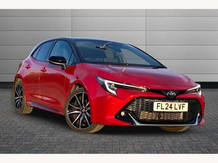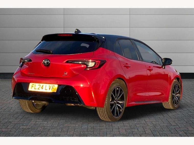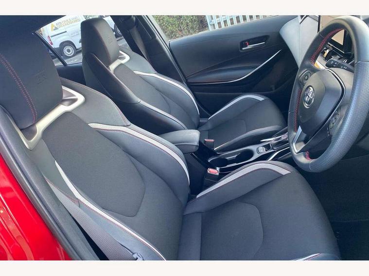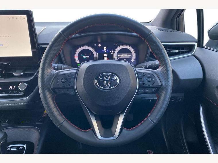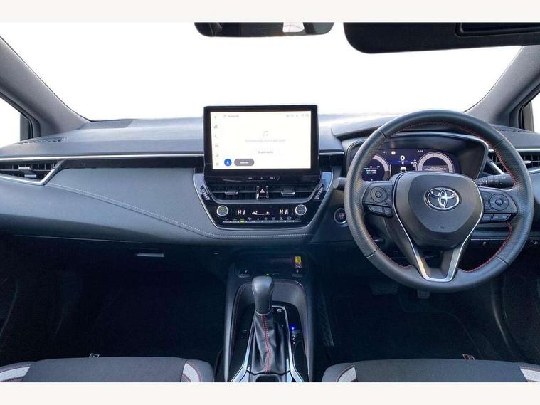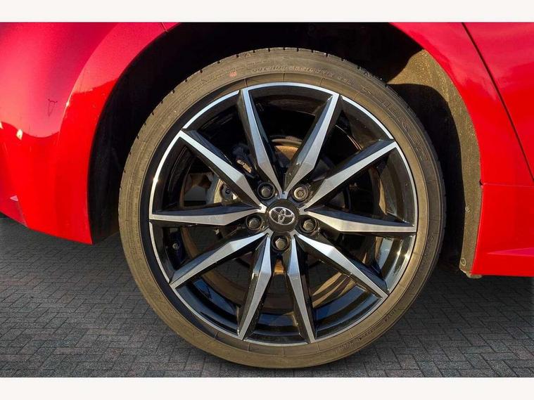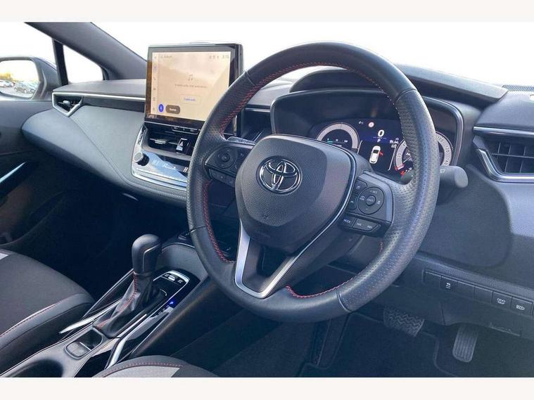 10.5" Multimedia display screen, Bluetooth telephone connectivity, Connected car functionality upgrade, tracker, remote status and e-care, Drive mode select (Eco, Normal), E-call, Electrically assisted power steering, EV drive indicator, Front and rear parking sensors with auto brake, Full Digital 12.3" TFT Digital Combimeter, Key reminder warning, Lane Departure Alert (LDA) switch on steering wheel, Memory on adjustable speed limiter, MyT connected services, Proactive driving assist (PDA), Reversing camera, Smart entry and push button start with GR Logo, Smartphone integration with Apple CarPlay and wired android auto, Tailgate, Toyota remote services, Toyota smart connect navigation, Wireless charger, Gasoline particulate filter, Vehicle Stability Control (VSC), 6 speakers, AM/FM radio, DAB Digital radio, Front USB-C in centre console, Front USB-C in dashboard, Smart voice assist/ Voice recognition, USB and Aux in connectors + 12V front outlet, Anti-jam protection on power windows, Auto up and down function on all power windows, Automatic folding mirrors, Automatic headlights with high beam assist, Black centre and side air vents, Black toyota logo in front, Body coloured bumpers, Body coloured door mirrors, Body coloured outside door handles, Dark chrome lower grille, Electrochromatic mirror, Follow me home headlights, GR Sport dark chrome front mesh grille and black rear grille, GR Sport exclusive under guard, GR sport scuff plates, LED daytime running lights, LED dual beam projector headlights, LED front fog lights, LED High mounted stop light, LED rear combi lights with LED lightguide, Manual headlight levelling system, New grille pattern, Noise reduction layer on windscreen, Piano black diffuser, Power adjustable heated door mirrors, Power front windows, Power rear windows, Privacy glass with UV filter, Rain sensing wipers, Rear side wing doors, Rear window defogger, Rear window wiper, Reverse tilting door mirrors, Rocker and door lower moulding, Roof spoiler, Satin chrome insert on front air vents, Satin chrome insert on front door assist grips, Satin silver front spoiler, Shark fin antenna, Tailgate release with push button, Time adjustment on intermittent wiper, Turning signal integrated indicators in door mirrors, Unique lower skirt, Unique side rocker with black insert, UV-filter on driver and passenger windows, 2 Shopping bag hooks in luggage compartment, 3 rear headrests, 3 seat bench in 2nd row, 3 spoke leather steering wheel with satin insert/red stitching + gear knob, 4 tie down hooks in luggage compartment, 60/40 split folding rear seat, Adaptive cruise control (ACC) switch on steering wheel, Adjustable speed limiter switch on steering wheel, Audio, multimedia and telephone switches on steering wheel, Black armrest on centre console box, Black gear shift console, Boot light, Centre room light, Driver and front passenger personal light, Driver and passenger assist grip, Driver and passenger seatback pockets, Driver and passenger sun visor with mirror and light, Dual zone automatic air conditioning with ECO mode switch, Fabric/synthetic leather upholstery, Front and rear cup and bottle holders, Front door pockets, Front head restraints, Front passenger seat, Front sliding synthetic leather armrest, GR Sports seats with partial leather bolsters, Heated seats, Illuminated entry system in room lamp, ISOFIX seat fixing (2 fixings on rear outer seats), Manual height adjustable for driver and front passenger seat, Manually tilt with sliding driver and front passenger seat, Nanoe-X air purifier, Parcel shelf, Pollen filter, Power window switches with satin chrome inserts, Rear armrest with 2 cupholders, Rear passenger coat hooks (2), Red stitching on gear shift, Remote air conditioning, Satin chrome inside door handles, Satin chrome surround on speedometer, Sliding armrest on centre console box, Slow opening glovebox with lights, Textile floor mats, Tilt/telescopic steering column, Voice recognition switch on steering wheel, Whiplash Injury Lessening (WIL) feature (active headrest) for seats, White ambient lighting on open tray and front cup holder, Toyota safety sense 3 pack - Corolla, 3x3 point rear seatbelts, Adjustable driver and front passenger seat belt extender to top anchor point, Anti lock braking system + Electronic brake force distribution, Brake assist function, Child locks on rear doors, Downhill Assist Control (DAC), Electronic parking brake, Emergency brake light signal (EBS), Front passenger airbag on/off switch, Front seatbelt reminder, HAC - Hill start assist control, Rear seat belt reminder, Seatbelt pretensioners and force limiters, Supplemental restraint system (SRS) 7 airbags - dual driver, dual side curtain, side impact and driver knee airbags, Traction control, Tyre pressure warning system, Acoustic vehicle alert system (AVAS), Alarm with motion sensor and immobilizer, Power passenger window lock, Remote central locking + deadlocks, GR Sport interior styling with accents and exterior styling, Satin chrome dash trim, Soft touch texture on upper dashboard, Stitching on lower dashboard, 18" Black machined face 10 spoke alloy wheels, Tyre repair kit, Unique wheel finish with red wheel cap,