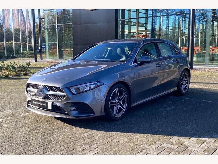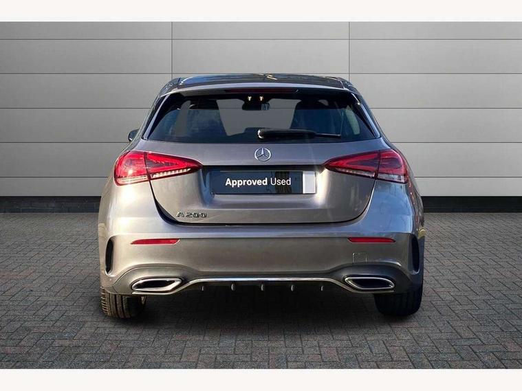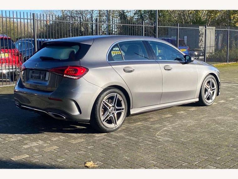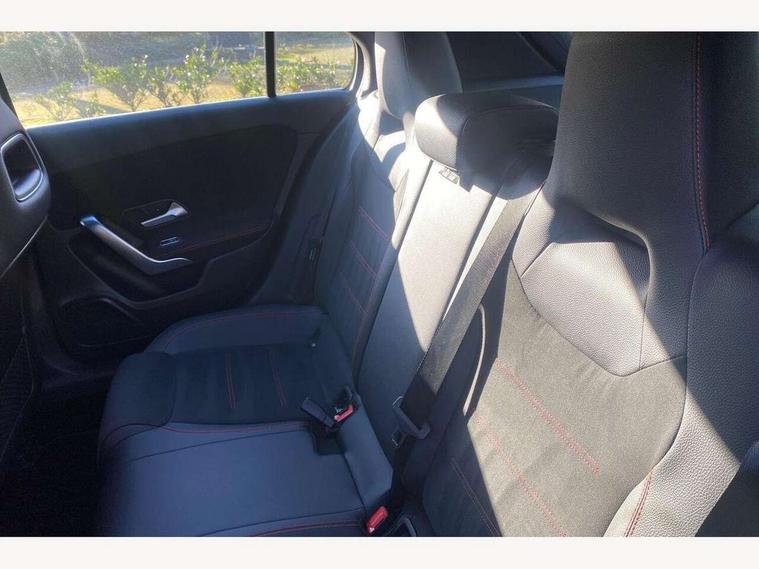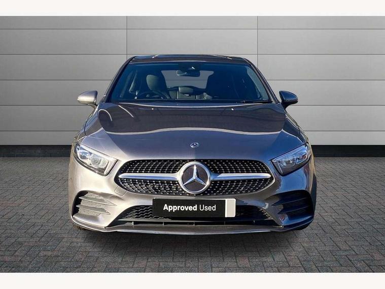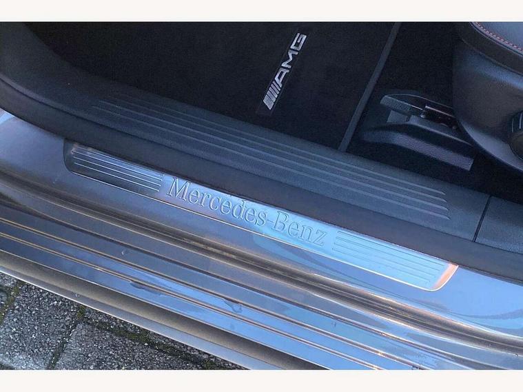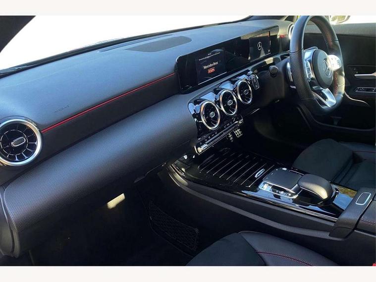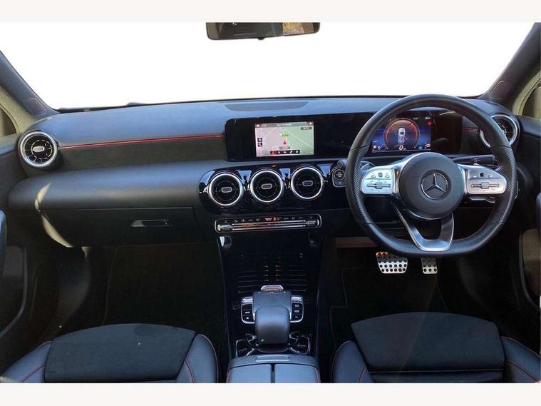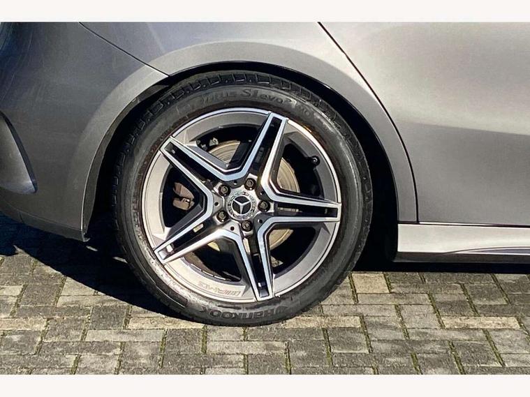 180 degree rear view camera with parking guidelines, 7" colour screen in instrument panel, 7" touchscreen media display, Active lane keep assist, Attention assist, Brake pad wear indicator warning light, Cruise control + speed limiter, Direct steering, Direction indicators with lane change function, DYNAMIC SELECT with a choice of driving modes (ECO, Comfort, Sport, Sport+ and Individual), Fluid level warning indicator for fuel, oil, coolant and washer fluid, Hard-disk navigation, Lamp failure indicator, Mercedes me connect including emergency call system, accident recovery, breakdown and maintenance management, Outside temperature gauge, Radio aerial integrated into roof spoiler, Service indicator (ASSYST), Speed sensitive power steering, Stop/start system, Trip computer, Voice activation, Lowered comfort suspension, DAB Digital radio, Dual bluetooth interface, 2 USB ports (type C), MBUX multimedia system with DAB digital radio and touchpad including satellite navigation, Adaptive brake lights, AMG front, rear apron and side skirts, Blue tinted glass, Body colour bumpers, Body colour door handles, Body colour side skirt, Body coloured door mirrors, Chrome beltline trim, Diamond radiator grille with chrome pins and silver louvre + chrome insert, Electric adjustable and heated door mirrors with integrated LED side indicators, Electric front windows, Electric rear windows, Exhaust system - Twin trapezoidal tailpipes in polished stainless steel, Headlamp assist automatic headlamp activation, Heated glass rear windscreen + timer control, LED high performance headlamps with integrated LED daytime running lights, LED tail lamp, LED third brake light, Rain sensor windscreen wipers, Rear fog lights, Rear wiper, 12V socket, 3 Spoke flat bottom leather multi function steering wheel with perforated leather in grip area, 40:20:40 split folding rear seats, Air vents surround and cruciform nozzle in silver chrome, AMG floor mats with red stitching, Artico man-made leather/Microfibre Dinamica upholstery with red contrast stitching, Auto Mercedes-Benz child seat recognition sensor, Black roof lining, Brushed stainless steel sports pedals with rubber studs, Controller on centre console with chrome surround, Cup holder and stowage compartment lighting, Front centre armrest with storage compartment, Front door sills with Mercedes Benz lettering, Front doors with ambient and signal light, Front footwell lights, Front reading lamps, Front seat backs luggage nets, Front seat cushion length adjustment, Front signal exit lamp, Front vanity lights, Gearshift paddles on steering wheel, Handle recess/closing light, Height/reach adjustable steering column, Illuminated glovebox, ISOFIX Child seat top tethers and anchor fixings, Load securing rings in luggage compartment, Luggage compartment cover, Manual height adjustable front seats, Oddments tray lighting, Rear head restraints, Rear Reading Lamps, Seat occupancy sensor for front passenger seat, Sports seats with integrated headrests, Storage compartment under load area floor, Sunvisors with illuminated vanity mirrors, Touchpad, Touchpad illumination, Twin front cupholders, Two zone thermotronic luxury automatic climate control, Seat comfort pack - A Class, 3 rear 3 point seatbelts, ABS with Brake Assist, Active bonnet, Active brake assist includes forward collision warning system with autonomous braking, Adaptive brake assist with hold function and hill start assist, Black seatbelts, Brake calipers with Mercedes-Benz lettering + perforated brake discs, Childproof locks manually operated for rear doors and electrically operated for rear power windows, Crash responsive emergency lighting, Driver and passenger head and side airbags, Drivers knee airbag, Dual stage driver/passenger airbags, Electronic parking brake, ESP curve dynamic assist, ESP with ASR, Front and rear seatbelt reminder, Tyre pressure monitoring system, Warning triangle and first aid kit, Window airbags, Alarm system/interior protection/immobiliser, Keyless Go, Remote central locking and crash sensor with emergency opening function, 18" AMG 5 twin spoke light alloy wheels in titanium grey with highsheen finish, Tirefit sealant kit,