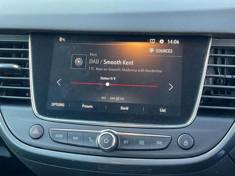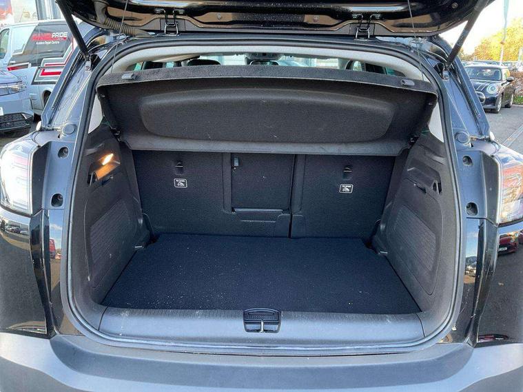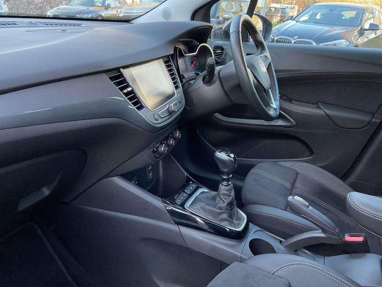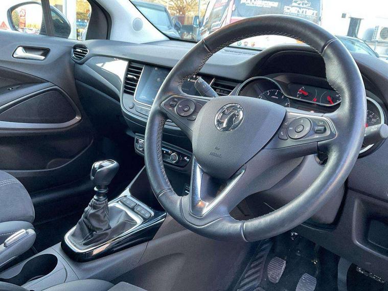 3.5" colour instrument display, Advanced Park Assist, Audible lights on warning, Cruise control + speed limiter, Digital clock with automatic RDS time adjustment, Driver drowsiness alert system, E-call, Forward collision warning, Front camera system, Instrumentation - Speedometer, rev counter, low fuel gauge warning light + water temperature gauge warning light, shift up/down indicate light, Lane departure warning with lane keep assist, Multi function trip computer, Multimedia sat nav pro with 8" colour touchscreen, AM/FM, Bluetooth streaming, Bluetooth mobile phone portal, apple CarPlay/Android Auto + 6 speakers, Outside temperature display with ice warning, Panoramic rear view camera, Refridgerant low indicator, Service interval indicator, Side blind spot alert, Smartphone projection, Speed sensitive power steering, Speed sign recognition, Start/stop system, Vauxhall connect, Vehicle microphone, Front wheel drive, 2 x USB connections, DAB Digital radio, Steering wheel mounted audio/phone/cruise controls, 2 speed wipers/wash wipe/intermittent wipe, Automatic anti dazzle rear view mirror, Automatic headlamp levelling system, Automatic high beam control with cornering light, Automatic lighting control, Black door mirror caps, Black griffin logo, vizor frame, rear lettering and skid plates, Body colour door handles, Body colour front and rear bumpers, Chrome effect upper window moulding, Collapsible windscreen wipers, Dark tinted rear side windows + tailgate window, Electrically adjustable, heated and power folding door mirrors, Electrically operated front and rear windows with safety auto reverse and one touch up/down facility, Flexible roof mounted aerial, Hazard warning lights, Headlamps for left side traffic, Heated rear window, Integrated tailgate spoiler, Intermittent rear wash/wipe, LED 3rd brake light, LED daytime running lights, LED front fog lights, LED Headlights, LED side repeat indicators, LED tail lights, Rain sensitive windscreen wipers, Rear fog lights, Rear side wing doors, Reversing light, Side window demist vents, Silver roof rails, Solar heat absorbing windscreen and windows, Upper and lower bumper design, Welcome lighting, Windscreen demist vents, 12v power outlet - front, 12V power outlets on rear seat, 3 seat bench in 2nd row, 3 spoke leather covered steering wheel, Air recirculation facility, Alcantara suede/vinyl upholstery, Ambient lighting, Anti submarining ramps in front seats, Cabin particulate filter - removes dust, airborne particles and pollen, Centre console storage box with sliding lid, Centre console with two cup holders and open storage box, Chrome effect digital instrument cluster surround, Driver's vanity mirror with flip up cover, Dual zone electronic climate control, Ergonomic active driver’s and front passenger’s seat with AGR approved 8 way adjustable, seat cushion extension, 4 way electrical lumbar adjustment, Fade up/fade down on interior lighting, Four adjustable facia vents, Front and rear central courtesy light, Front centre armrest for drivers seat, Front door pockets with 1.5 litre bottle holder, Front map reading lights, Fully carpeted luggage area, Glovebox with lid, Height adjustable front/rear head restraints, Illuminated load area, Isofix system on outer rear seats, Jet black fabric side bolsters, Luggage compartment cover, Multi-speed fan with Illuminated control, Passenger assist handles, Passenger's illuminated vanity mirror with flip up cover, Reach + rake adjustable steering column, Rear dome lamp, Rear door pockets with 0.5 litre bottle holder, Rear floor ventilation ducts, Satin chrome effect bezel on steering wheel, Single front passenger seat, Storage pockets on front seat backs, Versatility pack - Crossland, Winter pack - Crossland, 3x3 point rear seatbelts, ABS, Automatic emergency braking with pedestrian detection, Child locks on rear doors, CSC - Cornering stability control, Deactivate switch for side impact airbags, Deformation zones front and rear, Driver and front passenger airbags, Dual seatbelt pretensioners on front seats, EBD - Electronic brakeforce distribution, Energy absorbing steering column, Engine drag torque control, ESP + traction control, Front side impact airbag, Full size curtain airbags, Hill start assist, Hydraulic Brake Assist (HBA), Hydraulic brake boost, Inertia reel lap and diagonal seatbelts for all seats, Passenger airbag deactivate switch, Rear seat belt pretensioners, Reinforced passenger safety cell, Seatbelt load limiter, Side impact protection beams, Smart seatbelt reminder for front and rear seats, Tyre pressure monitoring system, 2 remote folding keys, Electronically protected audio equipment, Engine immobiliser, Keyless entry and start, Locking wheel bolts, Remote control central locking, Remote control security alarm system, Visible vehicle identification number, Black facia with dark grey trim inserts, Cluster black with chrome rings, Silver trim inserts on front doors, 17" Five twin spoke diamond cut bi colour alloy wheels,