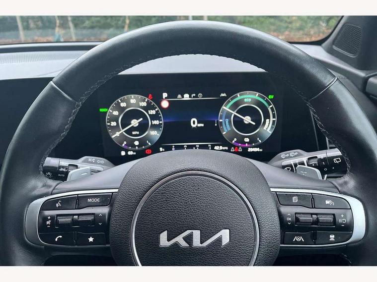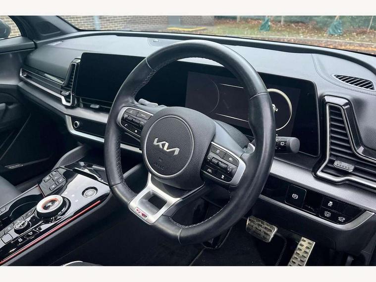 12.3" Display with navigation, 12.3" supervision colour cluster display, 360 degree around view monitor, Apple car play/Android Auto with voice control, Blind spot collision avoidance assist, Blind spot view monitor, Drive mode selector, E-call, Forward collision avoidance assist (FCA) - city/pedestrian/cyclist/junction covering, Front and rear parking sensors, Highway Driving Assist (HDA), Intelligent speed limit assist, Kia Connect (UVO), Lane Following Assist (LFA), Lane keep assist, Low washer fluid warning, Parking collision avoidance assist (PCA), Remote smart parking assist, Reversing camera system integrated into centre fascia screen, Smart cruise control with stop and go functionality, Smart power tailgate, Speed sensitive power steering, Trip computer, Windscreen washer level indicator, Wireless Smartphone charger, Intelligent Stop and Go, Terrain mode select (Mud, Snow, Sand), Bluetooth audio streaming, DAB Radio with MP3, Harman Kardon premium sound system, Rear USB port, Steering wheel mounted audio controls, USB C type charging ports on centre console, USB C type charging ports on side of front seats, USB port for connection of a media device, All round electric windows with drivers and front passenger auto up/down function, Automatic headlight control system, Automatic window defogger, Backlite glass heated with timer, Body colour and black bumper with silver accents, Body colour exterior door handles, Body colour radiator upper garnish and door garnish, Dual LED adaptive headlamps, Electric panoramic glass sunroof (Electric one touch with safety function), Electrically adjustable/heated/folding door mirrors with LED indicators, Front and rear chrome skid plates, Gloss black door mirrors, Gloss black radiator grille, Gloss black side sill and wheel arch body mouldings, Glossy black roof rack, High beam assist, Interior electrochromic mirror, LED daytime running lights, LED front fog lamps, LED High mounted stop light, LED rear combination lamp, Rain sensing wipers with aero blades, Rear fog lamp, Rear privacy glass, Rear side wing doors, Rear spoiler, Rear wiper, Satin finished beltline, Silver coloured inserts to bumpers, Tinted rear glass, Trailer stability assist, 10 way driver/8 way passenger electrically power adjustable seats, 12V power socket in front centre fascia and luggage compartment, 3 seat bench in 2nd row, 3 x passenger assist grips, 40/20/40 split folding rear seat, All-round height adjustable headrests, Ambient lighting, Black headlining, Centre console storage box, Cupholders in rear armrest, D-Shaped sports leather steering wheel and perforated inserts with GT-Line logo, Door courtesy lamps, Drink holder at centre armrest, Driver and front passenger side sunvisors with illuminated vanity mirrors, Driver seat memory function, Drivers seat power lumbar support, Front and rear door storage, Front seat and rear pockets, Front/rear centre armrests, Gear shift indicator, Glovebox illumination, Heated front and outer rear seats, Heated steering wheel, Interior door lock/unlock function, ISOFIX Child seat top tethers and anchor fixings outer rear seats, LED interior personal lamp, LED lighting in overhead console, Luggage area LED light, Luggage area load cover, Luggage net with hooks, Metal paint interior door handles, Paddle shift controls, Rear cabin light, Rear coat hooks, Single front passenger seat, Sports pedals, Suede leather upholstery, Three zone climate control, Tilt/telescopic adjustable steering wheel, Ventilated front seats, Ventilation ducts to rear compartment, Active front headrests, All round 3-point seatbelts, Anti-lock braking system (ABS), Dual front side airbags, Dual horn, Electronic parking brake, Electronic stability control with downhill brake control, Front passenger airbag cut-off switch, Front seatbelt pretensioners + load limiters, Height adjustable front seatbelts, Hill start assist control (HAC), Impact sensing auto door unlocking, Multi collision brake assist, Rear door child safety locks, Rear seat alert system, Traction control, Twin curtain airbags, Twin front airbags, Tyre pressure monitoring system, Advanced anti-theft system including immobiliser and alarm, Door deadlocks, Engine Start/Stop Button with Smart Entry System, Locking wheel nuts, Speed sensitive auto door locking, Visible vehicle identification number, Aluminium pattern finish centre fascia and door garnish, 18" GT-Line alloy wheels, Michelin tyres, Tyre mobility kit,