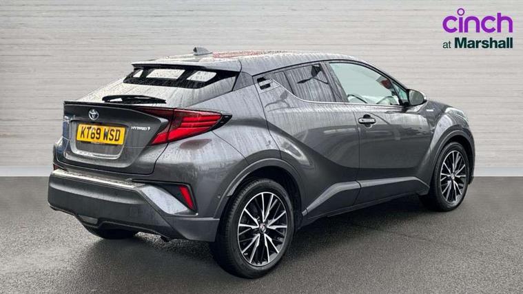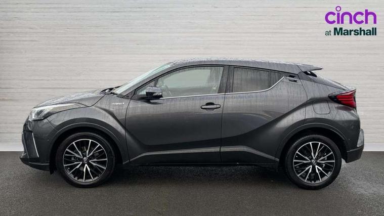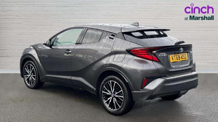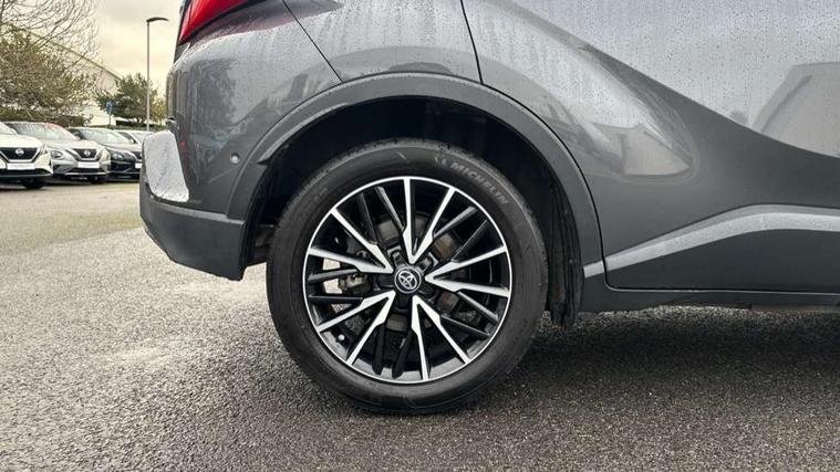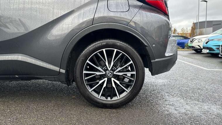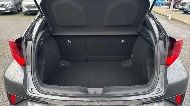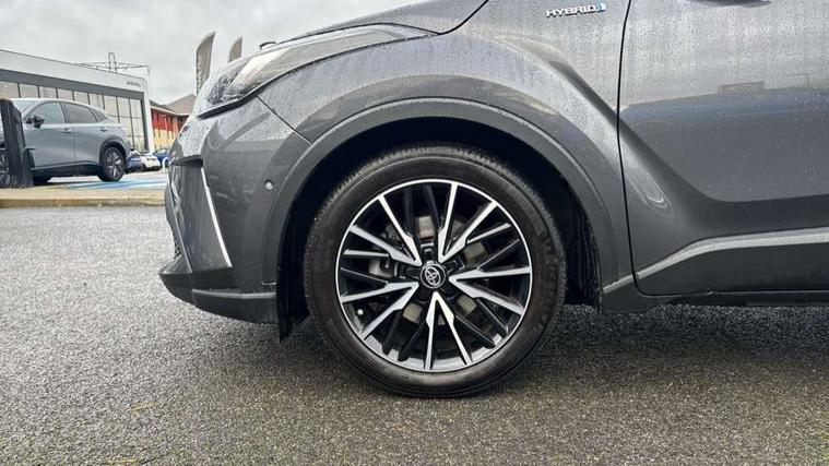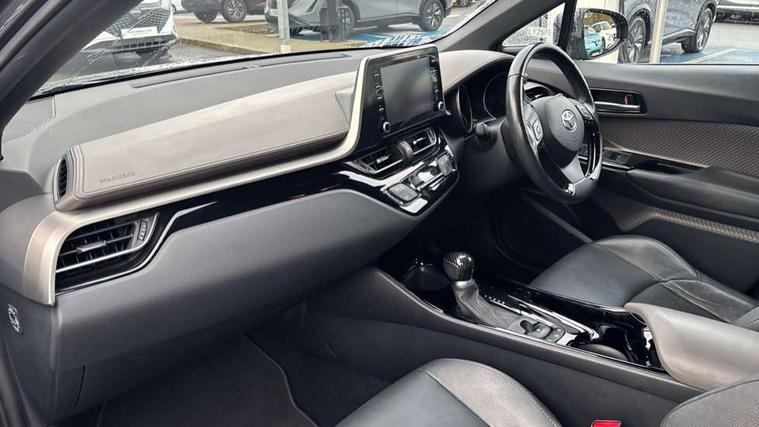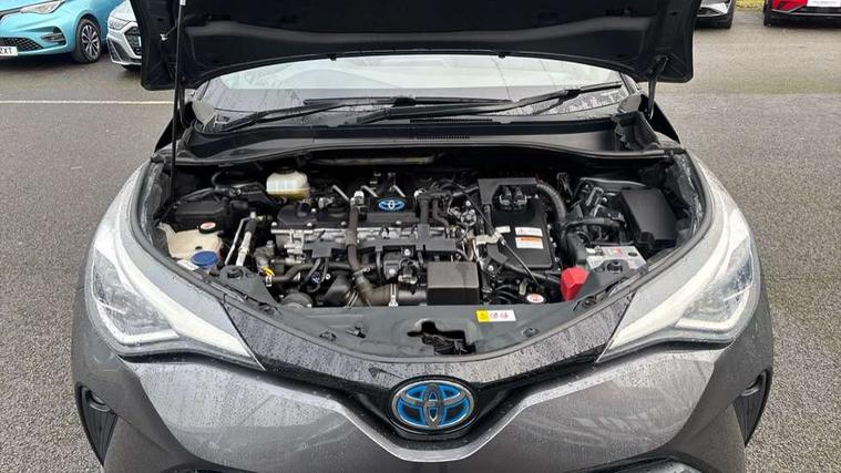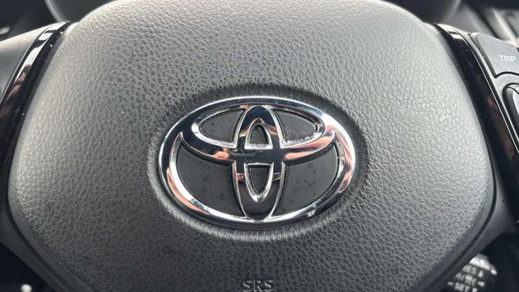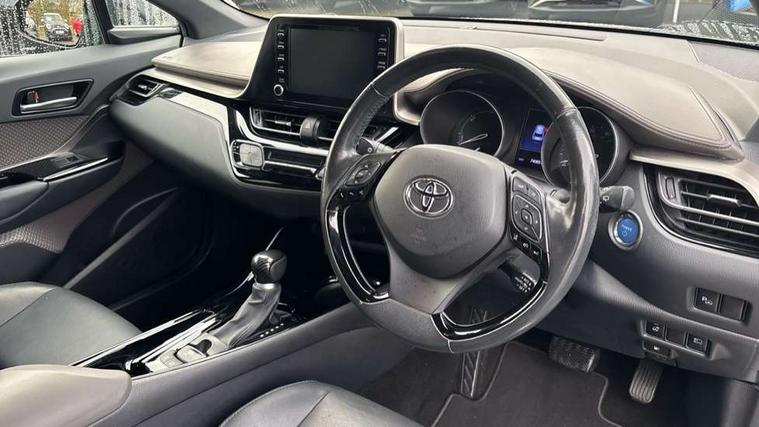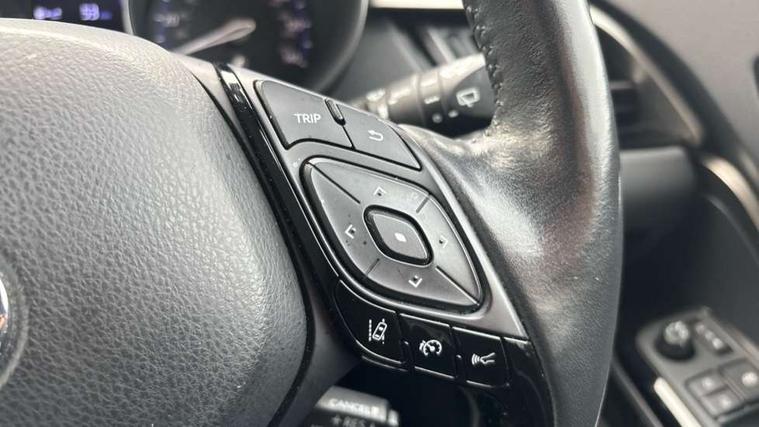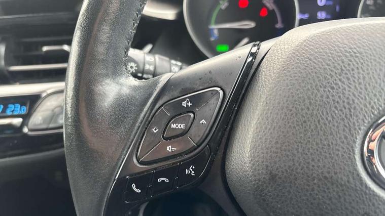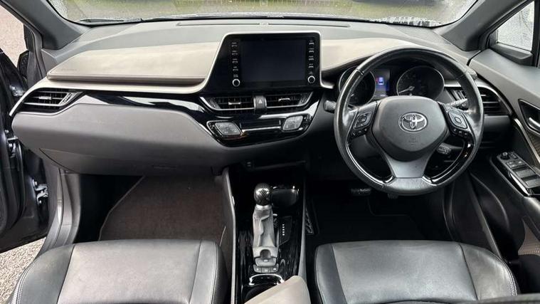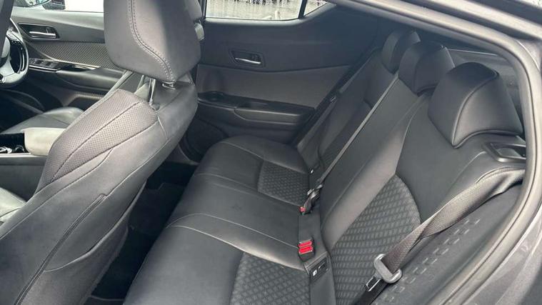 4.2" coloured TFT screen for multi-information display, Adaptive cruise control, Bluetooth connectivity, Electric power steering, Hybrid system indicator, Lane departure alert with steering control, Remote boot door release in cabin, Remote boot door release in key, Reversing camera, Road sign assist - RSA, Simple Intelligent parking assist, Touch 2 Go navigation system, Trip computer, Voice recognition, Vehicle Stability Control (VSC), 6 speakers, Aux connectors + 12V front outlet, DAB Radio (Digital Audio Broadcasting), Toyota touch 2 multimedia system with 8" display, USB connector integrated with radio and CD player, Wi-fi connectivity, Adaptive front light system, Adaptive LED Headlights, Anti-jam protection on power windows, Auto high beam, Auto up and down function on all power windows, Automatic headlight levelling, Automatic headlights, Automatic headlights cut-off, Automatic wipers with heated folding mirrors, Black and body coloured rear bumper, Black front bumper, Black upper front grille, Body colour door handles, Body colour door mirrors, Boot door release with push button, Electric heated door mirrors, Follow me home headlights, Front and rear power windows, Front spoiler, Hard tonneau cover, Honeycomb lower front grille, LED daytime running lights, LED fog lights, LED front light guide, LED High mounted stop light, LED rear brake lights, LED rear combination lights, Noise reduction layer on front windows and windscreen, Power adjustable door mirrors, Privacy glass, Rear spoiler, Rear tailgate, Rear window defogger, Rear window wiper, Shark fin antenna, UV-filter on driver and passenger windows, UV-filter on rear windows, 12v power outlet - front, 3 rear headrests, 3 spoke leather steering wheel, 60/40 split folding rear seat, Adjustable rear headrests, Adjustable speed limiter switch on steering wheel, Assist grips front and centre pillar, Audio and telephone switches on steering wheel, Black front door assist grips, Blue ambient lighting on front cup holders, Blue ambient lighting on front doors, Boot light, Chrome interior door handles, Driver and front passenger personal light, Driver and front passenger Whiplash Injury Lessening seats, Driver and passenger seatback pockets, Dual zone automatic air conditioning, Floor mats, Front cupholders, Front head restraints, Front sports seats, Glovebox with internal light, Heated driver and front passenger seats, Heated steering wheel, Hooks for luggage holding net, Humidifying Nanoe air purifier, Illuminated entry system, Isofix attachments on rear seats, Leather gearshift, Leather upholstery, Light on driver sun visor, Light on passenger sun visor, Manual telescopic steering wheel, Manual tilt steering wheel, Manually height adjustable front passenger seat, Manually reclining front passenger seat, Manually sliding front passenger seat, Microphone on front personal light, Mirror on driver sun visor, Mirror on passenger sun visor, Multimedia switches on steering wheel, Pollen filter, Power adjustable lumbar support on driver seat, Power height adjustable driver seat, Power reclining driver seat, Power sliding driver seat, Power tilting cushion on driver seat, Shopping bag hooks, Slow opening on lower glovebox, Voice recognition switch on steering wheel, Leather pack - C-HR, Parking sensor pack - C-HR, Tech pack - C-HR, 16 Disk front wheel brake, 3x3 point rear seatbelts, ABS+EBD+Brake assist, Electronic parking brake, ESP + traction control, Front and rear seatbelt reminder, Front passenger airbag on/off switch, Hill start assist control (HAC), Pre collision system with pedestrian detection, Pre-tensioners and force limiters, Rear door child safety locks, SRS Airbags - Driver + Front passenger, front side, front and rear curtain and driver's knee airbags, Toyota safety sense, Tyre pressure monitoring system, Glass-breaking alarm sensors, Immobiliser, Intrusion alarm, Intrusion sensor, Motion sensor alarm, Power door locks, Power passenger window lock, Remote central locking, Remote door lock, Black lower dashboard, Black lower driver dashboard, Dark brown upper dashboard, Piano black console, Silver deco line on upper dashboard, Tyre repair kit,