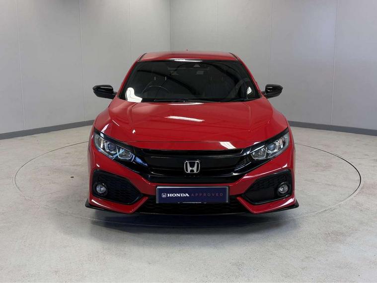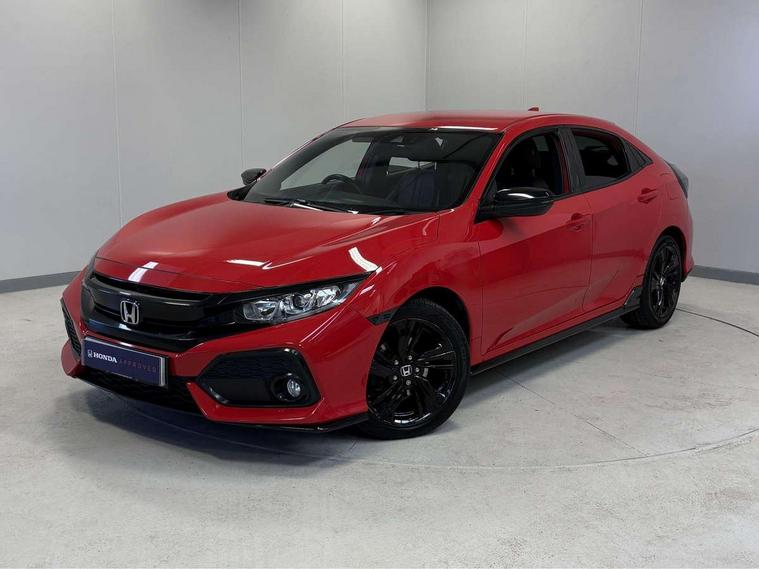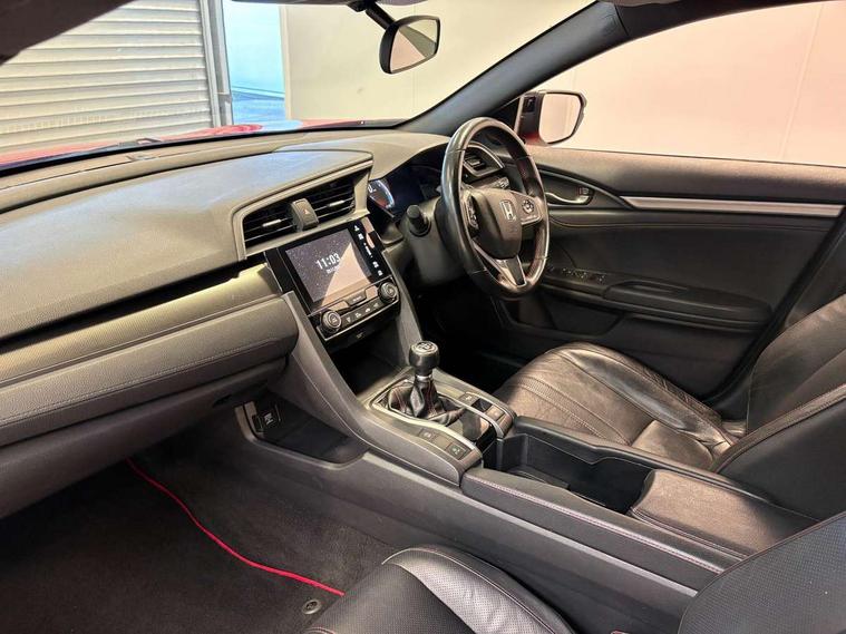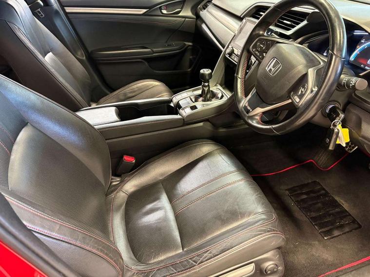7" touch screen, Adaptive cruise control, Apple car play/Android Auto, Blue dashboard illumination, Bluetooth hands free telephone connection, Colour driver's information system display, Easy fuel capless refuelling system, Economy mode, Electric power steering, Emergency stop signalling system, Forward collision warning, Front and rear parking sensors, Idle stop, Lane departure warning system, Lane keep assist, Rear parking camera, Road departure mitigation, Speed limiter, Traffic sign recognition, Vehicle stability assist, 'Shark fin' mobile antenna, 2x USB and HDMI, 8 Speakers, Connect with Garmin sat nav, touch screen, internet radio/MP3/CD, Aha app, internet, Digital Audio Broadcast (DAB) Tuner, Steering wheel mounted audio controls, Automatic coming/leaving home lighting function, Automatic headlights with dusk sensor, Automatic rain sensing wipers, Automatic retractable door mirrors, Black door mirrors with integrated indicators, Black grille, Body colour door handles, Body coloured bumpers, Electric adjustable heated door mirrors, Electric front/rear windows/one touch operation, Exterior sport garnish includes front and side sills, Front fog lights, Front spoiler, Halogen headlights, High beam assist, High mount brake light, LED daytime running lights, Piano black garnish window surround, Rear wiper, Remote control door mirrors, Remote window closing, Side under spoiler, 4 Trunk cargo hooks, Alloy pedals, Ambient lighting, Centre console storage and sliding armrest, Driver seat back pocket, Driver's electric lumbar adjustment, Driver's seat height adjustment, Dual climate control air conditioning system, Electric lumbar adjustment on passenger's seat, Front accessory power socket, Front map lights, Front/rear courtesy lights, Gear shift indicator, Glovebox light, Isofix system on outer rear seats, Leather gear knob, Leather steering wheel with red stitching, Leather upholstery with red stitching, Passenger seat back pocket, Rear accessory power socket, Rear armrest with cupholder, Sunvisors with illuminated vanity mirrors, Three height adjustable rear head restraints, Tilt/telescopic adjustable steering wheel, Tonneau cover, Trunk light, 15" solid rear disc brakes, 15" Vented front disc brakes, 3 Point ELR front seat belts x2, 3 Point ELR rear seat belts x3, ABS+EBD+Brake assist, Anti-whiplash front headrests, Collision mitigation braking system, Deflation detection system, Dual front SRS airbags, Electronic parking brake with auto hold, Front and rear curtain airbags, Front seatbelt pretensioners, Front side airbags, Hill start assist, Passenger airbag deactivate switch, Tyre pressure warning, ECU immobiliser, Honda super locks, Remote central locking with 2 remote folding keys, Security alarm, Selectable door unlock, Ultrasonic alarm, 17" Dynamic exclusive black alloy wheels, Tyre repair kit,