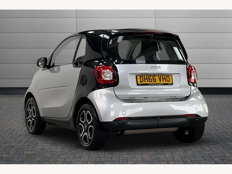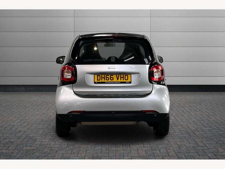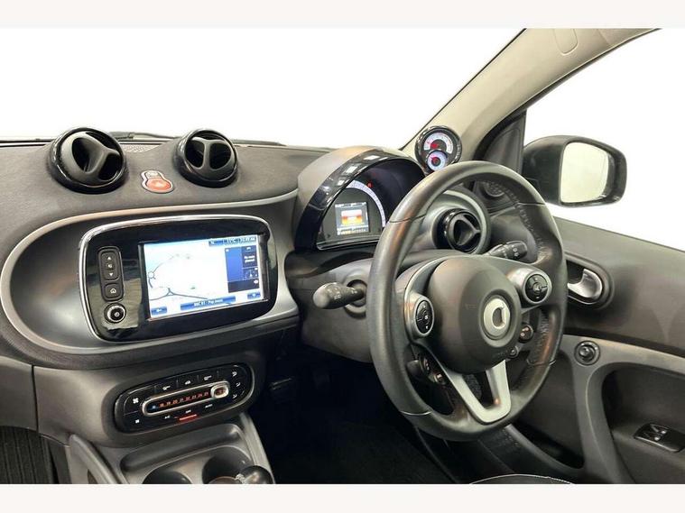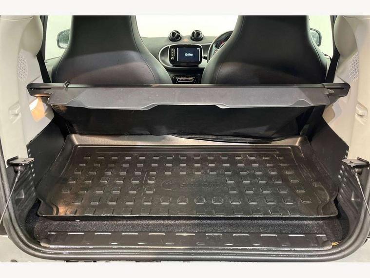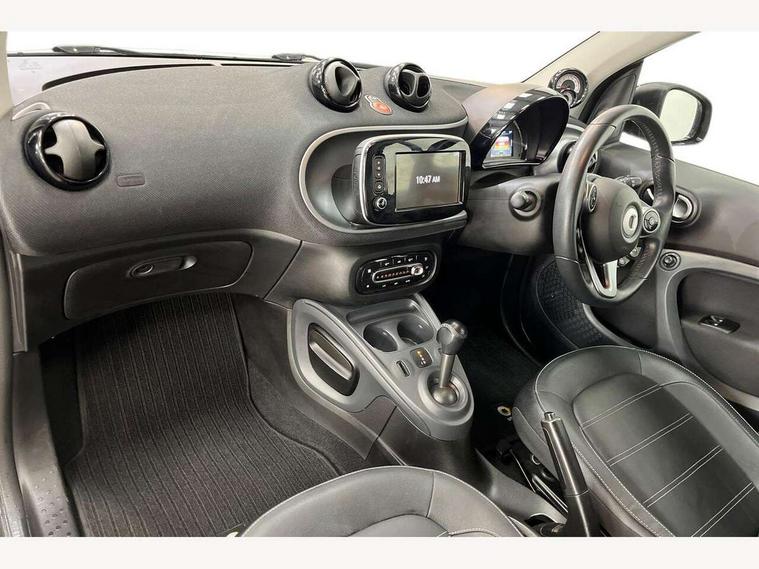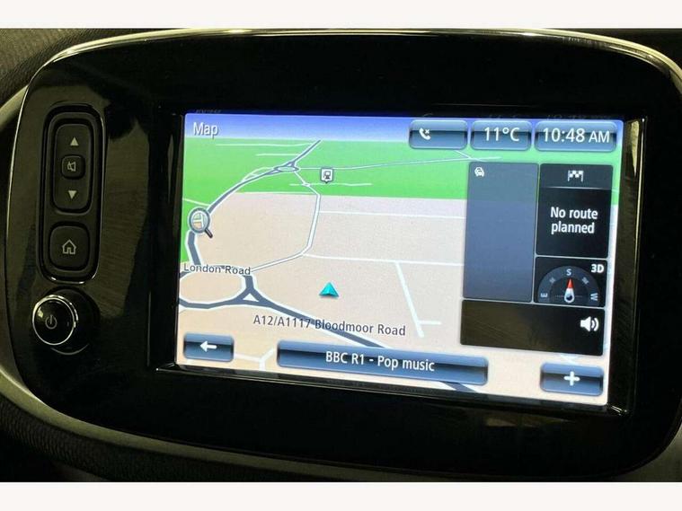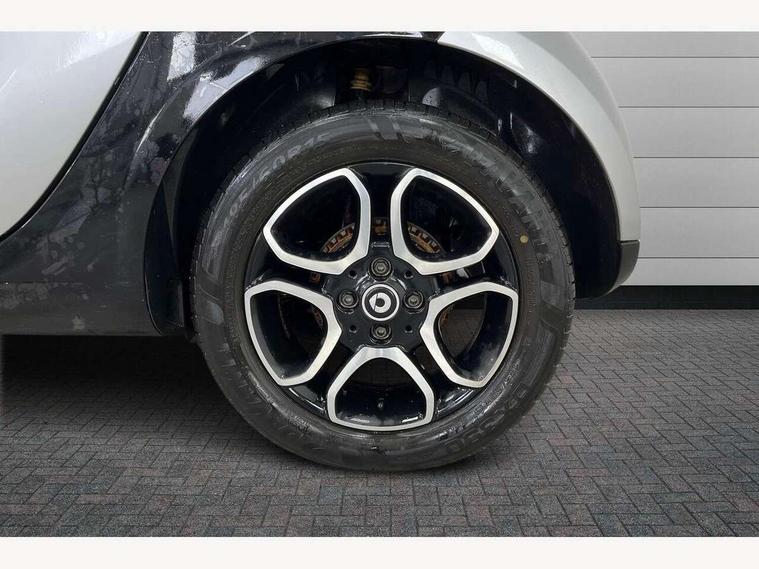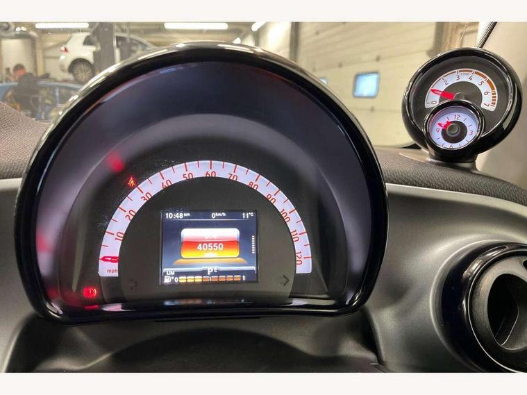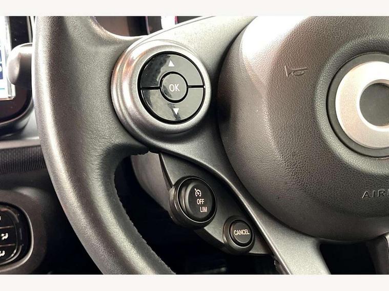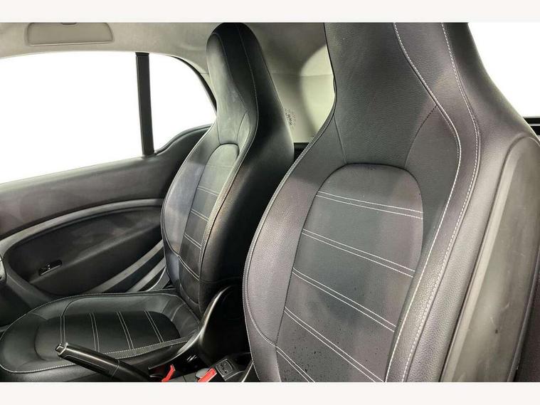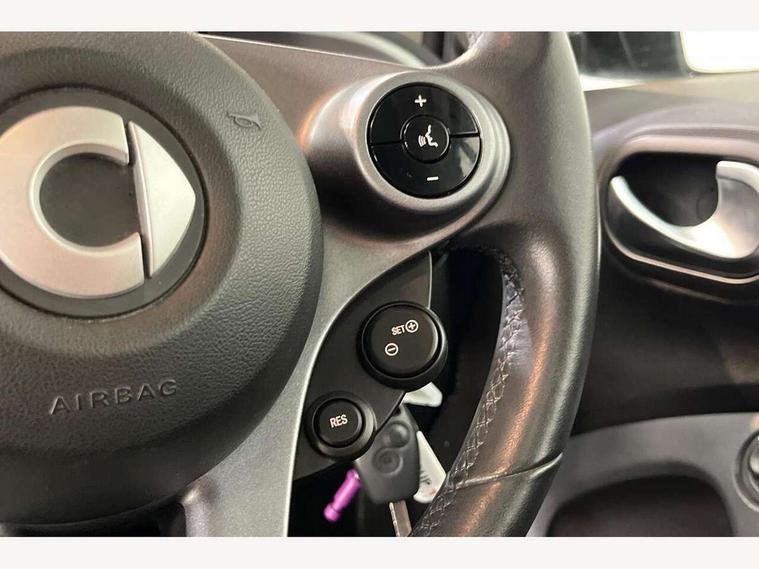 Bluetooth interface for hands free telephone, Cockpit clock and rev counter, Crosswind Assist, Cruise control with speedtronic variable speed limiter, Instrument cluster with display, Mirror link for smart media system, On board computer, Outside temperature display, Rear park assist, Service interval indicator, Smart media navigation with 7" touch screen, Speed sensitive variable PAS, Voice control system, Bluetooth audio streaming, Smart audio system with aux/USB interface, Body coloured bumpers, Driving mirrors in tridion colour, Electric front windows, Heated rear window with timer, LED daytime running lights, Panoramic glass roof with sunblind, Rear spoiler, Rear wash/wipe with intermittent wipe setting, White side indicators, 12V Accessory socket, 2 cupholders, 3 Spoke leather multi function steering wheel, Automatic climate control, Centre console storage tray, Dashboard and door centre panel in black fabric and grey highlights, Driver/passenger sunvisors with ticket holders + vanity mirrors, Front door storage bins, Front head restraints, Front passenger grab handle, Front seat and rear pockets, Heated front seats, Isofix child seat attachment, Leather gear knob, Leather upholstery, Load lashing points, Lockable glovebox, Luggage compartment cover, Luggage compartment lighting, Matt Chrome interior door handles, Reading lights, Storage compartment in tailgate, Sunglasses holder, Through load facility, Comfort pack - ForTwo with Heated door mirrors, 3 point seatbelts, ABS with Brake Assist, Crash sensor (auto switch - on of hazard warning lights/interior lighting), Driver and passenger airbags, Drivers knee airbag, ESP + Hill Start Assist, Front side airbags(head+thorax), Front side/curtain airbags, Seat belt force limiter, Seat belt tensioners, Seatbelt warning, Traction control, Tyre pressure monitoring system, Automatic door locking, Folding key, Immobiliser, Remote central locking, 15" 5 twin spoke alloy wheels painted in black with high sheen finish, Tyre repair kit,