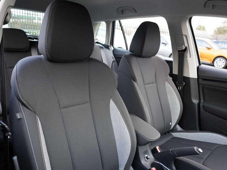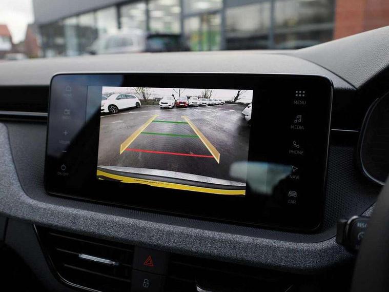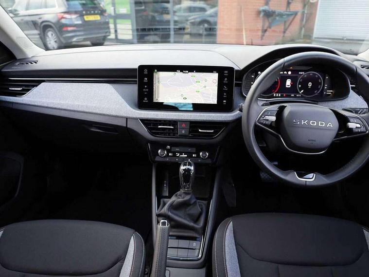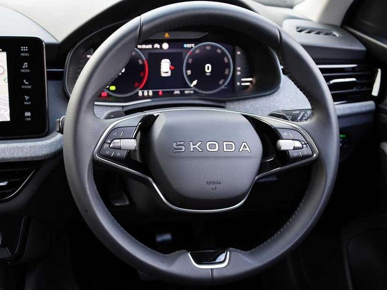 Advanced driver attention and drowsiness monitor, Bluetooth system, E-call, Front assist system, PAS, Rear parking sensors, Rear view camera, Service indicator, Speed limiter, Traffic sign recognition, Virtual cockpit with 10.25" display, Wireless smartlink, 4 USB C ports, 8 Speakers, 9.2" Skoda navigation display, DAB Digital radio, Auto dimming rear view mirror, Automatic headlight control with coming home and leaving home feature, Black roof rails, Body colour bumpers, Body colour door mirrors and handles, Chrome grille surround, Front and rear electric windows, Full LED headlights, Heated rear window, LED brake lights, LED daytime running lights, LED front turning lights, LED high beam, LED low beam, LED third brake light, Rear LED fog light, Rear side wing doors, Rear wiper, Ticket holder inside windscreen, 12V socket in luggage compartment, 3 seat bench in 2nd row, Black hotstamping, Cargo elements, Chrome inner door handles, Driver and passenger sun visors with vanity mirror, Dual zone climate control, Front and rear roof lights, Front centre armrest, Front head restraints, Glove compartment with illumination, Height adjustable driver seat, Height adjustable front passenger seat, Ice scraper, Inner circulation control with pollen filter, ISOFIX on front passenger seat, Isofix preparation for back seats, Krepp recycled decor inserts, Leather gearknob and handbrake lever, Loft cloth upholstery, Manual lumbar support for front seats, Net package and top tether hooks in boot space, Net under rear shelf, Overhead glasses storage compartment, Pocket on the back of both front seats include mobile phone pockets, Rake/reach adjustable steering wheel, Reading lights, Satin black door inserts, Single front passenger seat, Textile floor mats, Third rear headrest, Top tether for front passenger seat, Umbrella in driver's door, 3x3 point rear seatbelts, Airbags - driver and front passenger, Disc brakes, ESP, Extended and predictive pedestrian/cyclist protection, Front passenger airbag deactivation switch, Front side airbags with curtain airbags, Hill hold control, Manual leather parking brake, Manual rear child locks, One tone horn, Seatbelt reminder for driver an co-driver, Traction control, Tyre pressure monitor, Anti-theft alarm system with interior monitoring, backup horn, towing protection and remote central locking with SAFE system, Anti-theft wheel bolts, Electronic engine immobilizer,