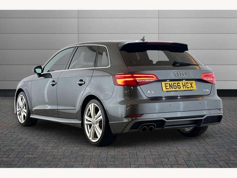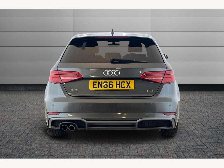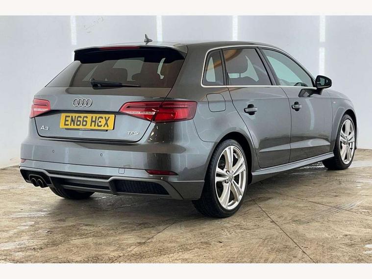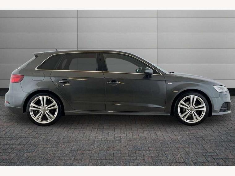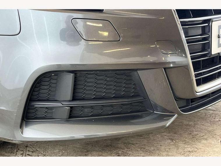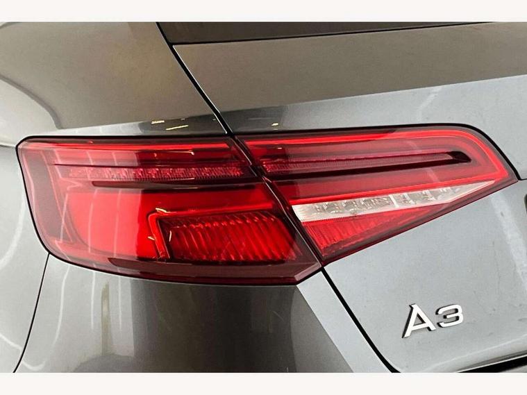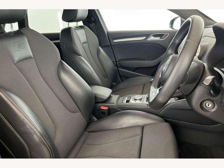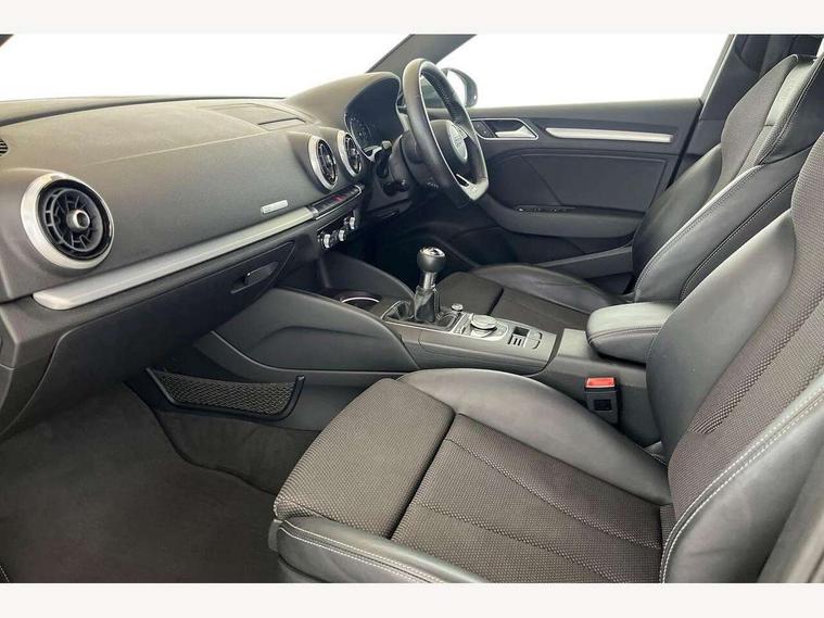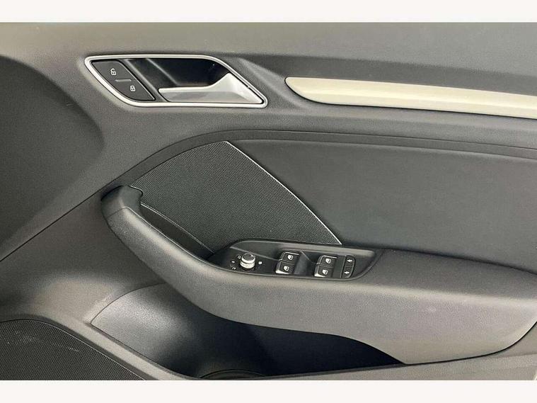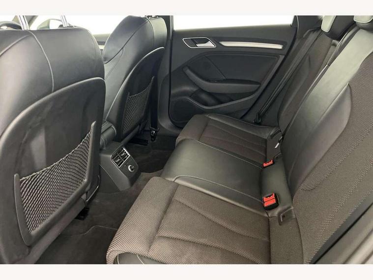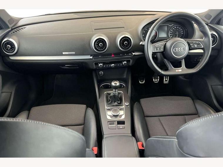 Audi connect, Audi drive select, Audi smartphone interface, Colour driver's information system display, Mobile telephone preparation - bluetooth interface, Service interval indicator, Speed limit display, Voice control system, 2 USB ports, Audi music interface, Auxiliary input socket, DAB Digital radio, Aluminium window trim, Body colour bumpers, Body colour door mirrors with integral indicators, Body colour roof spoiler, Chrome exhaust tailpipes, Electric front windows, Electric operated/heated door mirrors, Electric rear windows, Heated windscreen washer jets, LED daytime running lights, Matt black radiator grille, Rear wiper, S Line body styling, Sport specific side air inlet grille and diffuser insert, 3 adjustable rear headrests, 3 spoke flat bottomed multi-function leather steering wheel, 4 lashing points to secure luggage, Adjustable front armrest, Black cloth headlining, Dual zone electronic climate control, Front and rear interior lights with delay, Front passenger seat isofix location point, Front/rear floor mats, Height/depth adjustable steering column, Illuminated door sills, Illuminated glovebox, ISOFIX child seat preparation+airbag deactivation, Jack and tool kit, Stainless steel pedals, Storage compartment in centre console, Storage compartment under front seats, Storage compartments in doors, LED interior light pack - A3/RS3, Light and rain sensor pack - A3 Hatchback/Sportback, Storage and luggage pack - A3/RS3, 3 point seatbelts on all seats, ABS/EBD, Active bonnet, Active front headrests, ASR, Curtain airbags, Driver and passenger side airbags, Driver/Front Passenger airbags, Drivers knee airbag, EDL, Electromechanical parking brake, ESC - Electronic Stability Control + traction control, Front passenger airbag deactivation, Manual rear child locks, Multi-Collision braking, Seatbelt warning, Tyre pressure monitor, Warning triangle and first aid kit, Anti theft alarm, Anti-theft wheel bolts, Remote control central locking, Thatcham category 1 alarm + immobiliser, Aluminium air vent surrounds, Aluminium trim elements, Space saver spare wheel,
