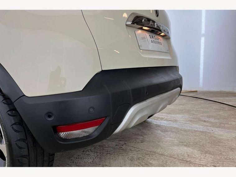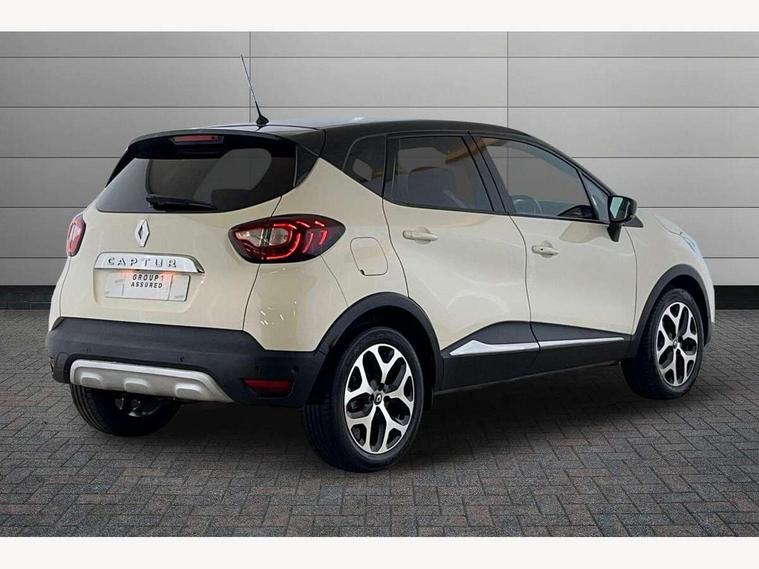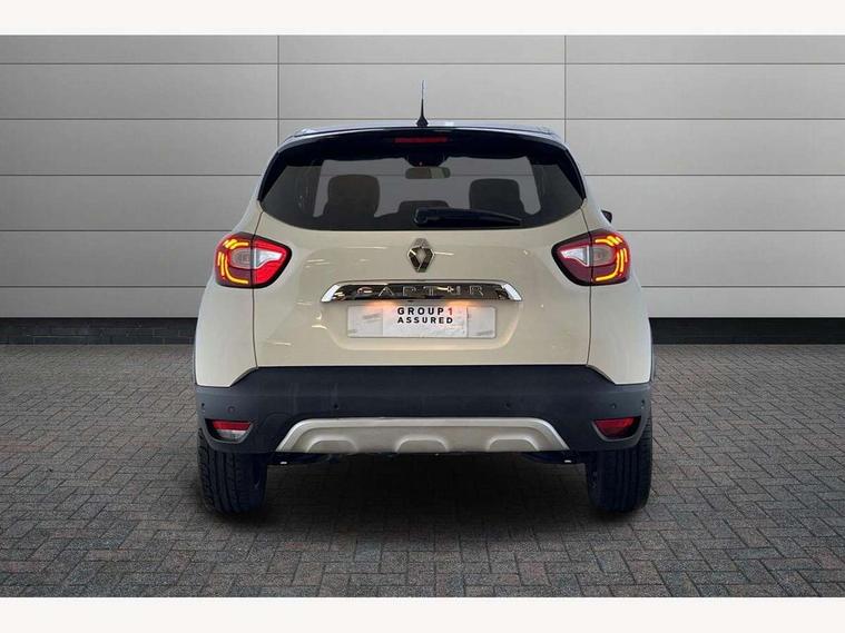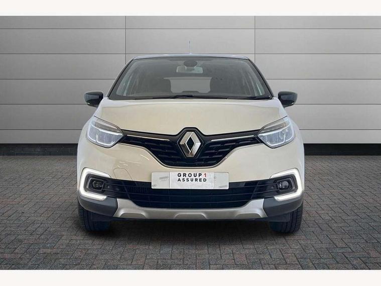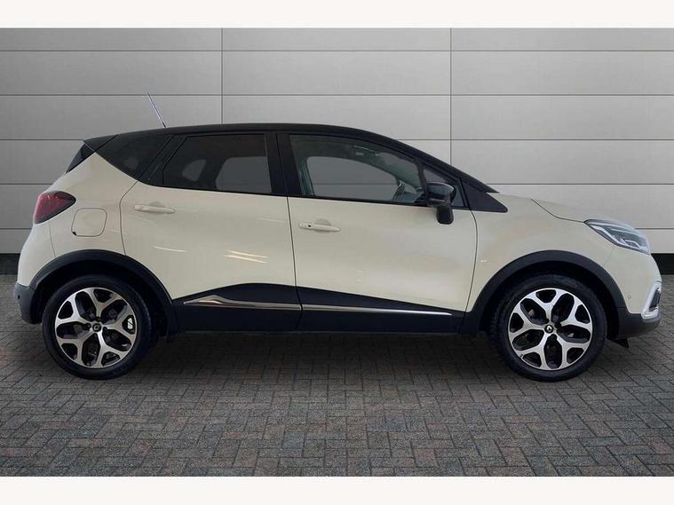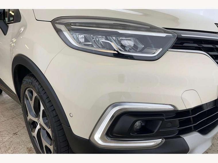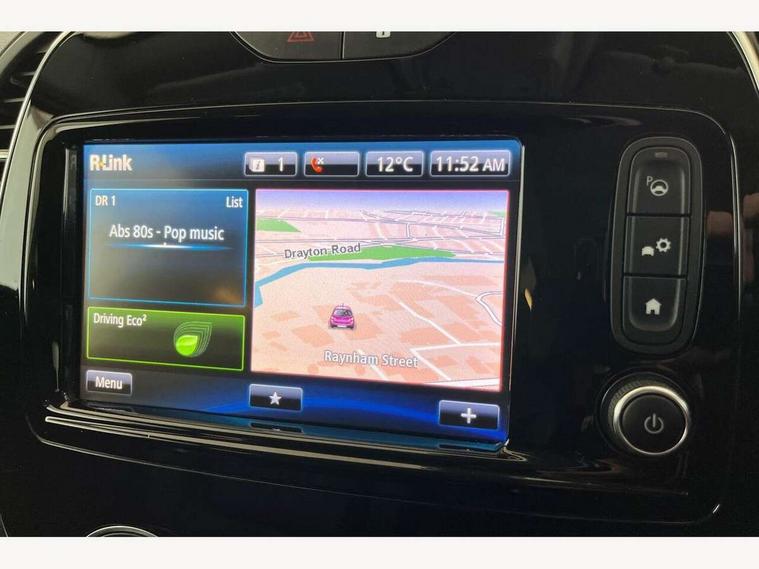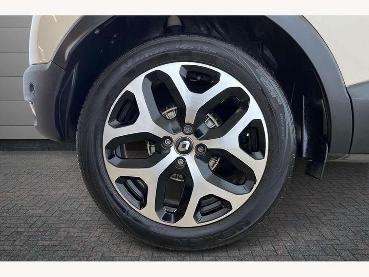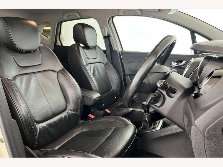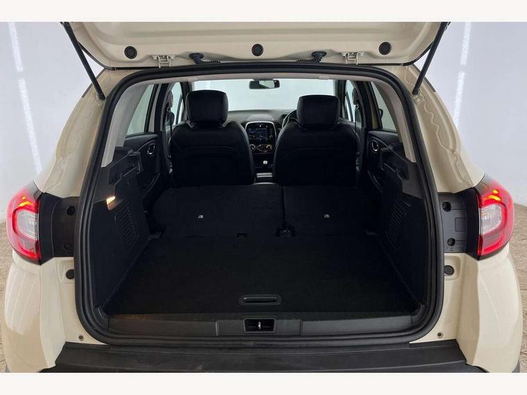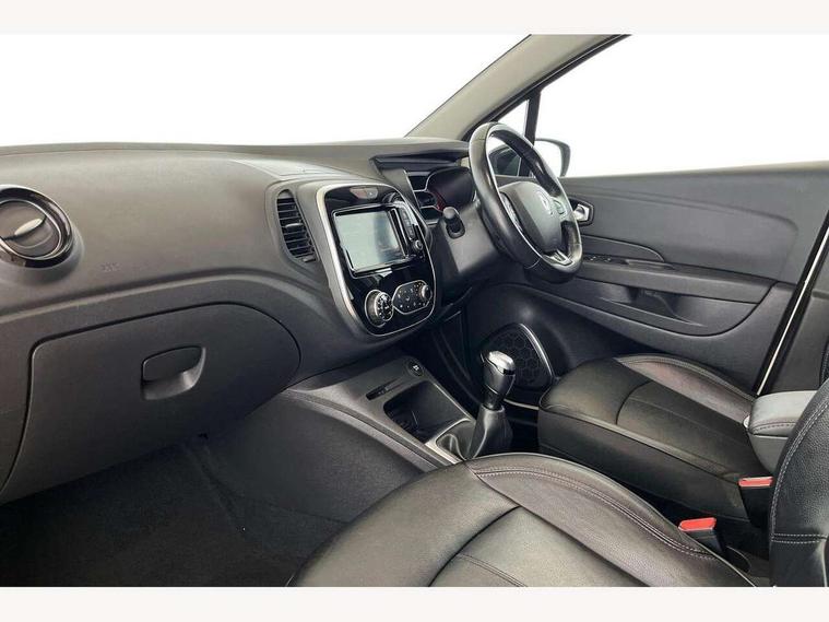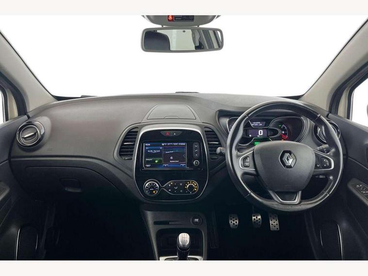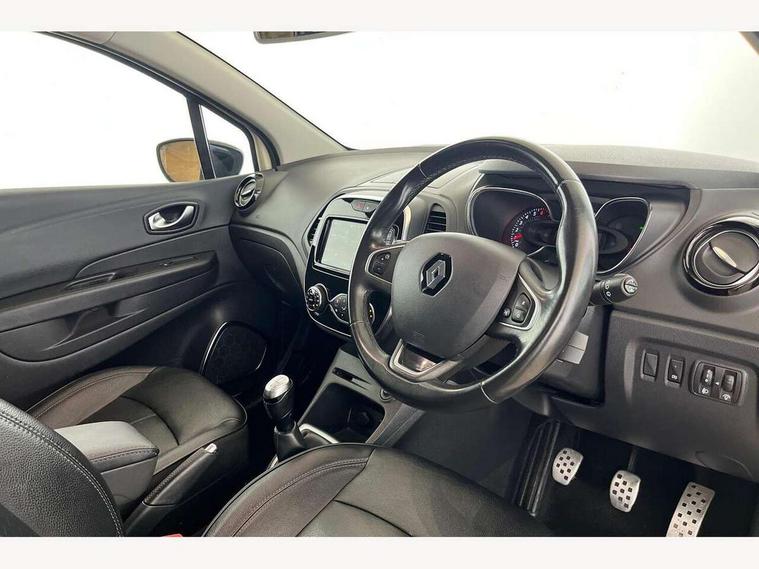 Cruise control + speed limiter, Eco mode, Handsfree parking with side moulding and blind spot warning, Smartphone cradle, Trip computer, Variable PAS, Auxiliary input socket, Body colour door handles, Body coloured bumpers, Electric adjustable/heated/folding door mirrors, Electric front windows + one touch + anti-pinch, Electric rear windows, Extra tinted glass in rear windows and tailgate, Grey front and rear skid plate, LED daytime running lights, LED front fog lights with static cornering light function, Rain sensitive wipers + automatic lighting, Rear wiper, Variable intermittent front wash/wipe, 12V Accessory socket, 3 rear headrests, 60/40 split folding rear seat bench, Automatic climate control with one touch demist function, Centre console storage tray, Compartment in glovebox, Front centre armrest, Front cupholder, Front seat backrest storage nets, Heated front seats, Heating system with pollen filter, Height adjustable driver's seat, Height adjustable front headrests, Height/reach adjust steering wheel, ISOFIX on front passenger and rear outer seats, Leather steering wheel and gear knob, Light harmony dashboard and door panels, Part leather/cloth upholstery, Removable storage between driver and passenger, Reversible boot floor, Storage area on top of dashboard, Storage compartments in doors, Storage space near handbrake, Variable boot floor, Exterior touch pack Chrome - Captur, Interior touch pack Chrome - Captur, Premium pack - Captur, Techno pack with front and rear parking sensors - Captur, 3 point seatbelts on all rear seats, ABS+EBA, Driver/Front Passenger airbags, ESC - Electronic Stability Control + traction control, Front passenger airbag deactivation, Front side airbags(head+thorax), Hill start assist, Rear door child safety locks, Seatbelt warning, Tyre pressure monitor, Automatic door locking, Deadlocking system, Hands free access with keycard and start button, RAID (Renault Anti-Intruder Device) with automatic door locking, Remote central locking, Thatcham Cat 2 engine immobiliser, 17" Emotion alloy wheels with black insert,