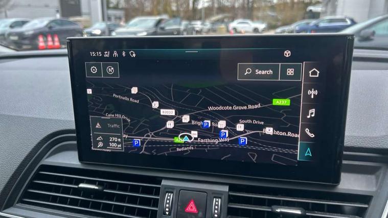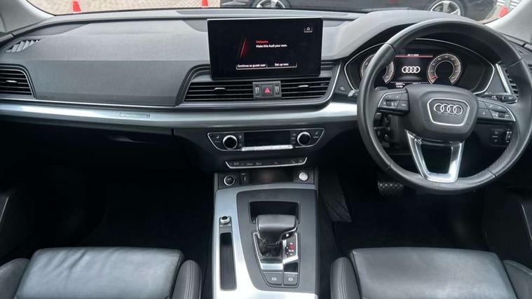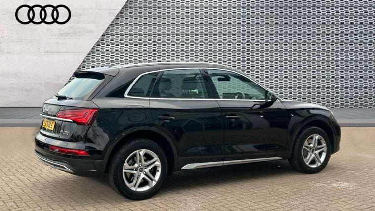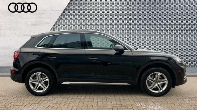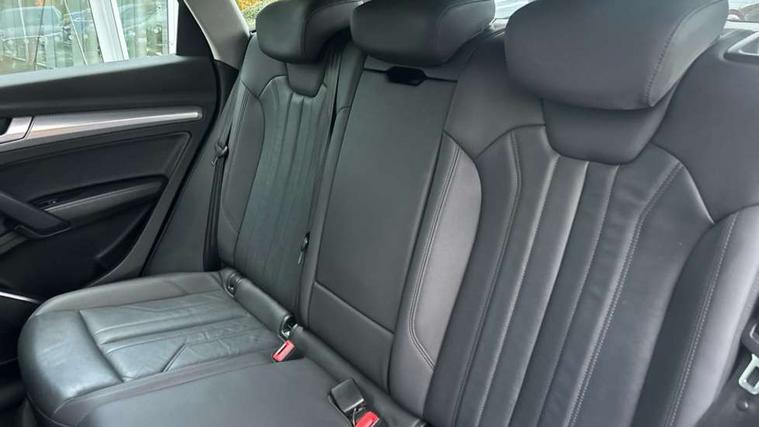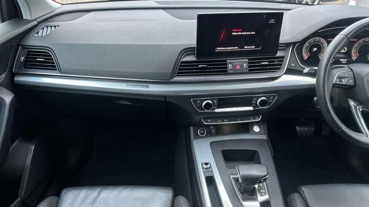 Audi connect safety and service (e-call), Audi connect with Amazon Alexa Integration, Audi drive select, Audi virtual cockpit plus with 12.3" screen and three different layout designs, Audi wireless smartphone interface, Automatic start-stop system with coasting functionality and efficiency programme, Bluetooth interface, Cruise control + speed limiter, Electro - mechanical power assisted steering, MMI navigation plus with 10.1" touch screen, Power tailgate, Reversing camera, Service interval indicator, Voice control system with Audi hotword activation "Hey Audi", Dynamic suspension, Quattro on demand, 2 x USB charging port with aux input socket, DAB Digital radio, Acoustic windscreen, Air inlets in matt titanium black with blades in matt aluminium silver, Aluminium roof rails, Auto dimming rear view mirror, Automatic headlights and windscreen wipers, Body colour bumpers, Body colour door mirrors, Chrome plated exhaust trims, Door sills in Selenite silver, Electric adjustable/heated/folding door mirrors, Front and rear electric windows, LED headlights and LED tail lights, Lower bumpers painted in contrast Manhattan grey, Matt selenite silver underbody protection, Matt twilight grey radiator grille with chrome vertical struts, Rear chrome trim strip below lights, Rear diffuser strip in selenite silver, Rear spoiler, Rear wiper, Roof bars, 3 rear headrests, 3 spoke multifunction leather steering wheel with shift paddles, 40:20:40 split folding rear seat with rear centre armrest, Comfort front centre armrest, Deluxe 3 zone electronic climate control, Door sills trims with aluminium inlays, Front/rear floor mats, Heated front seats, Height adjustable front head restraints, Height/reach adjustable steering column, ISOFIX child seat mounting and top tether, Luggage compartment cover, Manual seat adjustment with 4-way electric lumbar support, Removable luggage compartment floor, Silver cloth headlining, Sunvisors with vanity mirrors, Twin leather upholstery + front sports seats, High gloss pack - Q5, LED interior light pack - Q5, 3 point seatbelts on all seats, 6 airbags - Driver, front passenger, curtain and side airbags, Electrically operated child locks on rear doors, Electromechanical parking brake, Electronic stabilisation control including ABS, ASR and EDL, Front passenger airbag deactivation, Hill descent control, Hill hold assist, Multi collision brake assist, Pop-up bonnet for pedestrian protection, Pre sense city, Seat belt force limiter, Seatbelt monitoring, Tyre pressure warning, Warning triangle and first aid kit, Anti theft alarm, Anti-theft wheel bolts, Keyless Go access/ignition system, Aluminium rhombus inlay,