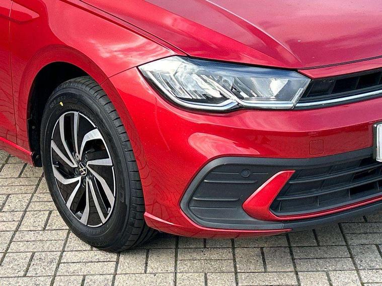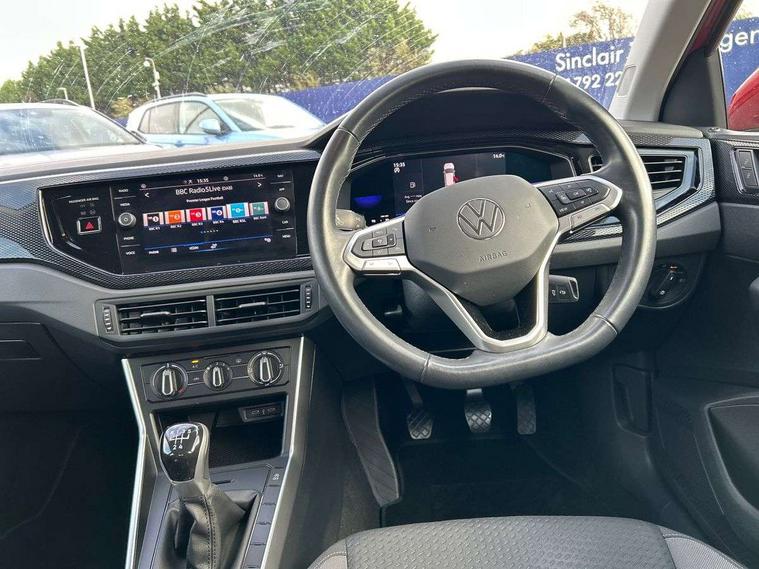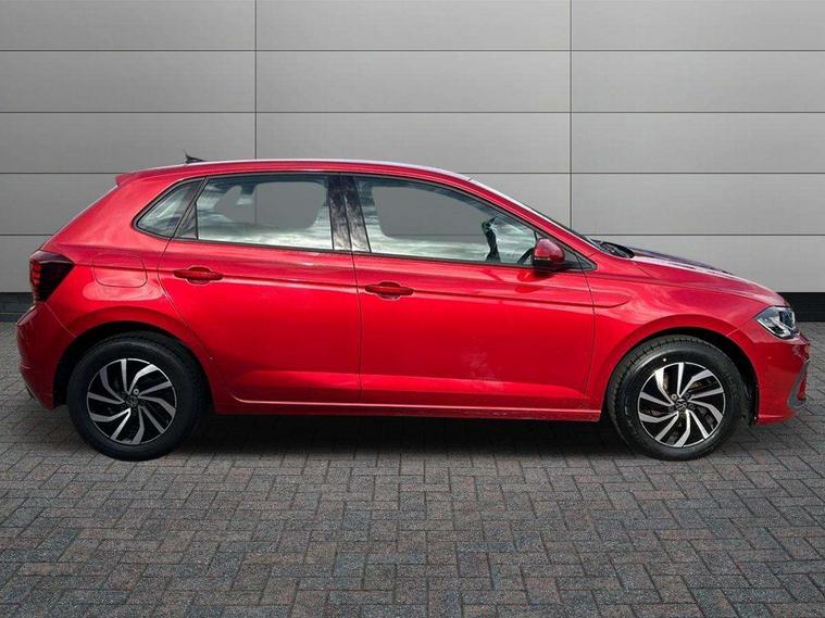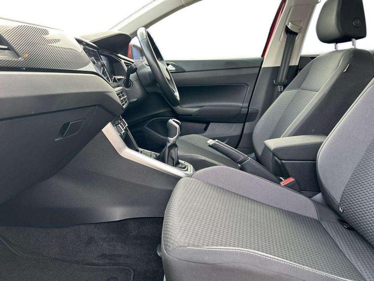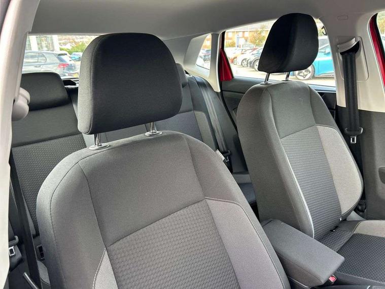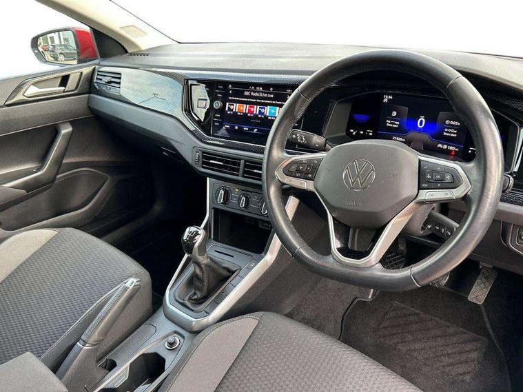 Adaptive cruise control without follow-to-stop and speed limiter, Bluetooth mobile phone interface, Driver alert system, Emergency call service, Front assist system, Power assisted speed sensitive steering, Preparation for We connect and We connect plus, Speedo and rev counter, electronic odometer, trip, service interval display and fuel gauge, Standard rear axle, Travel Assist - Lane keeping system and traffic jam assist, Travel assist including emergency assist, Trip computer, Warning signal and warning light for front and rear seatbelts not fastened, Washer fluid level indicator, Wireless app connect, Front wheel drive, Rear shock absorpion, Start-stop system with battery regeneration (recuperation - energy recovery during braking), DAB Digital radio, Diversity antenna for FM reception, Front and rear 6 speakers, Automatic dimming interior rear view mirror, Body colour bumpers, Body colour door handles, Body colour door mirrors, Electric front windows, Heat insulating darkened glass in side and rear windows, Heat insulating glass windscreen, Power folding adjustable/heated exterior mirrors and front passenger exterior mirror lowering function, Rain sensor, Rear electric windows, Rear fog light, Rear side wing doors, Rear windscreen washer and wiper with interval delay, Third brake light, 12V power socket in centre console, 2 front and 2 rear reading lights, 2 USB-C ports in the front, 2 USB-C charging sockets on the center console in the rear, 3 rear head restraints, 60/40 split folding rear seat and rear seat bench not split, Ceramique headliner, Chrome plated radiator grille inserts, air vent surrounds and light switch surrounds, Door and side trim panel, Driver and front passenger seat height adjustment, Driver/passenger sunvisors with illuminated vanity mirrors, Front centre armrest, Front seat backrest storage pockets, Front standard seats, Handbrake lever handle in leather, Hartley/Thomas cloth upholstery, Isofix child seat preparation easy-fit (for two outer rear seats, and front passenger seat) compatible with I-size, Leather trimmed gear knob, Luggage compartment cover, Luggage compartment floor, Luggage compartment lighting, Multifunction steering wheel, Single front passenger seat, Standard pedal cluster, Light and vision pack - Polo, 3 point height adj front seatbelts + pretensioners, 3x3 point rear seatbelts, ABS, Driver and front passenger airbag with front passenger airbag deactivation, Drivers and front passengers safety optimised head restraints, ESC (Electronic stability control) + EDL (Electronic Differntial lock) and ASR (Traction control), Extended and predictive pedestrian/ cyclist protection, Front curtain and side airbags with center airbag, Front disc brakes, Hill hold control, Manual child lock in rear doors, Rear drum brakes, Single tone horn, Tyre pressure loss indicator, Alarm with interior protection, Anti-theft alarm system with interior monitoring, backup horn, and towing protection, Anti-theft wheel bolts, Electronic engine immobiliser, Lava stone black gloss/matt decorative inserts in dash and front door panels, Low rolling resistance tyres,