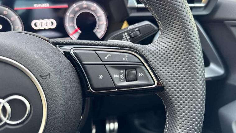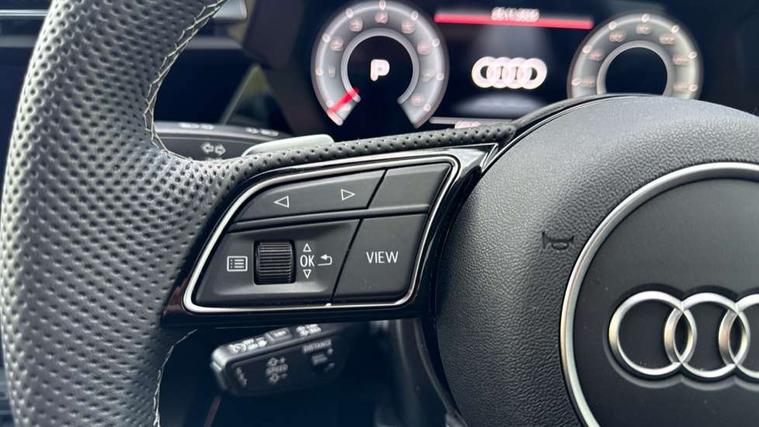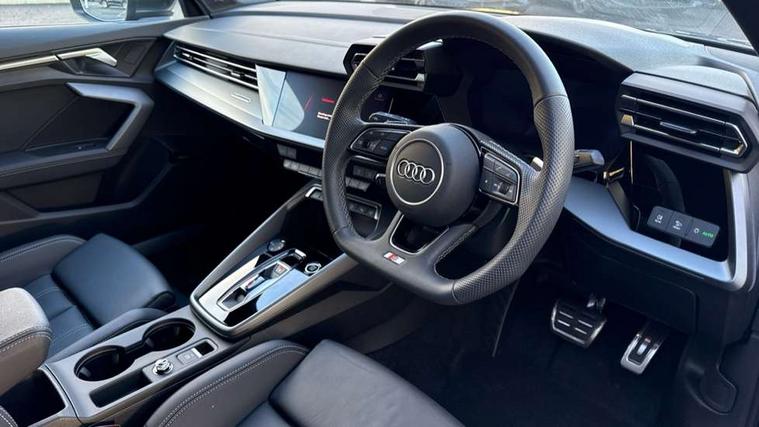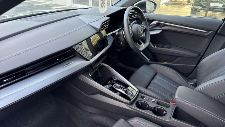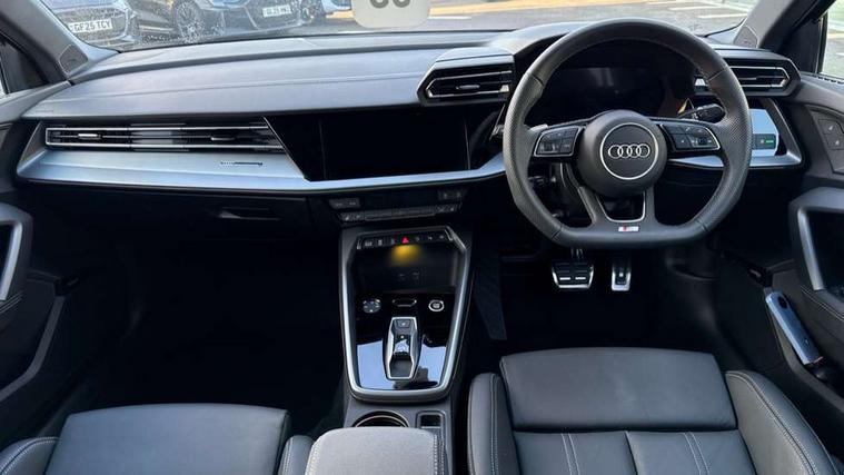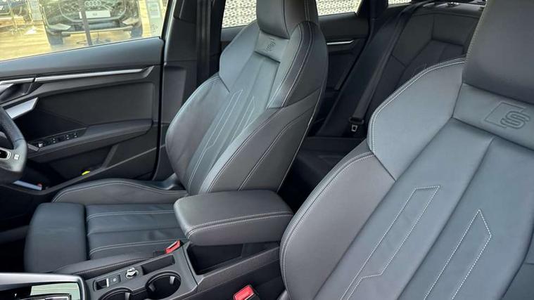 Adjustable speed limiter, Audi drive select, Audi smartphone interface with app store includes wireless Apple carplay, Android auto and Amazon alexa integration, Audi virtual cockpit plus - 12.3" full HD resolution dynamic digital instrument cluster, Automatic start/stop system with recuperation, Bluetooth interface, Camera based traffic sign recognition, Collision avoidance assistant, Cruise control, Distraction and Fatigue warning, e-Call (emergency call), Electromechanical power speed sensitive steering, Emergency assist, Lane departure warning system, MMI Navigation Plus with high resolution 10.1" colour touch screen display, Park Assist with parking system Plus, Service indicator, Trip computer, Voice control system with natural language interaction, Sports suspension, Audi Phonebox light with wireless charging, Audi sound system - 10 loudspeakers including centre loudspeaker and subwoofer, DAB Digital radio, USB ports with charging function in the rear, Acoustic glass windscreen, All weather light, Aluminium window trim, Auto dimming frameless rear view mirror, Automatic dynamic range control, Body colour exterior mirrors, Chrome exhaust tailpipes, Dipped beam, main beam, position light and turning light, Electrically adjustable/heated/folding/auto dimming door mirrors with integrated LED indications + kerb view function for passenger side, Exterior model badging, Front and rear side air inlets in grained matt black with dark liquid chrome frame, Front electric windows, Front radiator grill in high gloss dark chrome, Heat insulating glass windscreen, Illuminated door sills with aluminium inserts at the front with S logo, Intersection light, LED 3rd brake light, LED brake lights, LED daytime running x3, LED headlights with LED rear lights and dynamic rear indicators, LED rear number plate lights, LED reverse light, LED tail lights, Light and rain sensors, Manoeuvring light, Motorway light, Privacy glass - dark tinted rear window, rear door and side windows, Rear boot, Rear diffuser and grill in grained matt black with inlay in dark liquid chrome, Rear electric windows, Rear side wing doors, S line bumpers, Side S line emblems on front wings, Side sill trim in dark liquid chrome, Static cornering light, 12V socket and storage compartment in front centre console, 3 seat bench in 2nd row, 3 spoke flat bottomed leather multifunction sport steering wheel with gear shift paddles, 3-zone deluxe automatic air conditioning, 4 way electrically adjustable lumbar support for driver and front passenger, 40/20/40 split folding rear seat bench, Black cloth headlining, Black front and rear floor mats, Front and rear centre armrest in artificial leather with contrasting stitching on armrests and instrument panel, Front and rear headrests, Heated front seats, Height and reach adjustable steering wheel, Manual boot compartment lid, Manually adjustable front seats, Rear centre armrest with cupholder, S badging on the steering wheel, Seat side bolsters, Single front passenger seat, Stainless steel pedals and front footrest in black, Twin leather upholstery with front sports seats S embossed logo, Aluminium interior elements pack - A3, Multi-coloured LED interior lighting package with Multi-coloured contour lighting of instrument panel - A3, 3x3 point rear seat belts, Driver and front passenger airbag with passenger airbag deactivation, Electronic Stabilisation Control (ESC) including ABS, ASR and EDL, First aid kit with warning triangle and 2 safety vests, Front side airbags with head airbags and interaction airbag, Hill hold assist, Pre-sense front with pedestrian and cyclist detection, Seatbelt monitoring, Tyre pressure loss indicator, Anti theft alarm, Anti-theft wheel bolts, Electronically operated child locks, Immobiliser, Remote central locking with safelock, Black dashboard, Inlay in dark aluminium spectrum,
