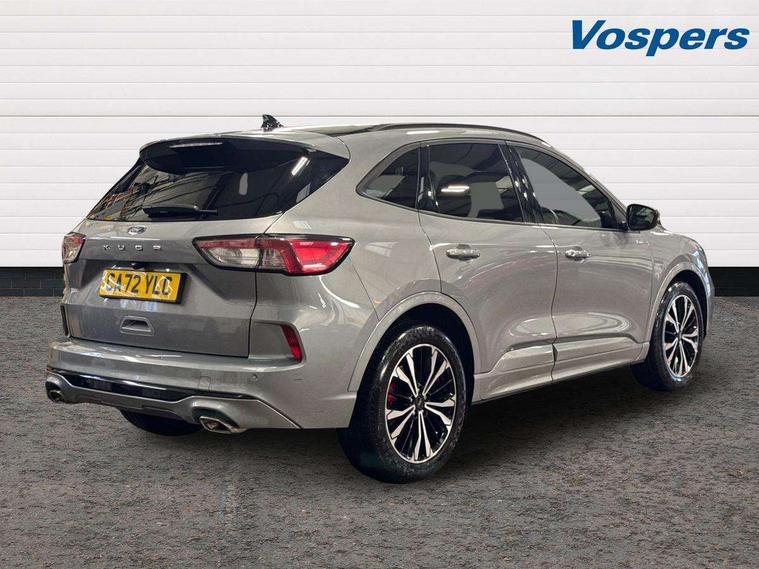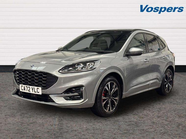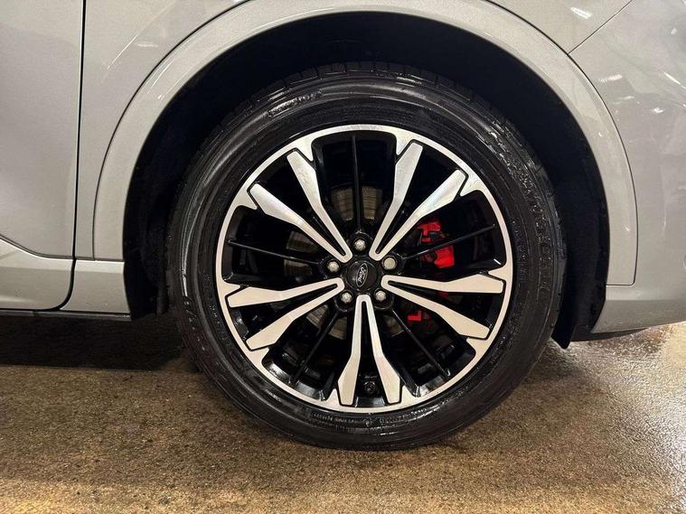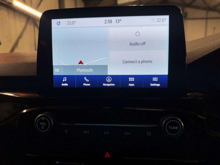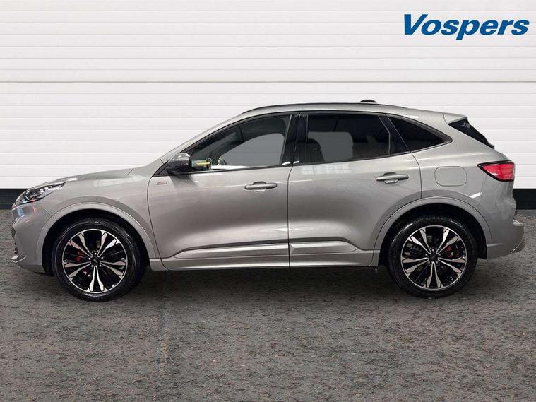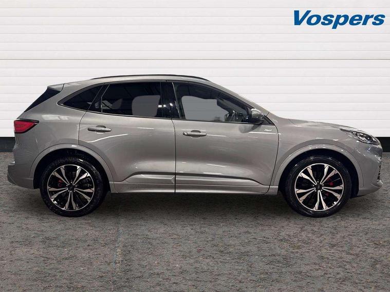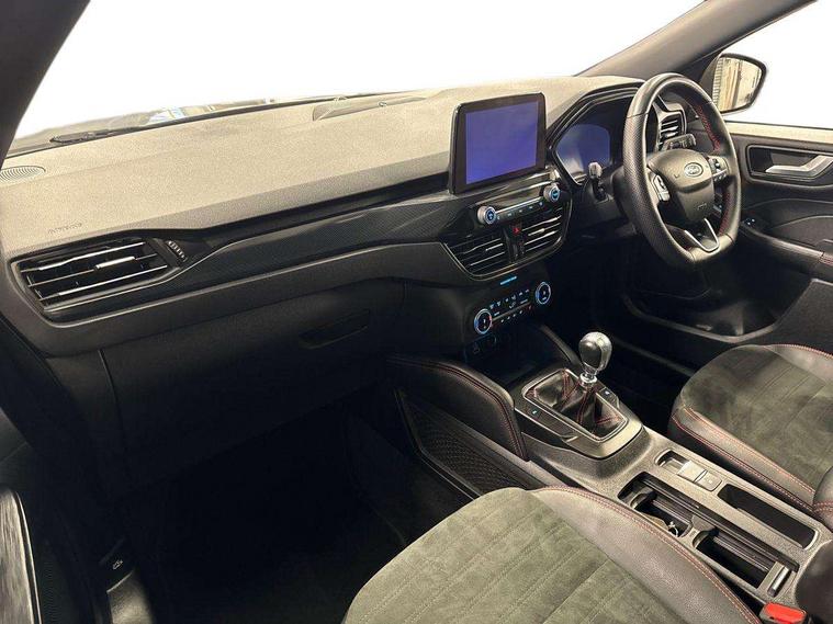 12.3" digital colour instrument cluster, Ford easy fuel, Ford SYNC 3 with 8" TFT LCD touchscreen, App Link, andriod auto/apple carPlay, emergency assistance and navigation with Ford pass connect, Front and rear parking sensors, Hands free power tailgate, Lane keeping aid with lane departure warning, Power assist steering, Rear view camera, Selectable drive modes, Service interval indicator, Sports suspension, Twist beam rear suspension, B&O premium audio system with 10 speakers and subwoofer, 2 USB ports, DAB radio/CD, Auto headlamps with high and low beam, Black roof rails, Day/night rear view mirror, Front LED fog lamps, Large rear spoiler, LED daytime running lights, LED rear lights, Power folding heated door mirrors with puddle lights, Power front/rear windows with global close, Power opening panoramic roof, Privacy glass, Quickclear heated windscreen, Rear side wing doors, Rear wiper, ST Line body styling kit with unique front and rear fascia and bumper, rear painted diffuser, front painted skid plates, dark mesh upper grille, ST Line front scuff plates, Third brake light, Twin exhausts, 10 way power adjustable drivers seat, 2nd row sliding seats with 60:40 split, 8 way manual passenger seat including lumbar support and height adjust, Alloy pedals, Centre console with electronic parking brake, Dark headlining and pillars, Electronic automatic temperature control (EATC), Flat bottomed leather steering wheel in sensico with red stitching, Front and rear head restraints, Heated passenger and driver seats, Heated rear seats, Heated steering wheel, Partial premium touch sensico leather upholstery with black cloth inserts and red stitching, Rear charging point, Single front passenger seat, Sports seats, ST Line front and rear floor mats, ST Line gear knob, 3x3 point rear seatbelts, Airbags - front driver/passenger, front and rear curtain, Drivers knee airbag, Electronic stability control (ESC) and ABS, Ford MyKey Gen 2 safety system, Manual child proof rear door locks, Post collision braking, Pre collision assist with autonomous emergency braking, Rear seat Occupancy alert, Red brake calipers, Tyre pressure monitoring system, Engine immobiliser, Keyless entry and Ford power start button (Keyless start), Locking wheel nuts, Remote powered central double locking doors, Thatcham category 1 alarm,