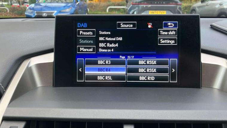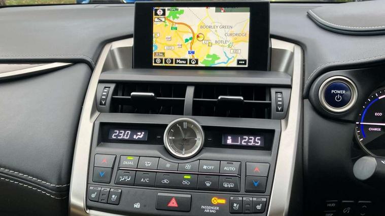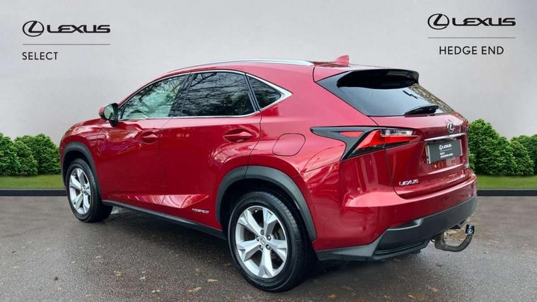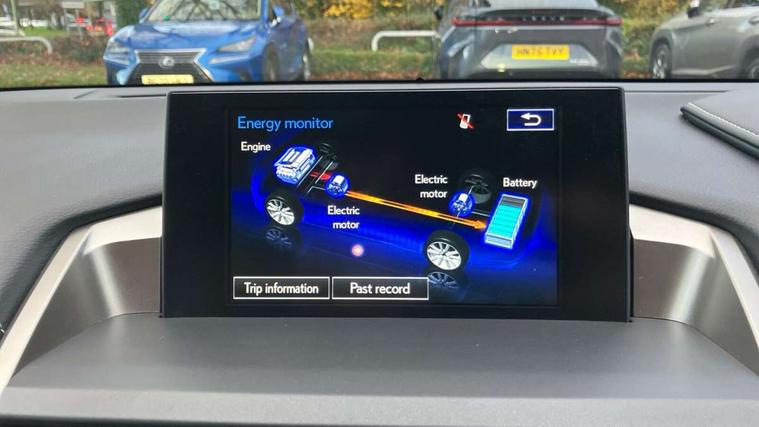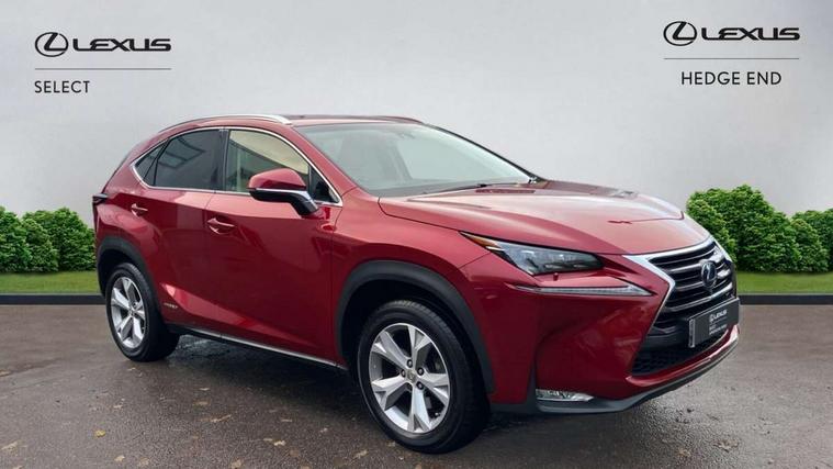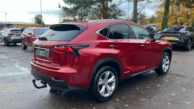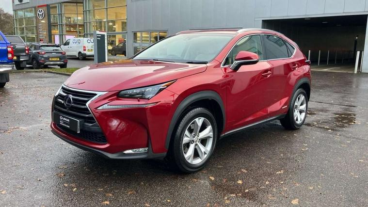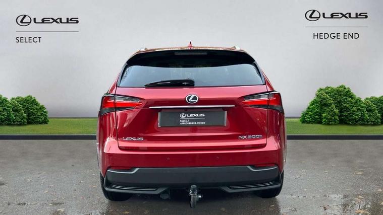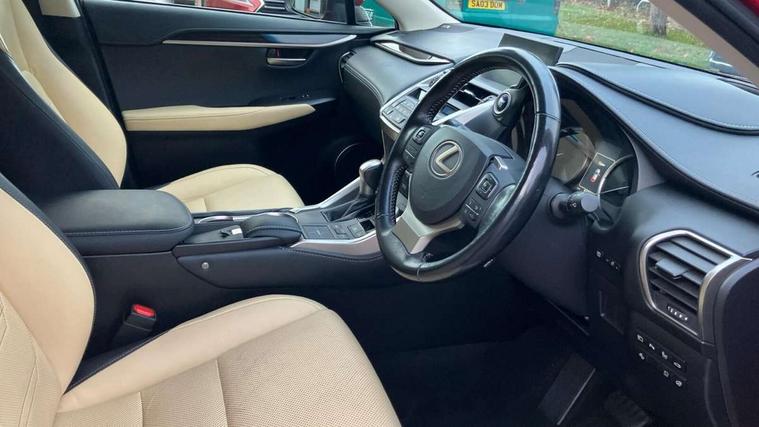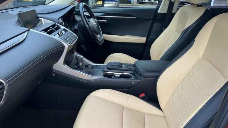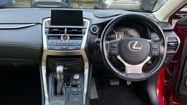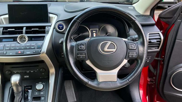 Adaptive cruise control + pre-crash system, Analogue clock, Blind spot monitoring, Bluetooth telephone connectivity, Drive mode selector, Front and rear parking sensors, Head up Display, Lane keep assist, Multimedia display, PAS, Premium navigation system, Push button starter, Rear cross traffic alert, Remote touch interface, Service interval indicator, Surround camera system, Trip computer, Voice control system, VDIM, Vehicle Stability Control (VSC), 14 speakers, Aux input, DAB Digital radio, Mark Levinson Audio with 6CD changer, Steering wheel mounted audio controls, USB connection, Adaptive high beam assist, Body colour bumpers, Electric/heated/folding door mirrors, Electrochromatic rear view mirror, Electrochromic door mirrors, Front and rear electric windows, Headlight washers, Illuminated door handles, LED daytime running lights, LED front fog lights with static cornering light function, LED Headlights, Privacy glass, Puddle lights in exterior door handles, Rain sensor windscreen wipers, Rear wiper, Roof rails, Roof spoiler, Shark fin roof aerial, 10 way electric adjustable drivers seat, 3 spoke leather steering wheel, 60/40 split folding rear seat, 8 way electrically adjustable passenger seat with height, reach, till and backrest, Driver seat memory function, Driver's lumbar support, Dual climate control air conditioning system, Electric adjustable steering column, Front armrests, Front seat ventilation, Heated front seats, Heated steering wheel, Isofix child seat attachment, Leather gear lever, Leather upholstery, Rear armrest, Rear headrests, Convenience pack - NX, 3x3 point rear seatbelts, ABS, Active front headrests, Curtain airbags, Driver/Front Passenger airbags, Driver/front passenger side airbags, EBD + Brake Assist, Electronic parking brake, Front/rear seatbelt pre-tensioners, Hill start assist, Passenger airbag cut-off device, Rear passenger side airbags, Traction control, Tyre pressure warning, Alarm, Immobiliser, Remote central double locking, Smart card entry, Speed sensitive power door locks, Space saver spare wheel,