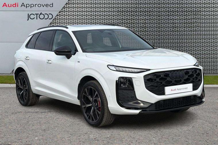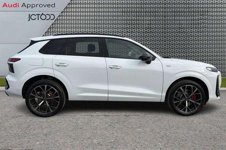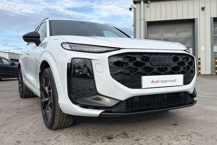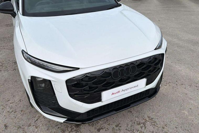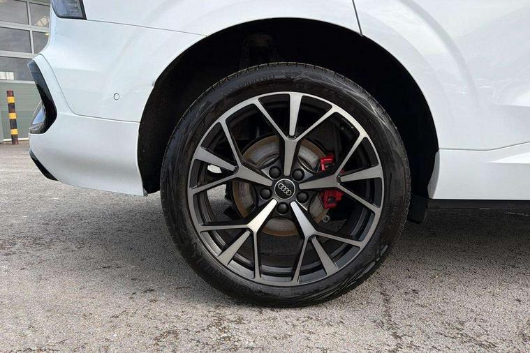 Adaptive cruise assist plus, Audi connect emergency call and service, Audi connect remote and controls, Audi drive select for suspension with damper control, Audi side assist with exit warning and rear cross traffic assist, Audi virtual cockpit plus - 11.9" display, Bluetooth interface, Camera based traffic sign recognition, Driver attention and fatigue detection with driver monitoring camera, Emergency assist, Front cross traffic assist, Garage door opener, Head up Display, In-car-office assist, Panoramic curved display with 12.8" MMI navigation plus and MMI touch, Phonebox light with wireless charging, Progressive steering, Projection of a black ice warning, Smartphone interface includes wireless Apple carplay/Android Auto, Start/stop system, Surround view cameras, Swerve assist and turn assist, Traffic sign based speed limiter, Trained parking, Voice control system with natural language interaction, 3 pin 10 amp domestic charging cable, Charging socket CCS type 2, Compact charging system, Industrial connector CEE 32A, 230V, Mode 3 charging cable for public charging, 22 KW (AC), Petrol Particulate Filter, Sound actuator for interior drive sound, Suspension with damping control, 2 USB-C ports with charge and data functions, DAB digital radio module, SONOS premium sound system, USB interfaces with higher charging capacity, Acoustic glass for front door windows, Acoustic windscreen, Advanced dynamic light scenario of the coming home/leaving home function, Aluminium window trim, Audi Q3 lettering on the B-pillars, Auto dimming rear view mirror, Automatic dynamic headlight range control, Automatically dimming exterior mirrors with memory function, Contrasting finish in volcano grey, Cornering light, Digital matrix LED headlights, Digital OLED rear lights, Dipped beam, Dynamic indicators, Electrically folding, adjustable and heated door mirrors with integrated LED side indicators and kerb view function for passenger side, Full paint finish, Headlight cleaning system, High resolution main beam, Illuminated door sills with aluminium inserts at the front with S logo, Intersection light, Lane light with side assist and direction indicator, LED daytime running lights, LED third brake light, Loading sill protector in stainless steel, Manoeuvring light, Motorway light, Opening panoramic sunroof, Orientation light with lane departure warning, Position light, Preparation for trailer hitch, Privacy glass - dark tinted rear window, rear door and side windows, Projection light in the exterior mirrors - Projects a graphic element onto the ground, Q3 badging on the rear, Rain and light sensors, Rear side wing doors, Rear window, rear door windows and rear side windows in clear glass, Rear wiper, Solid paint, Sports bumpers, Turning light, 3 seat bench in 2nd row, 3 spoke flat top and bottomed leather free multi function Sport steering wheel with gear shift paddles and "S" badging, 3-zone deluxe automatic air conditioning, 4 way lumbar support for the front seats - electric with horizontal and vertical adjustment in four directions, Black cloth headlining, Convenience auxiliary air conditioning, Electrically adjustable front seats with memory function for driver's side, Front and rear floor mats, Front and rear headrests, Front centre armrest, Heated front seats, Height and reach adjustable steering wheel, Interior storage compartment, Luggage compartment lid, electrically opening and closing, Microfibre upholstery with rhombus pattern and S emblem + front sports seats, Single front passenger seat, Stainless steel pedals, Steering wheel operating unit, gloss black, Storage compartment in front centre console, Ambient lighting package pro - Q3, Black styling pack with black door mirrors - Q3, Function pack - Q3, 3 point seat belts in front, with pretensioner and electric height adjustment, 3x3 point rear seatbelts, Acoustic vehicle alerting system, Convenience key with safelock, Driver and front passenger airbag with passenger airbag deactivation, Electromechanical parking brake, Electronic stabilisation control including ABS, ASR and EDL, First aid kit with warning triangle and high visibility vests, Front and rear side airbags with head airbags and front interaction airbag, Front emergency brake assist, i - Size child seat mounting on the front passenger side and i - Size and top tether on the outer rear seats, Power operated child locks, Proactive occupant protection, front, side and rear, Rear side airbags, Red brake callipers, front and rear, Seatbelt monitoring, Tyre pressure loss indicator, Anti theft wheel bolts, Remote central locking, Thatcham approved category 1 anti theft alarm, Dark aluminium divergence inlay, Interior elements in dinamica microfibre, Interior trims in aluminium look, 20" 5 spoke tripod design alloy wheels with gloss turned finish in darkened metallic black, Tool kit and Jack, Tyre repair kit,
