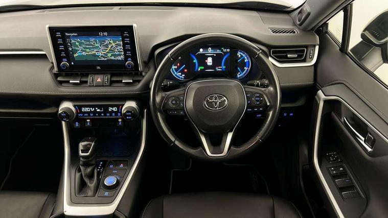 7" TFT multi information display, Analog tachometer, Apple car play and Android auto, Blind spot monitoring with rear cross traffic alert, Bluetooth system, Cyclist Detection, Drive mode selector, eCall emergency call system, ECO-driving indicator, Electric power steering, EV audible alert, Full range intelligent adaptive cruise control, Hybrid system indicator, Intelligent front parking sensors with clearance sonar and automatic braking, Intelligent rear parking sensors with clearance sonar and automatic braking, Lane departure warning system, Lane trace assist, Lights on warning, Memory on adjustable speed limiter, Multimedia switches on steering wheel, My T Connected services, Night Time Pedestrian Detection, Power boot opening and closing, Push button start, Rear parking camera, Remote boot door release in cabin, Remote boot door release in key, Road sign assist - RSA, Touch 2 Go navigation system including 3D maps and voice control, Traffic sign recognition, Trip computer, Voice control system, Vehicle Stability Control (VSC), 8" Multimedia display touch screen, Auxiliary socket for external MP3 player, DAB audio, JBL premium sound system with 9 speakers, 800W amplifier, 2 tweeters, 4 wide dispersion and 2 full range speakers, subwoofer, panoramic view monitor, Toyota touch media system, USB connection, Adaptive automatic high beam, Automatic headlamp levelling, Automatic headlights, Automatic wipers, Automatically retractable door mirrors, Black front under-run, Black painted rear Garnish, Black radiator grille, Black rear under-run, Black roof rails, Body colour door handles, Body colour rear spoiler, Body colour roof, Body coloured Shark-fin antenna, Door mirror puddle lights, Dual exhaust pipes, Electric adjustable door mirrors, Electrochromatic rear view mirror, Emergency brake-light signal (EBS), Follow me home headlights, Front and rear black skid plates, Front fog lights, Glass black protection moulding on side doors, Gloss black door mirrors, Gloss black front and rear bumper, Heated door mirrors, LED daytime running lights, LED High mounted stop lamp, LED rear combination lights, Metallic paint, Power front windows, Power rear windows, Privacy glass, Projector LED headlights, Rear screen wiper - intermittent, Rear windscreen defogger, Trailer Sway Control, Turning signal integrated indicators in door mirrors, 3 rear headrests, 60/40 split fold rear seat back, Black roof lining, Boot light, Clean air filter, Driver and front passenger personal light, Driver and front passenger Whiplash Injury Lessening seats, Driver and passenger sunvisors with illuminated vanity mirrors, Dual sided deck board in boot, Dual zone automatic air conditioning, Dynamic sports seats, Floor mats, Folding rear centre armrest, Front and rear bottle holders, Front centre armrest, Front footwell lights, Front headrests, Front seat and rear pockets, Front/rear roof mounted assist grips, Heated driver and front passenger seats, Illuminated entry system, Isofix child seat preparation, Leather gear shift with chrome surround, Light blue ambient lighting on front cupholders and open tray, Manual telescopic and tilt 3-spoke leather steering wheel with Chrome insert, Manually reclining and sliding front passenger seat, Pollen filter, Power height-adjustable sliding reclining and lumbar support for driver seat, Rear coat hooks, Rear door armrests, Rear passenger air vents, Rear view display in display audio screen with dynamic guide lines, Reclining rear seats, Satin chrome interior door handles, Synthetic leather upholstery, Telephone and voice recognition switches on steering wheel, 3x3 point rear seatbelts, ABS/EBD, Acoustic vehicle alerting system, Adjustable front driver and passenger seat belt extender, Brake assist function, Brake hold function, Child proof door locks, Collision mitigation braking system, Driver/Front Passenger airbags, Driver/front passenger side airbags, Drivers knee airbag, Electronic parking brake, Electronic Stability Programme (ESP), Front and rear curtain airbags, Front and rear seatbelt reminder, Front passenger airbag detector, Hill start assist, Pedestrian detection, Pre collision system, Seatbelt pretensioners with load limiters, Toyota safety sense, Traction control, Tyre pressure warning, Glass-breaking alarm sensors, Immobiliser, Intrusion alarm, Light - on and Key in reminder, Motion sensor alarm, Remote central locking, Smart entry + Smart start, Speed sensitive auto door locking, Tilt detection sensors, Piano black centre console with silver insert, Soft-touch black lower dashboard, Soft-touch black upper dashboard with silver insert, 19" 10 spoke black alloy wheels, Tyre repair kit,