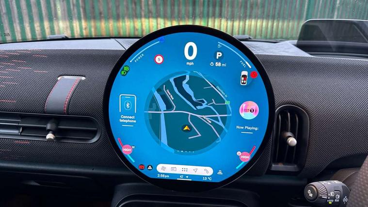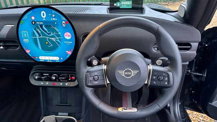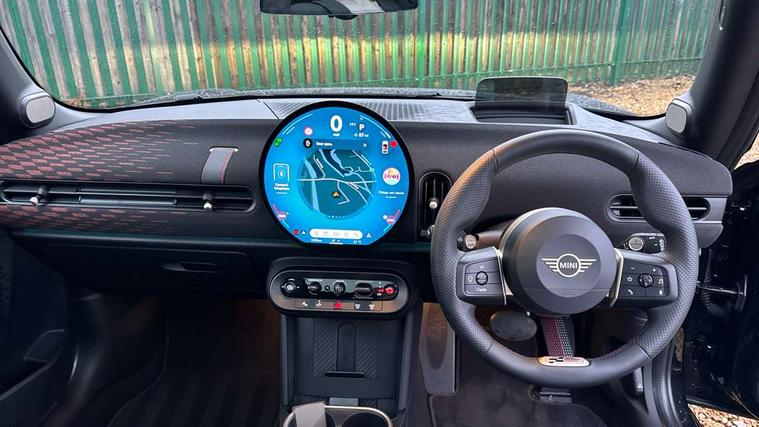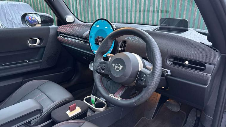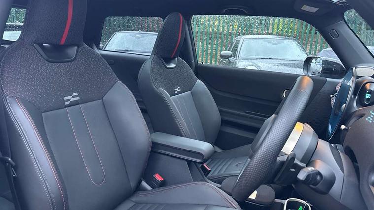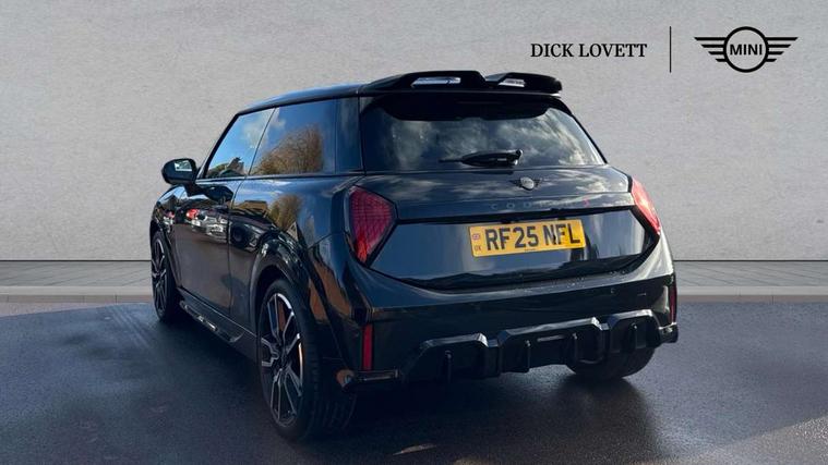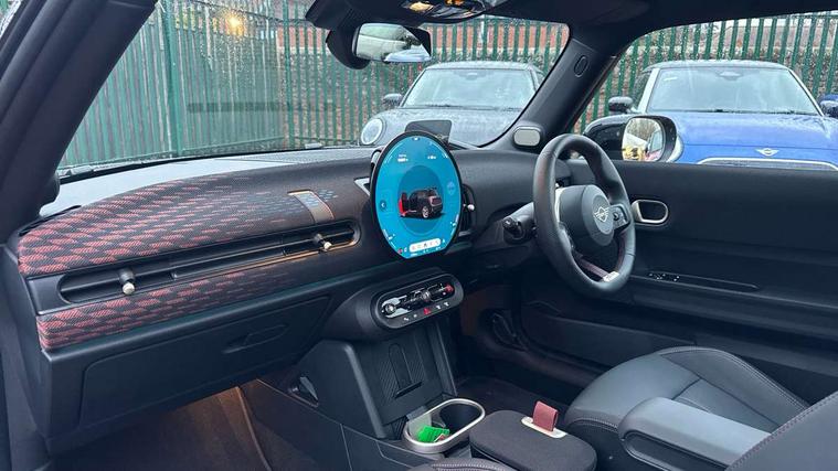 Central toggle bar, Circular OLED Screen, Compatible mobile phone bluetooth with audio streaming, Cruise control, Digital instrument cluster, Electro-mechanical speed dependant steering assistance, Emergency call service, MINI Experience Modes, Mini navigation system, On board computer, Service interval indicator, Tailgate, 7 speed steptronic transmission with double clutch, Adaptive suspension, DAB Digital radio, Personal eSim, Adaptable light signatures, Auto headlights, Electric adjustable heated door mirrors, Electric front windows, Front and rear apron, Heated rear window, Heated windscreen washer jets, High gloss black wheel arches, High gloss hexagonal patterned grille surround, JCW body kit, LED 3rd brake light, LED daytime running lights, LED indicator lights, LED rear lights, Rain sensor window wipers, Rear fog lights, Rear roof spoiler with airblades, Rear window wiper, 2 seat bench in second row, 2 zone automatic air conditioning, 60/40 rear seat bench, Ambient lighting, Black lower band in high gloss, Cupholders, Dark headliner, Front and rear head restraints, Front compact armrest, Front floor mats, Heated steering wheel, Height adjustable passenger seat, Lidded storage box in Black/Red knit, Luggage compartment lighting, Partially perforated vescin steering wheel with red accent, black/red decorative strap, Single front passenger seat, Steering wheel paddle shift, Sunvisors with vanity mirrors, Vescin/Cord combination JCW upholstery includes dash knit in black with red accents, Driving assistant pack - Cooper Hatchback, Level 1 pack - Mini Hatchback, Park assistant pack - Cooper Hatchback, 3 point seatbelts on all four seats, 6 Airbags - front, side, head and seat belt tensioners, Anti-lock braking system (ABS), Brake caliper in Black with JCW badge, DSC - Dynamic Stability Control, Electronic parking brake, Front and rear disc brakes, Front ISOFIX (iSize), Front passenger airbag deactivation, JCW Sport Brakes, Traction control, Tyre pressure monitoring system, Alarm, Immobiliser, Remote central locking, Black/Red decorative dash strap, Tyre repair kit,