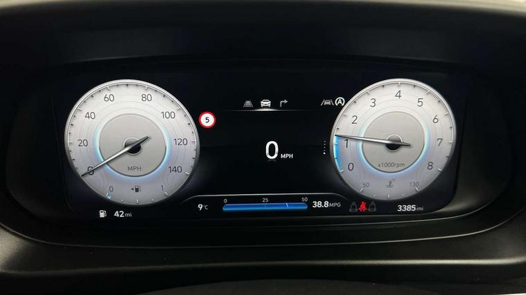 10.25" digital supervision cluster, 2nd Gen eCall, 8" Touchscreen with DAB, Apple car play/Android Auto, Cruise control + speed limiter, Forward collision assist with car, pedestrian and cycle detection, Intelligent speed limit warning, Lane follow assist, Lane keep assist, PAS, Rear parking sensor, Rear view camera with dynamic guidelines, USB C port front, 3rd brake light, Dusk sensor, Electric adjustable heated door mirrors, Front grille mesh pattern design, High beam assist, LED daytime running lights, LED Headlights, LED taillights, Rain sensor, Rear side wing doors, Rear wiper, Repositioned flat metal hyundai emblem, 3 seat bench in 2nd row, Adjustable head restraints, Air conditioning, Cloth upholstery, Floor mats, Leather steering wheel, Single front passenger seat, 3x3 point rear seatbelts, ABS with front and rear diagonally split, Autonomous emergency braking, Child locks on rear doors, Front ventilated disc brakes, Rear solid disc brakes, Tyre pressure monitoring system, 16" alloy wheels, Tyre repair kit,