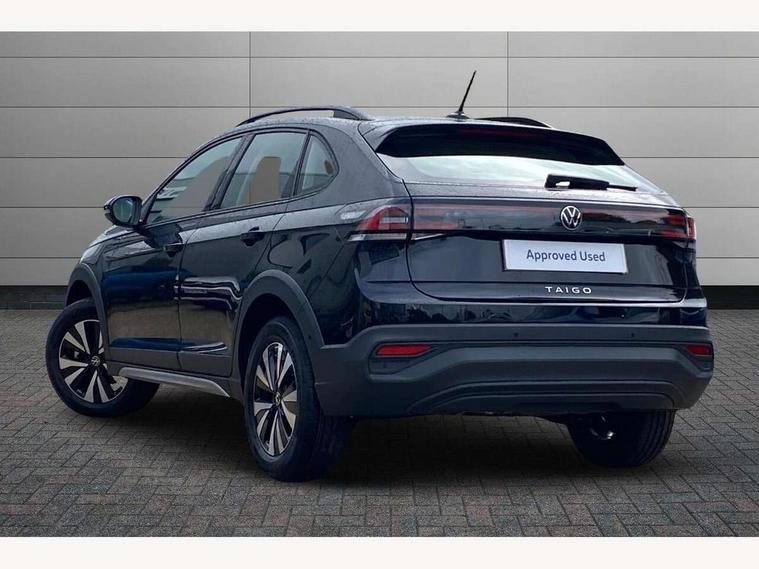 8" Digital cockpit basic display, Advanced driver attention and drowsiness monitor, Dynamic road sign display, e-Call (emergency call), Power Steering, Predictive adaptive cruise control, Travel assist including emergency assist, Washer fluid level indicator, Wireless Charging including Bluetooth, Start-stop system with battery regeneration (recuperation - energy recovery during braking), Digital radio reception (DAB+), WeConnect plus, Ambient lighting with logo projection, Aspherical driver's exterior mirror, Auto headlights, Body coloured bumpers, Body coloured exterior mirror housings and door handles, Electric windows, External USB type C socket and charging sockets, Heat insulating glass windscreen, LED rear combination lamp, LED third brake light, Left convex exterior mirror, Power folding adjustable/heated exterior mirrors and front passenger exterior mirror lowering function, Rear fog light on one side, reversing light on both sides, Rear side wing doors, Rear wash/wipe with intermittent wipe setting, 'Slash/ Austin' Cloth upholstery, 12V socket in centre console, 2 front reading lights, 3 rear head restraints, 3 seat bench in 2nd row, Black carpets, Child seat anchor for child seat system i-Size, 2x top tether and child seat anchor in front on front passenger side, Door and side trim panels in titan black, Driver and front passenger seat height adjustment, Front centre armrest, Handbrake lever handle in leather, Height and reach adjustable steering wheel, Leather trimmed gear knob, Leather wrapped multifunction steering wheel, Luggage compartment floor, Luggage compartment light, Lumbar support for driver's and front passengers seat, Seat covers in titanium black, Single front passenger seat, Split folding backrest with centre armrest and unsplit rear seat bench, Storage compartment under front seats, Sun visors with illuminated vanity mirrors, Chrome Package - Taigo, Drivers assistance pack - Taigo, Light and Sight pack including High beam assist - Taigo, 2 x 3-point seatbelts/outer rear seats with ECE label, 3-point seat belts in front with pretensioner and height adjustment, 3-point seatbelt for centre rear seat, Adaptive driver and front passenger airbags with passenger airbag deactivation function, Driver and front passenger airbags with front passenger airbag de-activation, front side and curtain airbags, Driver and front passenger safety-optimised head restraints, Electronic stability control, Extended and predictive pedestrian/ cyclist protection, Front and rear disc brakes, Front curtain and side airbags with center airbag, Hill start assist, Manual rear child locks, Single tone horn, Tyre pressure loss indicator, Anti-theft alarm system with interior monitoring, backup horn, and towing protection, Lava stone black gloss/matt decorative inserts in dash and front door panels, Low rolling resistance tyres,