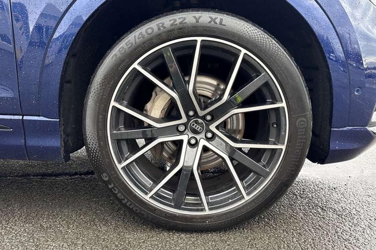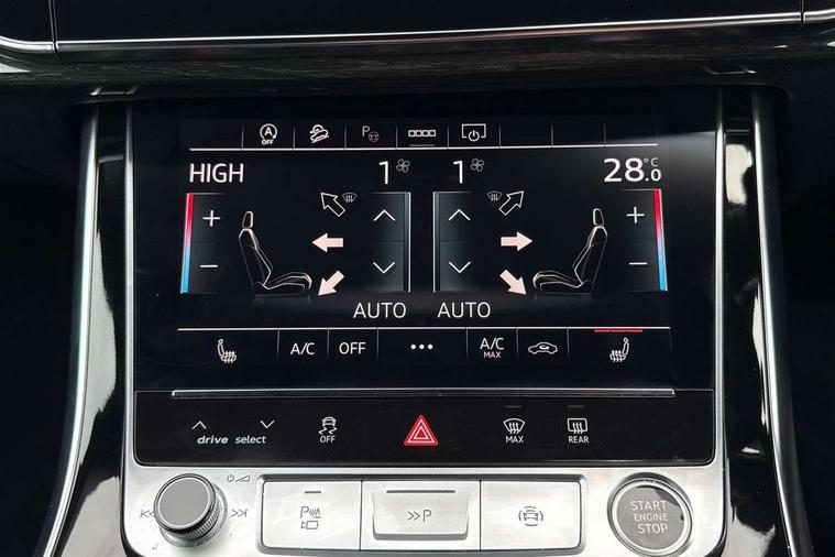 10.1" and 8.6" Dual colour touchscreens, Audi connect safety and service (e-call), Audi connect with Amazon Alexa Integration, Audi drive select, Audi parking system plus includes 360 degree display with front and rear sensors, Audi phone box light with wireless charging, Audi virtual cockpit - 12.3" high resolution LCD display with fully customisable instrument cluster, Automatic start/stop system, Electro-mechanical PAS, Low washer fluid indicator, MMI - Multi Media Interface control system, MMI navigation plus with MMI touch, Natural voice recognition, On board computer, Operating buttons in black, glass look with haptic feedback, Power operated tailgate, Rear view camera, Service interval indicator, Smartphone interface includes wireless Apple carplay/Android Auto, 48V Mild hybrid technology, Adaptive sport air suspension, Diesel particulate filter, Quattro all wheel drive with self locking centre differential, Audi music interface with 2 USB ports with charge and data functions, Audi sound system with 6 channel amplifier, 180 watt amplifying capacity and 10 loudspeakers including subwoofer, Aux-in socket, DAB Digital radio, 3rd brake light, Acoustic windscreen, Aluminium window trim, Audi beam, Audi HD Matrix LED headlights with dynamic front and rear indicators, Auto dimming frameless rear view mirror, Black Audi rings and black badging, Coming/leaving home lighting function, Electric front+rear windows, Electrically folding auto dimming/adjustable/heated door mirrors with memory function, LED side indicators and kerb view function for passenger side, Headlight washers, Heat insulating glass in windshield, LED signature daytime running lights, Platinum grey front spoiler lip and diffuser insert with honeycomb grille in black, Privacy glass - dark tinted rear and rear side windows from B-pillar backwards, Rain and light sensors, Rear side wing doors, Rear wiper, 2 zone automatic climate control, 3 bench rear seats in 2nd row, 4-way lumbar support for front seats, 40:20:40 split folding rear bench seat, Audi phone box light, Black cloth headlining, Comfort front centre armrest, Driver seat memory function, Electrically adjustable front seats, Front head restraints, Front/rear floor mats, Heated front seats, ISOFIX child seat mounting for front passenger seat and 2 outer rear seats with top tether child seat mounting for all 3 rear seats, LED interior ambient lighting, Luggage compartment sill protection in stainless steel, Rear centre armrest with 2 cupholders, Rear headrests, Seat cushion displaceable by 100mm in the ratio 60:40, Single front passenger seat, Stainless steel pedals, Sunvisors with illuminated vanity mirrors, 3 point seatbelts on all seats, Audi pre sense front, Child locks on rear doors, Driver and front passenger, front side and curtain airbags, Electromechanical parking brake, Electronic Stability Control (ESC) including ABS, ASR and EDL, Front passenger airbag deactivation, Hill descent control, Hill hold assist, Predictive pedestrian protection, Seatbelt monitoring, Traction control, Tyre pressure loss indicator, Warning triangle and first aid kit, Anti theft alarm with tow away protection, Anti-theft wheel bolts and wheel loosening detection, Immobiliser, Keyless go with remote central locking, Polished oak trim with grey finish inlay, Tool kit, Tyre repair kit,