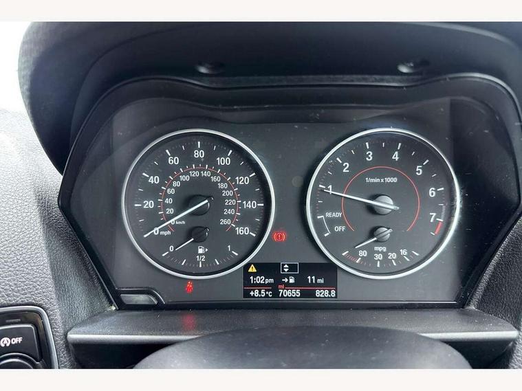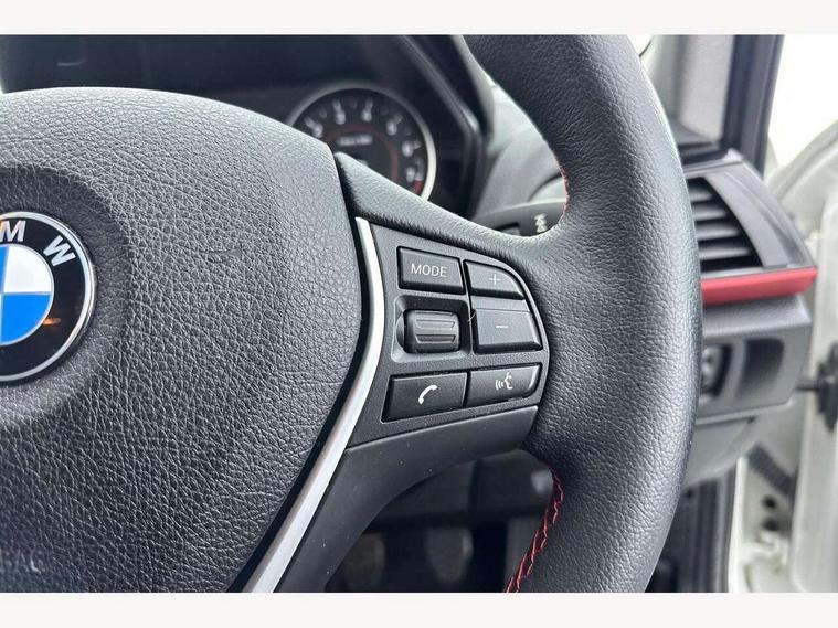 'Lights On' Reminder warning buzzer, BMW Teleservices, Brake force display, Engine start/stop button, Oil level indicator, On board computer, On board diagnostics, Outside temperature display, Service interval indicator, Speed limiter, Drive Performance Control, Auxiliary point for auxiliary devices, BMW professional radio with CD player, DAB Digital radio, Body colour bumpers, Body colour door handles, Dark chrome exhaust tailpipe, Electric front windows + one touch + anti-pinch, Electric rear windows, Electrically adjustable door mirrors, Follow me home headlights, Green tinted heat insulating glass, Heated door mirrors, Heated windscreen washer jets, High gloss black kidney grille, Rain sensor including auto headlights activation, Rear wash/wipe, Welcome lighting, 12V power socket in centre console, 12V power socket in passenger footwell, 4 grab handles, 60/40 split rear seats, Anthracite Velour floor mats, Door armrests, Folding rear seat head rests, Front door sill finishers in Sport designation, Front door storage bins, Front folding/sliding centre armrest with storage, Front head restraints, Front sports seats with electric side bolster adjustment, Front/rear courtesy lights with soft on/off dimming, Glovebox, Isofix rear child seat preparation, Leather gear knob and handbrake grip, Load restraint lashing eyes, Multifunction steering wheel with audio controls, Reach + rake adjustable steering column, Storage compartments in doors, ABS/EBD, Automatic Stability Control (ASC), BMW emergency call, Child locks on rear doors, Cornering brake control (CBC), Crash sensor, Driver/Passenger airbags (Impact dependent), Drivers knee airbag, DSC+, Dynamic brake control, Dynamic Traction Control - DTC, Front passenger airbag deactivation, Front side airbags, Hill start assist, ITS head airbags for front/rear, Pyrotechnically pre-tensioned front seatbelts, Seat belt force limiter, Three 3 point rear seatbelts, Tyre pressure monitor, Warning triangle and first aid kit, Automatic drive away locking facility, Electronic immobiliser, Remote central locking, Thatcham Cat.1 alarm, Run flat tyres,