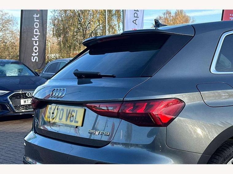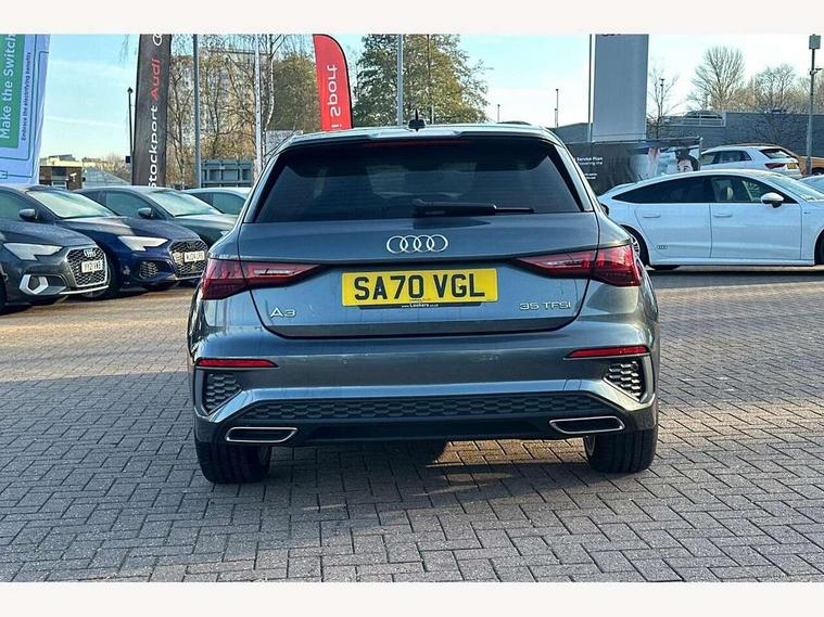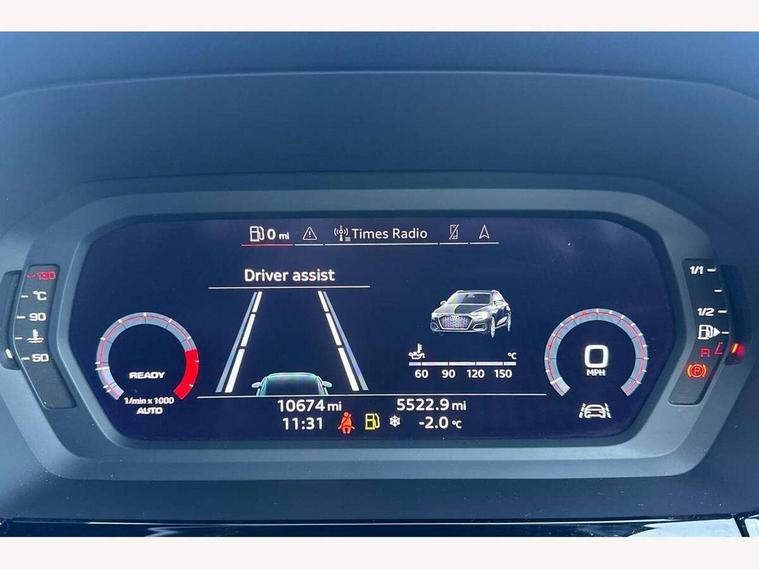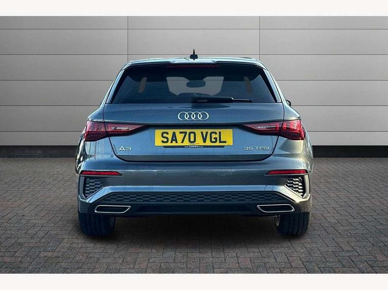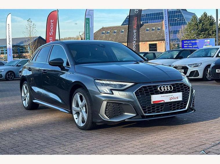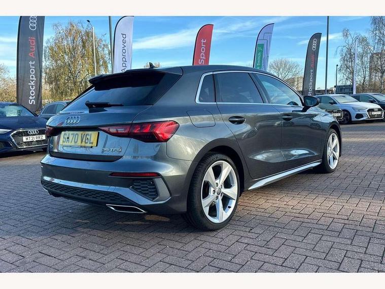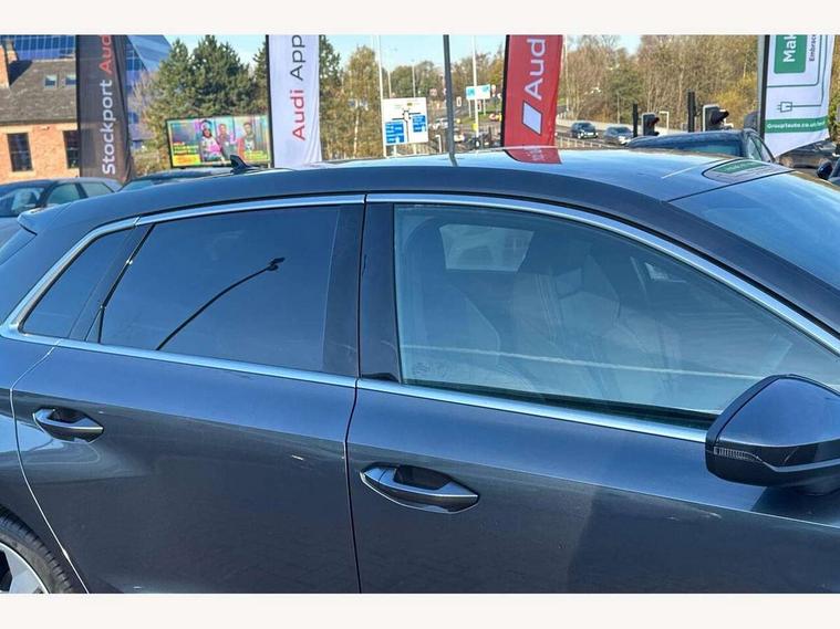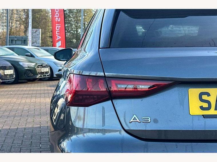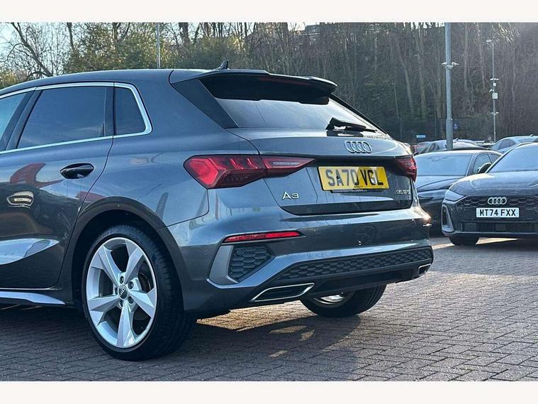 Audi connect emergency call and service, Audi drive select (Auto, Comfort, Dynamic, Efficiency and Individual), Audi smartphone interface, Audi Virtual Cockpit - 10.25" digital and colour instrument cluster, Automatic start/stop system with recuperation, Bluetooth interface, Collision avoidance assistant, Cruise control, Electromechanical power speed sensitive steering, Lane departure warning system, MMI Navigation Plus with high resolution 10.1" colour touch screen display, Rear parking sensors, Service indicator, Trip computer, Voice control system with natural language interaction, 1xUSB-A and 1xUSB-C connection, 6 passive loudspeakers, DAB Digital radio, Acoustic glass windscreen, Aluminium window trim, Auto dimming frameless rear view mirror, Body colour exterior mirrors, Electrically adjustable/heated/folding/dimming door mirrors with kerb view includes integrated LED indications + kerb view function for passenger side, Front electric windows, Illuminated aluminium inserts front door sills with S logo, LED daytime running lights, Light and rain sensors, Privacy glass - dark tinted rear window, rear door and side windows, Rear electric windows, Rear side air outlets in grained matt black, Rear wiper, S line bumpers, S roof spoiler, 12V socket and storage compartment in front centre console, 40/20/40 split folding rear seat bench with cupholder, Black cloth headlining, Dual zone electronic climate control, Front and rear centre armrest in leather, Front and rear headrests, Front/rear floor mats, Height and reach adjustable steering wheel, Interior lighting - glove compartment light and right hand side, Luggage compartment floor covering, Manual boot compartment lid, Manually adjustable front seats, Seat side bolsters, Stainless steel pedals and front footrest, Twin leather upholstery with front sports seats S embossed logo, Aluminium interior elements pack - A3 Sportback, S line styling pack - A3 Sportback, 3x3 point rear seat belts, Driver and front passenger airbag with passenger airbag deactivation, Electronic Stabilisation Control (ESC) including ABS, ASR and EDL, First aid kit with warning triangle and 2 safety vests, Hill hold assist, Pre-sense front with pedestrian and cyclist detection, Seatbelt monitoring, Tyre pressure loss indicator, Anti theft alarm, Anti-theft wheel bolts, Electronically operated child lock, Immobiliser, Remote control central locking, Accent surfaces in the dashboard and centre console in platinum grey silk effect paint finish, Dark spectrum aluminium inlays,
