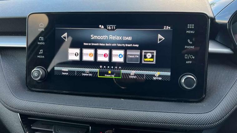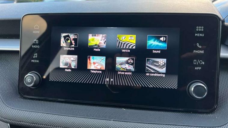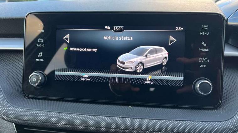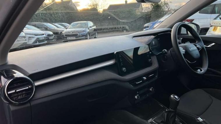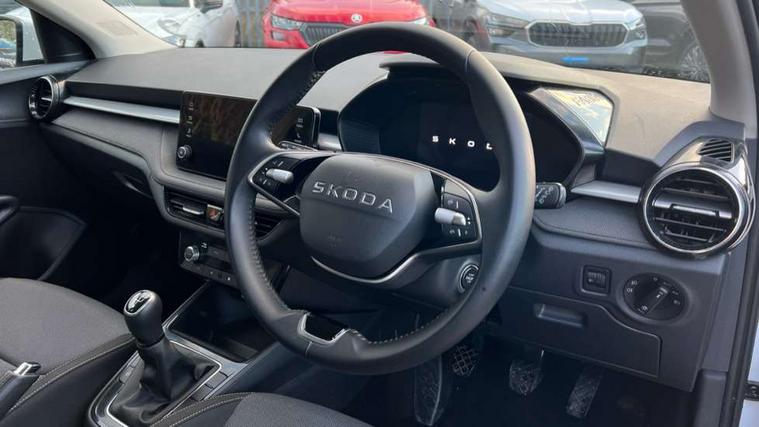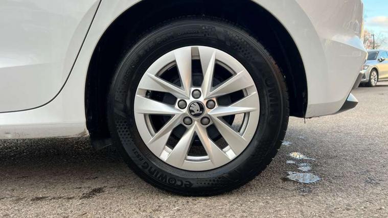 8" Digital instrument display, Advanced driver attention and drowsiness monitor, Bluetooth connection, Electromechanical power steering, Exterior temperature gauge, Service interval indicator, Traffic sign recognition, Wireless SmartLink for Apple CarPlay and Android Auto, 6 Speakers (4 in front and 2 in rear), 8.25" Skoda infotainment touchscreen display, Auxiliary socket for external MP3 player, DAB digital radio reception, Auto dimming rear view mirror, Body colour door mirrors, Body coloured bumpers, Door mirror integrated indicators, Front and rear electric windows, Front window wiper intermittent control, Headlight range control - Automatic, Ice scraper in fuel cap, LED 3rd brake light, LED daytime running lights with coming and leaving home feature, LED rear lights, Rear LED fog light, Rear side wing doors, Rear window wiper with washing nozzles, Roof mounted spoiler, SKODA tailgate lettering in chrome, Unique dark chrome design logo on alloy wheels, 2 reading lights in front and 2 reading lights in rear, 3 rear headrests, Backrest split and folding, Central console with removable cup holder and storage box, Chrome handbrake release button, Dual zone air conditioning with climatronic electronic control, Fabric upholstery, Front centre armrest, Gearshift knob/handle in leather, Grain satin black interior door handles, Hand brake lever handle in leather, Height adjustable front headrests, Height adjustable front seats, Height adjustable steering wheel, ISOFIX and TopTether anchorage points to the outer rear seats, ISOFIX and TopTether on the front passenger seat, Luggage compartment lighting, Manually adjustable lumbar support in front seats, Pollen filter, Rear seat bench unsplit, Single front passenger seat, Skoda lettering on steering wheel, Storm grey headlining, Sun visors with mirror and airbag label on passenger side, Textile floor mats, Ticket holder, Umbrella in drivers door, 3-point height adjustable front seats belts with pretensioner and force limiter, Automatic warning lights in case of crash, Driver and passengers airbag with switch off function, e-Call+, ESC including ABS, MSR, ASR, EDS, HBA and XDS, Front and rear seat belt warning, FRONT ASSIST (AEB City and AEB Inter Urban), Front side airbags, Head airbags, One tone horn, Pedestrian protection, Three rear 3-points safety seat belts with pretensioner and force limiter including stop function for outer rear seat belts, Tyre pressure monitoring system, Anti-theft alarm system including immobiliser, interior monitoring, backup horn, and towing protection, Central locking with radio remote control, interior controls, SAFE function and 2 foldable keys, Black painted air vents, Grain satin black central console cover, Metallic grey upper decorative trim, Satin black door and side trim panel in front, Textile Kota grey lower decorative inserts, Anti-theft wheel bolts protection, Super-low rolling resistance tyres,