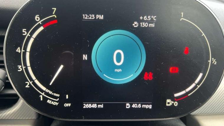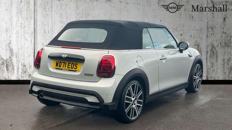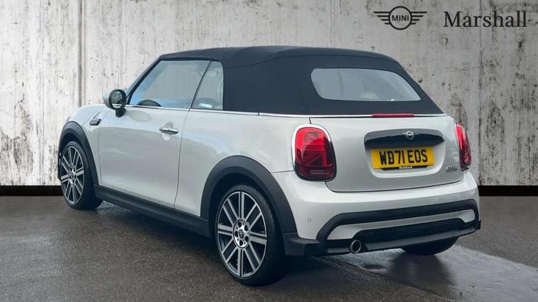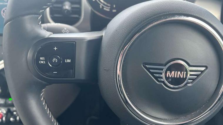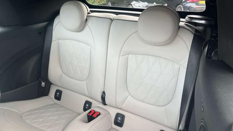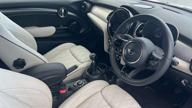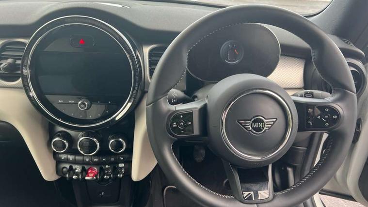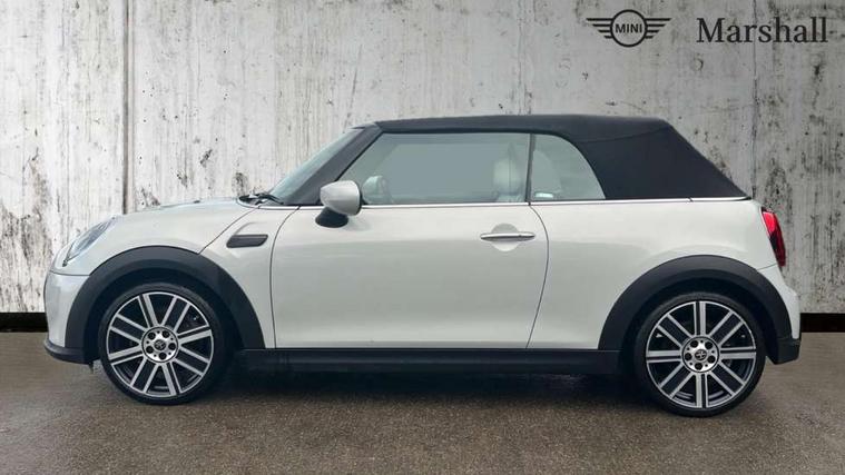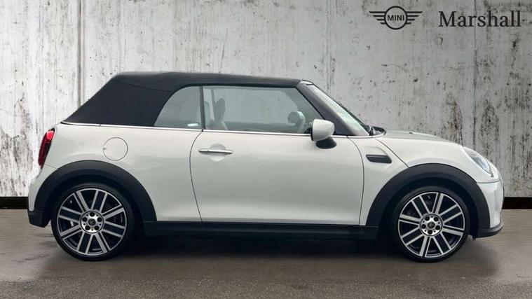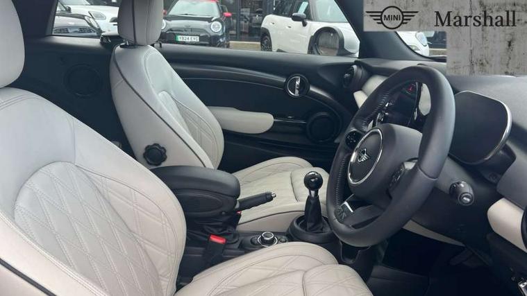 Apple CarPlay, Automatic start/stop function with brake energy recuperation, Compatible mobile phone bluetooth with audio streaming, Cruise control with brake assist, Electro-mechanical speed dependant steering assistance, Instrument cluster, MINI Driving Modes - centre toggle switch to control driving setting (sport, mid and green), Mini E-call, MINI TeleServices, On board computer, Rear park distance control, Service interval indicator, 6 Speed manual transmission including gear change indicator display, Double Vanos system, Fully variable valve control, High precision injection, Performance Control, 8.8" touchscreen with LED ring, FM tuner and DAB digital radio, Automatic headlight activation switch, Body colour fuel filler cap, Dynamic brake lights, Electric windows, Fully electric black softtop with integrated sunroof functionality, Heated rear window, Heated windscreen washer jets, LED headlight with closed ring and daytime driving lights, Left exhaust tailpipe with chrome finisher, Metal door sill strips with MINI imprint, Mini Yours soft top - Black/Union Jack, Model logo Cooper on right of tailgate, Radiator grille bars, tailgate handle, lower front grille grating, rear central fog light in chrome, Rain sensor window wipers, Rear fog lights, Rear LED lights with union jack design, Side scuttle panel with integrated indicator, Sun/heat protection glass, White indicator lenses, 12V Accessory socket in centre console, 4 lashing eyes in luggage compartment, 50/50 split folding rear seats, Chrome interior highlights, Colour line - Carbon black, Cupholders, Easy Load boot handles, Front and rear head restraints, Front and rear isofix with front passenger airbag deactivation, Glove compartment, Height and length steering column adjustment, Interior lighting with 12 different colours running across the dashboard, underneath door bezel illuminated laser engraved design on central display, Leather gearshift lever and handbrake gaiters, LED reading lights, vanity mirror lights, front foot well light and spotlight on front seats, Manual air conditioning, Mechanical seat adjustment, driver seat height adjust, forward/back and front seats backrest, MINI Yours walk nappa leather steering wheel with grey seam and MINI Yours badge on piano black lower steering wheel spoke, Multifunction steering wheel, Sports steering wheel, Storage compartments in doors, Sunvisors with vanity mirrors, Velour floor mats, Convertible pack with comfort access - Mini Convertible, 3 point seatbelts on all four seats, 6 Airbags - front, side and seat belt tensioners, Active rollover protection, Anti-lock braking system (ABS), DSC - Dynamic Stability Control, Front and rear disc brakes, Hill start assist, Single tone fanfare horn, Tyre pressure monitoring system, Alarm system with tilt sensor, monitoring doors, bonnet interior and tailgate, Electronic vehicle immobiliser, Keyless Go, Tool kit,