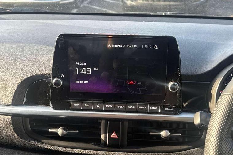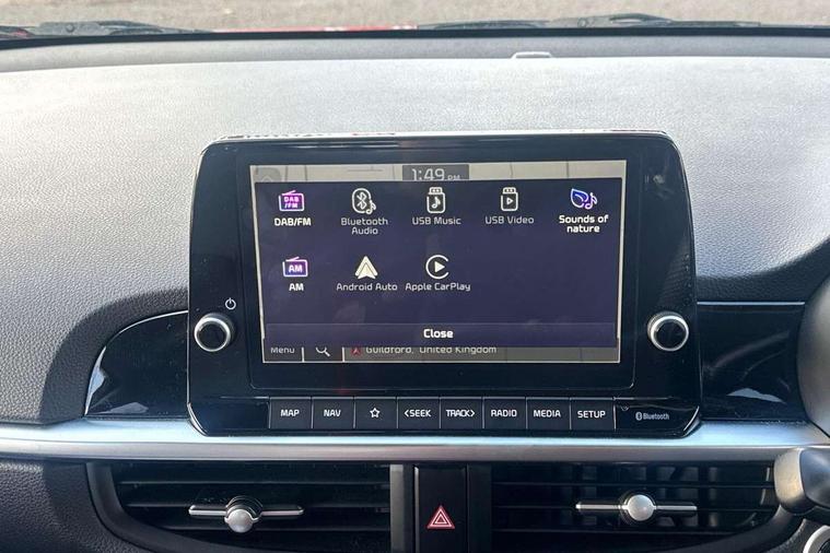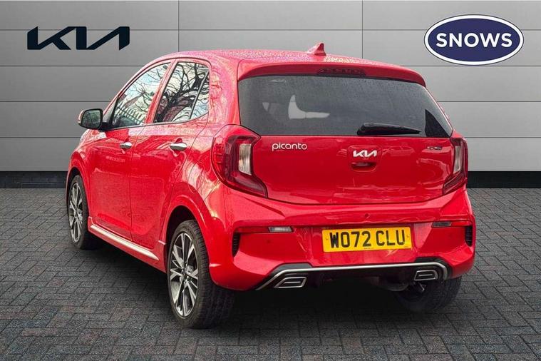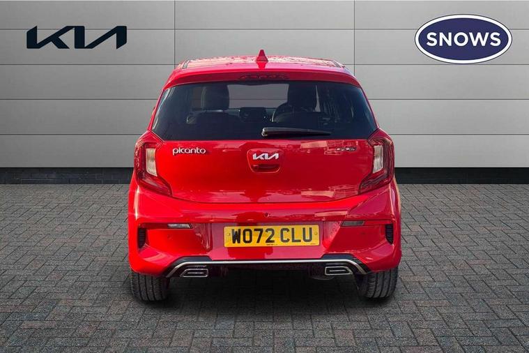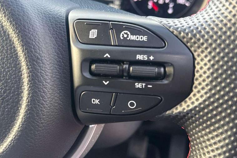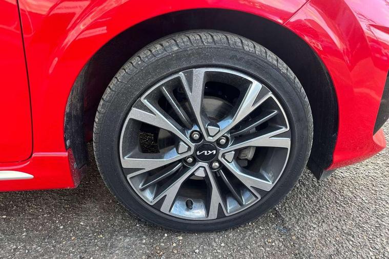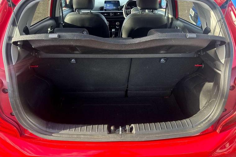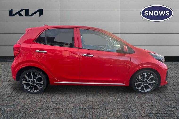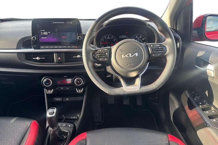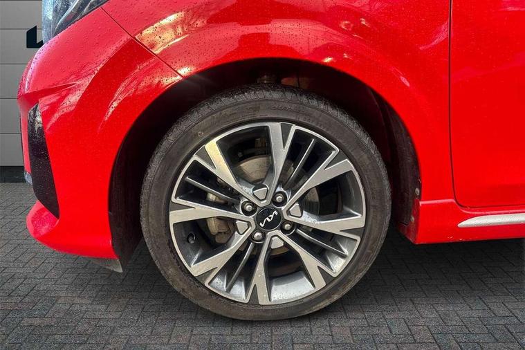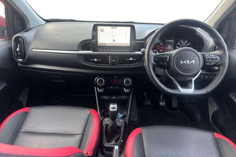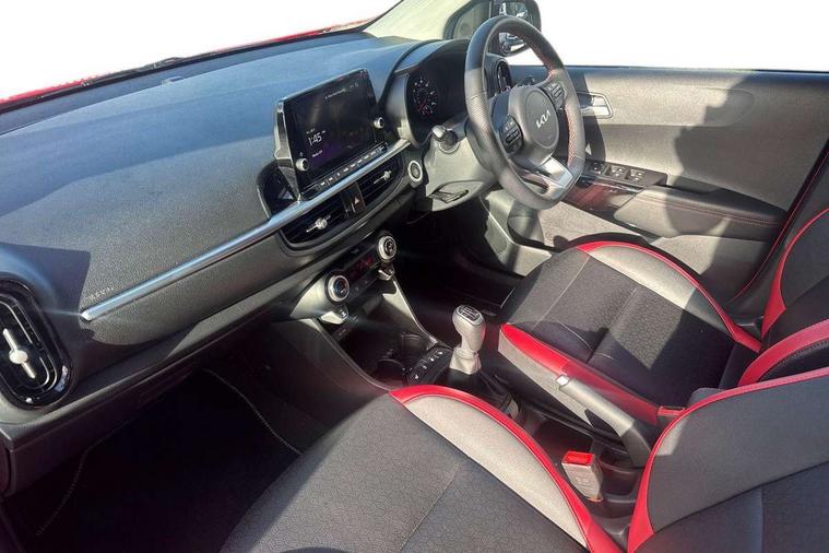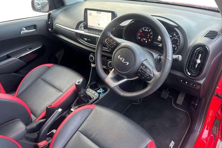 8" touch screen satellite naviagtion with RDS and DAB with telematics, Apple car play/Android Auto with voice control, Cruise control + speed limiter, Emergency call service, Emergency stop signalling system, External temperature gauge, Kia Connect (UVO), Motor driven power steering, Rear parking sensors, Reversing camera system with dynamic guidelines (Integrated into centre fascia screen), Tachometer, Trip computer, Wireless Smartphone charger, 6 speaker audio system, Bluetooth with music streaming, Steering wheel mounted controls, USB ports for connection of a media device, Automatic headlight control system, Bi-function projection headlights, Black beltline mouldings, Black grille with silver surround, Body colour B pillars, Body colour bumpers, Body colour side sill mouldings, Body coloured mirrors and chrome exterior handles, Day/night rear view mirror, Electric adjustable/heated/folding door mirrors with LED indicators lights, Front and rear electric windows with drivers's auto up/down function, Front fog lights, Headlamp levelling, Heated rear window, High mount brake light, LED daytime running lights, LED rear fog lights, Privacy glass - Rear windows and tailgate, Rain sensor, Rear side wing doors, Rear wash/wipe, Speed variable front wipers, Sports front and rear bumpers with gloss black skid plates twin exhaust, Tinted glass, Visible VIN plate, Welcome and follow-me home light functionality, 1 x rear coat hook, 12V power point front, 2 seat bench in 2nd row, 3 x passenger assist grips, 60/40 split/folding 2nd row of seats, All round height adjustable headrests, Automatic air conditioning, Black and red accents front door armrest, Centre Console with Storage Box and Sliding Armrest, Cupholders in centre console, D-cut steering wheel with red stitching, Driver and front passenger sunvisors with driver's side illuminated vanity mirrors, Driver seat height adjust, Faux leather upholstery, Front cabin lights, Glovebox, Heated front seats, Heated steering wheel, High gloss lower centre fascia trim, door armrest and air vents, ISOFIX Child seat top tethers and anchor fixings, Leather trimmed steering wheel and gearshift, Luggage area light, Luggage area parcel shelf, Passenger front seatback pockets, Satin chrome interior door handles, Single front passenger seat, Slide/reclining front seats, Tilt adjustable steering wheel, Advanced Driver Assistance Pack - Picanto, 2 x 3-point rear seatbelts, ABS/EBD, Automatic unlocking of doors in case of impact, Dual front airbags, ESC + BAS + VSM + HAC, Front passenger airbag cut-off switch, Front seatbelt height adjusters, Front seatbelt pretensioners + load limiters, Hill hold control, Knee airbags, Rear child proof door locks, Seatbelt warning, Side impact protection, Torque vectoring brake based and straight line stability (SLS), Traction control, Twin curtain airbags, Twin front side airbags, Tyre pressure monitoring system, Anti theft alarm, Engine immobiliser, Locking wheel nuts, Smart key with engine start/stop button, 16" alloy GT-Line wheels, Tyre mobility kit,