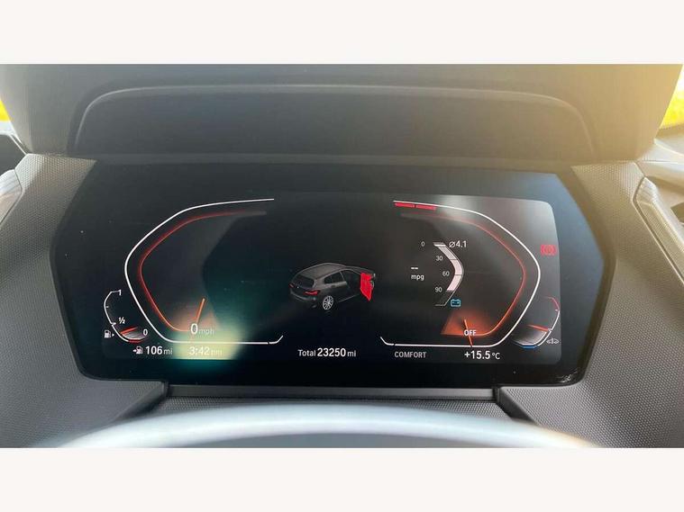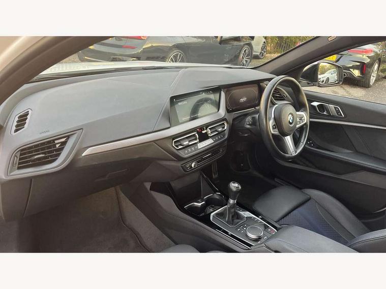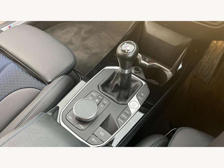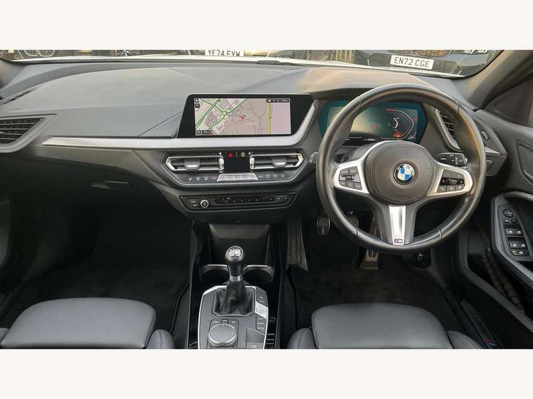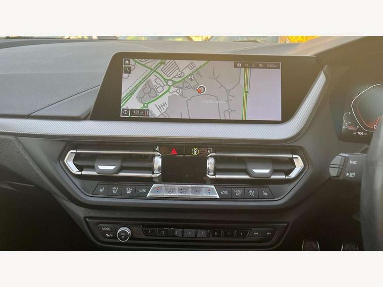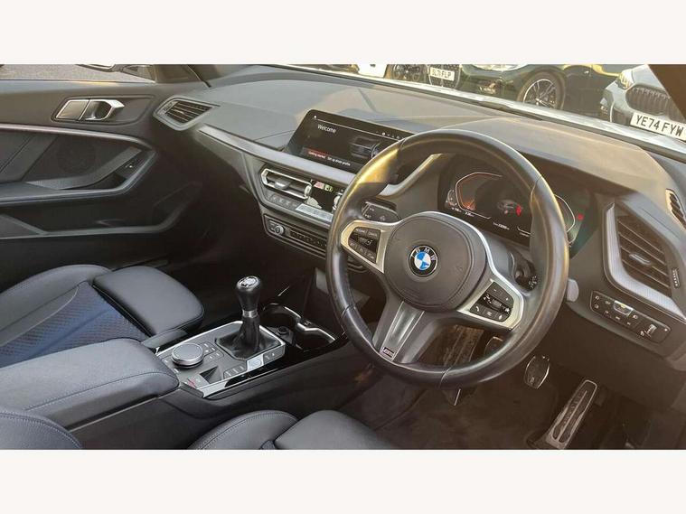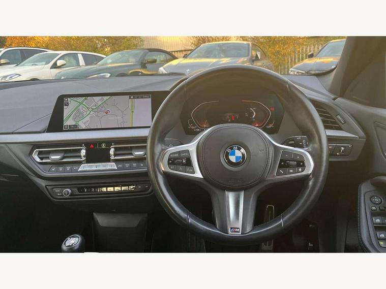 Active guard plus, Attentiveness assist, BMW ConnectedDrive online services, BMW Teleservices, Check Control warning system for monitoring of lights and door/luggage compartment open warning, Cruise control with brake assist, Eco pro mode, Front axle single joint with specific axle kinematics to minimise drive influences on steering + provide increased rigidity agile driving behaviour, Integrated owners handbook, Lane departure warning system, Oil sensor for level and grade, On board computer, Optimum shift indicator, Personal Profile, Pull away assistant, Rigidly mounted rear subframe - Multi link construction with separate spring / damper configuration and excellent driving characteristics, Speed limit Info including no-overtaking indicator, Speed limiter, Aluminium lightweight construction, Anti roll bar front and rear, Balancer shaft, Double VANOS twin scroll turbocharging system, Drive Performance Control, Electronic differential lock, High precision injection, M sport suspension, Petrol Particulate Filter, Twin tube gas filled shock absorbers with degressive characteristic curve, VALVETRONIC engine management, DAB Digital radio, Auto dimming rear view mirror, Automatic headlight beam throw control, Automatic windscreen wipers and automatic headlight, Body colour door handles, Body colour mirror caps, Body colour roof trims, Chrome 'M' logo side designation, Chrome exhaust twin tailpipes round 90mm in left, Chrome kidney grille frame with Satin Aluminium struts, Direction indicator side lights in exterior mirrors, Fading support, Folding side mirrors with auto dimming/folding wing mirrors with auto dimming, Follow me home headlights, Front and rear bumper system with replaceable deformation elements, Front and rear electric windows with open and close fingertip control, anti trap facility and comfort closing, Front door sill finishers in black plastic with M designation in metallic look, Green tinted heat protection glazing, Heated, electrically adjustable exterior mirror aspheric on driver side, convex on passenger side, High gloss shadowline window frame, Recess cover mirror frames and B/C pillar embelisher trim, High level third brake light, Integrated front windscreen with washer jets, LED daytime running lights, LED eyebrow turn indicators, LED front fog lights, LED Headlights, Lightweight engineering, Matt black air guide grilles, Matt black wheel arch trim, Model designation on electric bootlid, Nearside reverse light in rear light cluster, Preparation for high beam assistant, Rear fog lights, Rear side wing doors, Rear window wiper, Shark fin antenna, Trailer stabilisation logic, Visible VIN plate, Welcome lighting, 12V power socket in front centre console with blanking plug, 3 rear seat head restraints, 3 seat bench in 2nd row, 3 spoke sports leather steering wheel in black leather with black stitching and decorative finisher in pearl chrome, specific M badge + leather knob, Anthracite headlining, Black boot net with lashing eyes, Cargo function on 2nd seat row, Child seat ISOFIX attachment for two outer rear seats and front passenger seat with anchorage points, Conditioned based service, Driver and front passenger seat heating, Folding rear clothes hook, Four grab handles integrated in roof lining, Front and rear door pockets with bottle holders, Front and rear side armrest integrated into door trim, Front armrest, Front sports seats, Gearshift lever with M designation, Glove compartment, Height adjustable front head restraints, Luggage compartment for bag hooks on left and right, foldable luggage compartment liner and four lashing eyelets, Manual adjust steering wheel, Multi-function controls for steering wheel, Single front passenger seat, Storage compartment in centre console, Sun visors with vanity mirrors and insert tab, Two front centre console cupholders, Two zone automatic air conditioning, Velour floor mats, Additional interior lighting pack - 1 Series, BMW live cockpit professional pack- 1 Series, Connected pack professional - 1 Series, Interior lights pack - 1 Series, M Sport exterior styling aerodynamics pack - 1 Series, 2 tone horn, 3 point seatbelts on all seats, front pyrotechnic belt tensioners, stopper and belt force limiters, rear coded belt buckles, Airbags - Front driver/passenger, front and rear curtain head protection, front side, manual deactivation of front passenger airbag, Anti lock braking system (ABS) with brake assist, BMW emergency call, Brake drying, Braking readiness, Child proof locking system in rear door, City braking function, Comfort modes, Cornering brake control, Crash sensor activating central locking release, hazard warning lights, fuel cut off, interior lighting + activation of safety battery terminal clamp, Driver and front passenger seat belt security check, Dynamic stability control + (DSC+), Dynamic Traction Control - DTC, Electrically operated hand brake, Front and rear disc brakes, Seatbelt warning, Side impact protection, Tyre pressure monitoring system, Warning triangle and first aid kit, Central locking switch for all doors, fuel filler cap and luggage compartment, Deadlocking function system to all doors, Drive away locking system on all doors and luggage compartment with de-activated in iDrive settings, Locking wheel bolts, Remote control with integrated key with High-gloss Black inlay and M designation and 1 button for open/ close lock, window, open luggage compartment, Start/stop button illuminated in centre console with keyless engine start and auto start stop deactivation button, Thatcham Cat.1 alarm and immobiliser, Wheel slip limitation close to the actuator (ARB), Contrast stitching on instrument panel, Electrically powered 12V compressor, Reduced rolling resistance tyres,