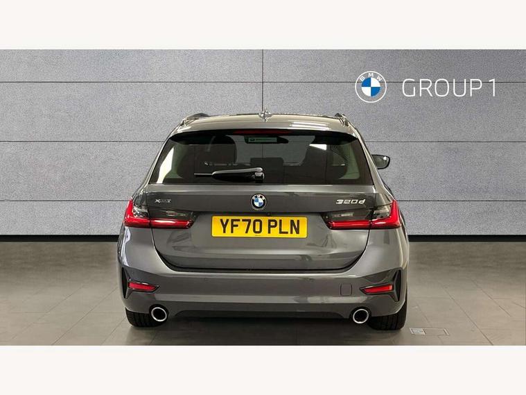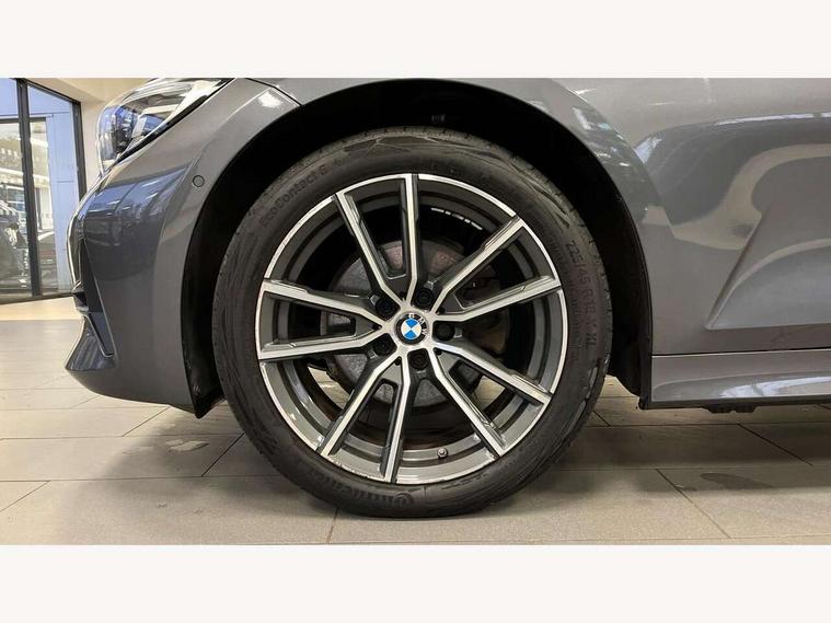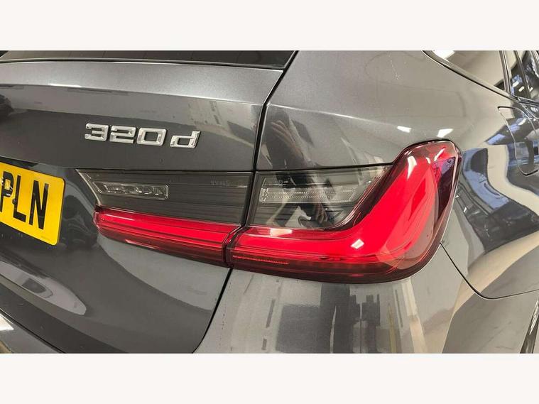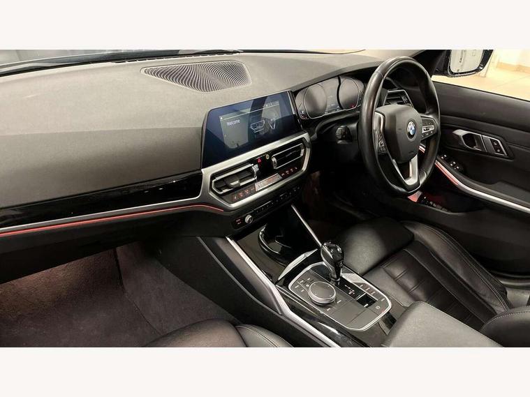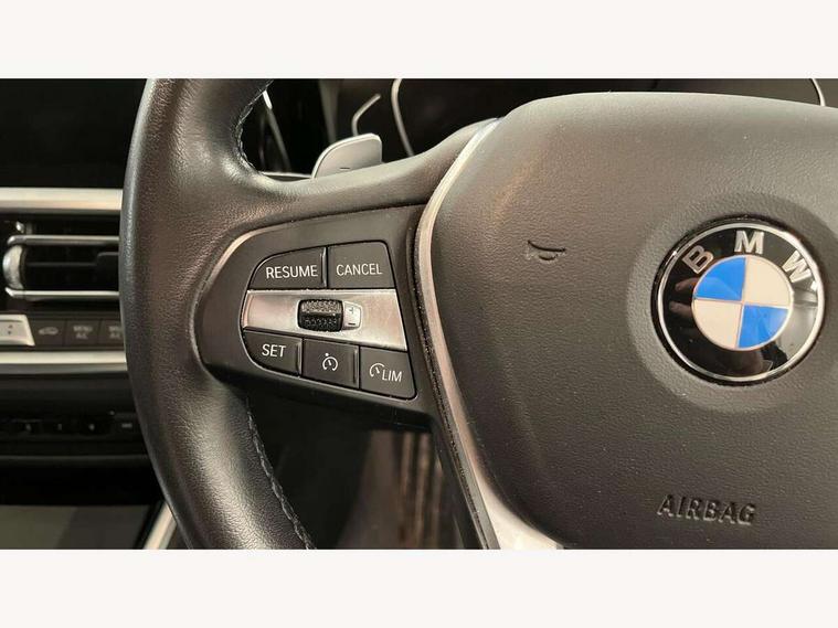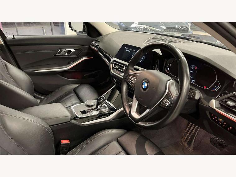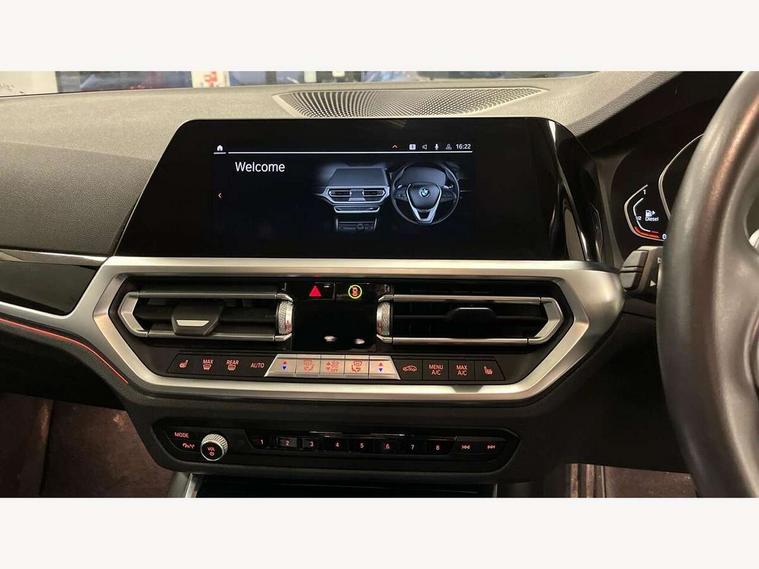 Active guard plus, Attentiveness assist, BMW iDrive controller on centre console, BMW Live Cockpit Plus with 8.8" central information display + 5.1" instrument display, Navigation, Intelligent voice control, 4G LTE connect, BMW service history, BMW Teleservices, Brake pad wear indicator in front and rear, Check Control warning system for monitoring of lights and door/luggage compartment open warning, Condition based service, Cruise control with brake function + speed limiter, Electric power steering, Electric power steering with Servotronic steering optimised at all speed ranges, Instrument cluster with speedometer with mph readout, tachometer, fuel gauge and oil temperature gauge, Integrated owners handbook, Oil sensor for level and grade, warning by check control system, On board computer - average speed+fuel consumption, service interval, clock/date, odometer/trip meter, outside temperature display and ice warning, Optimum shift indicator, Personal Profile - automatic lock when driving away selectable, Recovery braking system, Balanced 50/50 weight distribution, Battery cut-out switch, Diesel particulate filter, Drive performance control - ECO PRO, comfort and sport modes, Incorrect fuelling protection, Larger capacity fuel tank, Sport automatic transmission with steering-wheel mounted gearshift paddles and launch control, Stroke dependent dampers, xDrive system permanent all-wheel drive variable torque distribution, DAB tuner, Electronic service booklet, Acoustic glazing, Active airstream chrome frame kidney grille with 8 high gloss black vertical slats, Automatic headlight beam throw control with load dependent regulating reaction, dynamic compensation of braking dive and acceleration squat, Body colour door handles, Body colour fuel filler flap, Body colour mirror caps, Body colour roof mouldings, Brushed aluminium inserts in the front door sill finishers with BMW designation, Dynamic brake lights, Electric windows - front and rear, with open/close fingertip control, anti-trap facility and comfort closing, Exhaust tailpipe - split left and right, Exterior mirrors - electrically folding with anti-dazzle, Fading support, Green tinted heat protection glazing, High gloss black front bumper with specific design elements, High gloss black rear bumper with specific design elements, Interior rear view electrochromatic mirror with automatic anti dazzle function, LED daytime running lights, LED front fog lights, Lightweight engineering, Matt black exterior B pillar, Rain sensor with automatic headlight activation, Rear wiper, Shark fin antenna, T-shaped design element right and left in black high gloss, Two part LED tailights in L-shape with components in smoked glass, brake light, LED turn indicator and rear fog light, Visible VIN plate, Welcome lights in interior and door handle area, Windscreen wipers with integrated washing jets, xDrive designation on left tailgate, 12V power socket in front storage compartment, 2 front cupholder in centre console with clamping elements and matt black inlay, 3 rear seats with non folding headrests with 3 point seat belts, 3 zone automatic air conditioning, 4 pieces lashing eyelets in luggage compartment, 40:20:40 split folding rear seat with loading system, Ambient lighting with welcome carpet light, Armrest integrated in front and rear door trim + front centre console armrest, Centred top Luggage compartment lights, Four grab handles integrated in roof lining, Front and rear door exit lighting (left / right), Front and rear door pockets, Front and rear reading lights, Front and rear velour floor mats, Front head restraints, Front sport seats, Heated driver and front passenger seats, Height adjustable mechanically and infinitely variable steering column, Illuminated armrest storage compartment, Illuminated glove compartment with separate small compartment, Interior lighting - front centre over interior mirror with soft light, rear centre and front and rear footwell lighting, Make-up mirror lights, Rear centre armrest with 2 cupholders, Rear centre console with storage compartment and ventilation grille, Sunvisors with vanity mirrors and ticket pocket, Three spoke multifunction sport leather steering wheel, Toolkit located in luggage compartment, Vernasca leather upholstery, Connected pack professional - 3 Series Saloon/Touring, 2 tone horn, BMW emergency call, Brake energy regeneration, Braking pre-tensioning, Child proof locking system in rear door, Child seat ISOFIX attachment rear outer seats, Coasting in idle in ECO PRO mode, Crash sensor activating of airbags, Unlocking doors, hazard warning lights, interior light, safety battery terminal, Driver and front passenger side airbags, integrated in the door side seat backrest bolsters for all seat variants, Driver/Front Passenger airbags, Dry braking, Dynamic brake control, Dynamic stability control + (DSC+) - Anti-lock Braking System (ABS) with brake assist and cornering brake control + Automatic Stability Control (ASC), Dynamic Traction Control - DTC, Electric parking brake including automatic hold function and automatic release of the parking brake when driving off, Electronic differential lock control (EDLC), Front passenger manual airbag deactivation, Head airbags for all 4 outer seats, Hill start assist, Seat belt security check for driver and front passenger, Side impact protection, Three 3 point seat belts on all seats including front belt stopper, pyrotechnic belt tensioners and belt force limiters, Tyre pressure monitoring with three level warning strategy, Ventilated front and rear disc brakes, Warning triangle and first aid kit, Alarm system (Thatcham 1) with remote control and electronic engine immobiliser, Central locking switch for all doors, fuel filler cap and luggage compartment, Remote control with integrated key one button open/close vehicle and windows, sole opening of the luggage compartment lid and panic mode, Start/stop button with Comfort Go keyless engine start and auto Start/st