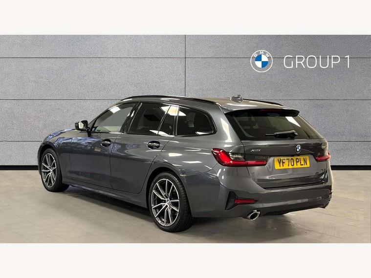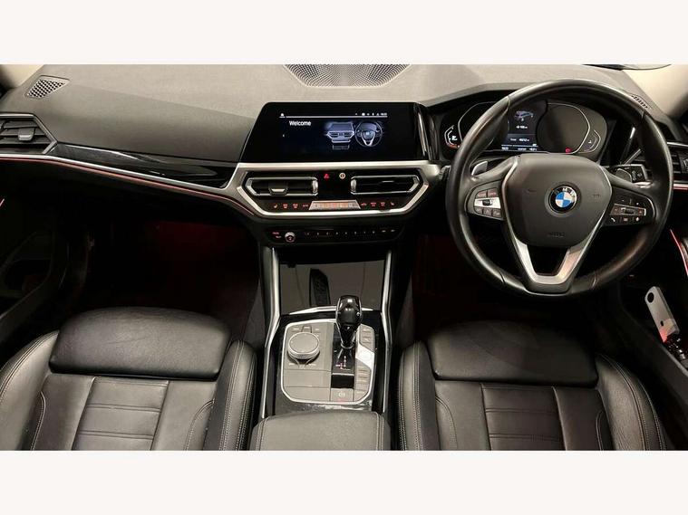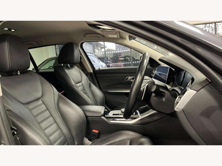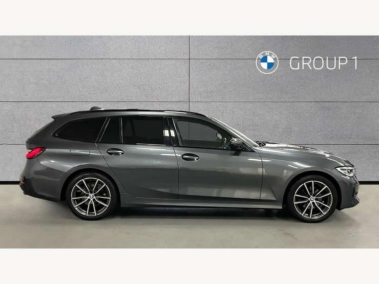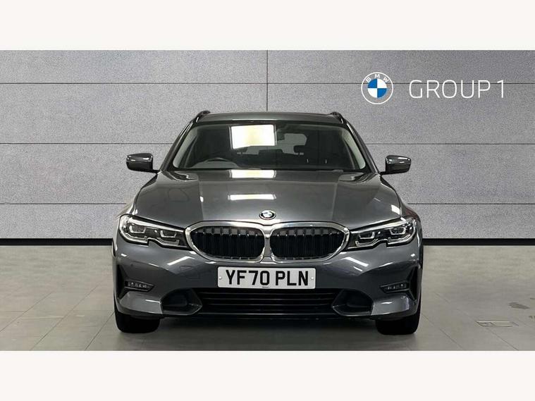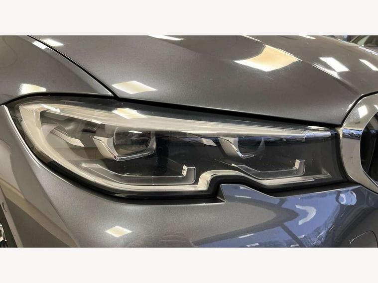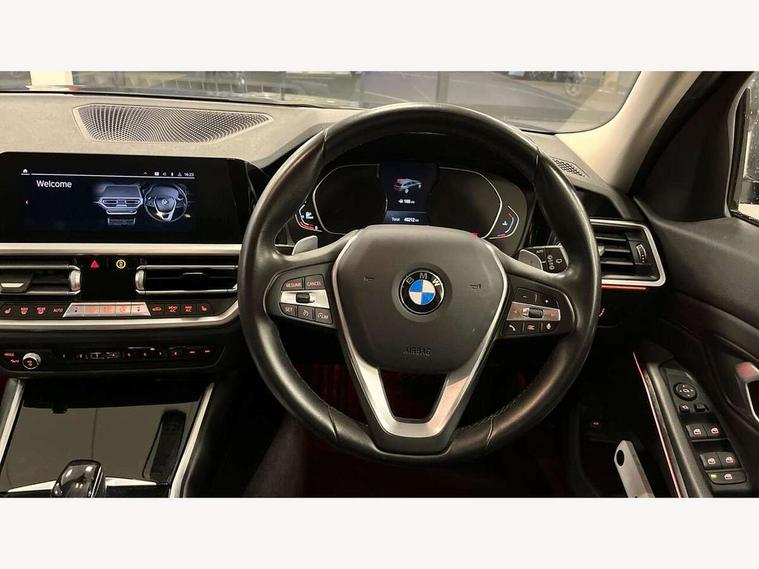 Active guard plus, Attentiveness assist, BMW iDrive controller on centre console, BMW Live Cockpit Plus with 8.8" central information display + 5.1" instrument display, Navigation, Intelligent voice control, 4G LTE connect, BMW service history, BMW Teleservices, Brake pad wear indicator in front and rear, Check Control warning system for monitoring of lights and door/luggage compartment open warning, Condition based service, Cruise control with brake function + speed limiter, Electric power steering, Electric power steering with Servotronic steering optimised at all speed ranges, Instrument cluster with speedometer with mph readout, tachometer, fuel gauge and oil temperature gauge, Integrated owners handbook, Oil sensor for level and grade, warning by check control system, On board computer - average speed+fuel consumption, service interval, clock/date, odometer/trip meter, outside temperature display and ice warning, Optimum shift indicator, Personal Profile - automatic lock when driving away selectable, Recovery braking system, Balanced 50/50 weight distribution, Battery cut-out switch, Diesel particulate filter, Drive performance control - ECO PRO, comfort and sport modes, Incorrect fuelling protection, Larger capacity fuel tank, Sport automatic transmission with steering-wheel mounted gearshift paddles and launch control, Stroke dependent dampers, xDrive system permanent all-wheel drive variable torque distribution, DAB tuner, Electronic service booklet, Acoustic glazing, Active airstream chrome frame kidney grille with 8 high gloss black vertical slats, Automatic headlight beam throw control with load dependent regulating reaction, dynamic compensation of braking dive and acceleration squat, Body colour door handles, Body colour fuel filler flap, Body colour mirror caps, Body colour roof mouldings, Brushed aluminium inserts in the front door sill finishers with BMW designation, Dynamic brake lights, Electric windows - front and rear, with open/close fingertip control, anti-trap facility and comfort closing, Exhaust tailpipe - split left and right, Exterior mirrors - electrically folding with anti-dazzle, Fading support, Green tinted heat protection glazing, High gloss black front bumper with specific design elements, High gloss black rear bumper with specific design elements, Interior rear view electrochromatic mirror with automatic anti dazzle function, LED daytime running lights, LED front fog lights, Lightweight engineering, Matt black exterior B pillar, Rain sensor with automatic headlight activation, Rear wiper, Shark fin antenna, T-shaped design element right and left in black high gloss, Two part LED tailights in L-shape with components in smoked glass, brake light, LED turn indicator and rear fog light, Visible VIN plate, Welcome lights in interior and door handle area, Windscreen wipers with integrated washing jets, xDrive designation on left tailgate, 12V power socket in front storage compartment, 2 front cupholder in centre console with clamping elements and matt black inlay, 3 rear seats with non folding headrests with 3 point seat belts, 3 zone automatic air conditioning, 4 pieces lashing eyelets in luggage compartment, 40:20:40 split folding rear seat with loading system, Ambient lighting with welcome carpet light, Armrest integrated in front and rear door trim + front centre console armrest, Centred top Luggage compartment lights, Four grab handles integrated in roof lining, Front and rear door exit lighting (left / right), Front and rear door pockets, Front and rear reading lights, Front and rear velour floor mats, Front head restraints, Front sport seats, Heated driver and front passenger seats, Height adjustable mechanically and infinitely variable steering column, Illuminated armrest storage compartment, Illuminated glove compartment with separate small compartment, Interior lighting - front centre over interior mirror with soft light, rear centre and front and rear footwell lighting, Make-up mirror lights, Rear centre armrest with 2 cupholders, Rear centre console with storage compartment and ventilation grille, Sunvisors with vanity mirrors and ticket pocket, Three spoke multifunction sport leather steering wheel, Toolkit located in luggage compartment, Vernasca leather upholstery, Connected pack professional - 3 Series Saloon/Touring, 2 tone horn, BMW emergency call, Brake energy regeneration, Braking pre-tensioning, Child proof locking system in rear door, Child seat ISOFIX attachment rear outer seats, Coasting in idle in ECO PRO mode, Crash sensor activating of airbags, Unlocking doors, hazard warning lights, interior light, safety battery terminal, Driver and front passenger side airbags, integrated in the door side seat backrest bolsters for all seat variants, Driver/Front Passenger airbags, Dry braking, Dynamic brake control, Dynamic stability control + (DSC+) - Anti-lock Braking System (ABS) with brake assist and cornering brake control + Automatic Stability Control (ASC), Dynamic Traction Control - DTC, Electric parking brake including automatic hold function and automatic release of the parking brake when driving off, Electronic differential lock control (EDLC), Front passenger manual airbag deactivation, Head airbags for all 4 outer seats, Hill start assist, Seat belt security check for driver and front passenger, Side impact protection, Three 3 point seat belts on all seats including front belt stopper, pyrotechnic belt tensioners and belt force limiters, Tyre pressure monitoring with three level warning strategy, Ventilated front and rear disc brakes, Warning triangle and first aid kit, Alarm system (Thatcham 1) with remote control and electronic engine immobiliser, Central locking switch for all doors, fuel filler cap and luggage compartment, Remote control with integrated key one button open/close vehicle and windows, sole opening of the luggage compartment lid and panic mode, Start/stop button with Comfort Go keyless engine start and auto Start/st