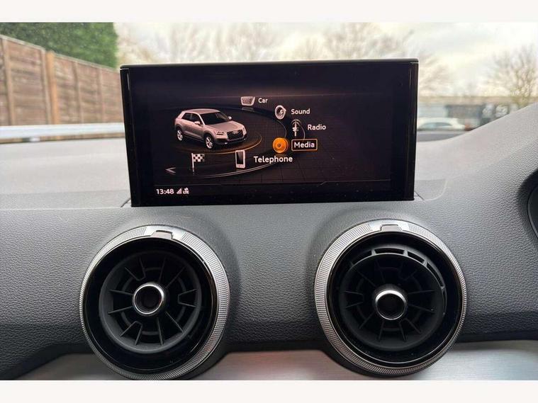Audi connect navigation and infotainment includes innovative services, Audi connect remote and control connects your vehicle to your smartphone, Audi drive select, Audi drive select with efficiency, Audi smartphone interface, Audi virtual cockpit, Automatic start/stop system with recuperation, Bluetooth interface includes bluetooth audio streaming, Cruise control, E-call, MMI navigation plus with MMI touch, Power operated tailgate, Progressive steering, Rear parking sensors, 2 x SDXC card reader, 8 passive loudspeakers, DAB Digital radio, DVD Drive, Auto dimming rear view mirror, Black window trims, Bumper in full body colour paint finish, Electrically adjustable, folding, auto dimming and heated door mirrors with integrated LED side indicators, Front windscreen with grey tinted sunband, LED daytime running lights, LED headlights with LED rear lights, LED third brake light, Privacy glass - dark tinted rear and rear side windows from B-pillar backwards, Rear side wing doors, Rear wiper, Variable front intermittent wipers, Wheel arch trims in manhattan grey, 12V socket in front, 3 seat bench in 2nd row, 3 spoke flat bottomed multi-function leather sport steering wheel, 4-way electric lumbar support for front seats including seat height adjustment for both front seat, 60/40 split folding rear seat bench, Black cloth headlining, Front and rear head restraints, Front centre armrest, Front/rear floor mats, Height/reach adjust steering wheel, Illuminated door sill trims with S logo, ISOFIX child seat mounting for front passenger with airbag deactivation and outer rear seat including top tether attachment point for outer rear seats, Single front passenger seat, Stainless steel pedals, Black styling pack - Q2, 3x3 point rear seatbelts, 6 airbags - Front, curtain and front side airbags, Electromechanical parking brake, Electronic stabilisation control including ABS, ASR and EDL, Hill hold assist, Pre-sense front with pedestrian recognition, Seatbelt monitoring, Tyre pressure warning light, Warning triangle and first aid kit, Anti theft alarm, Anti theft wheel bolts, Electronically operated child locks, Remote central door locking, Aluminium interior element, Matt brushed aluminium trim inlays, Tool kit,