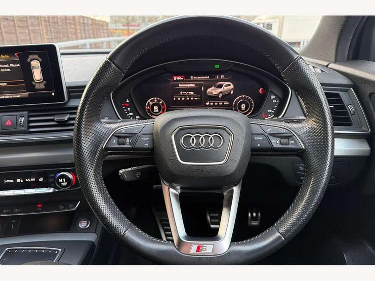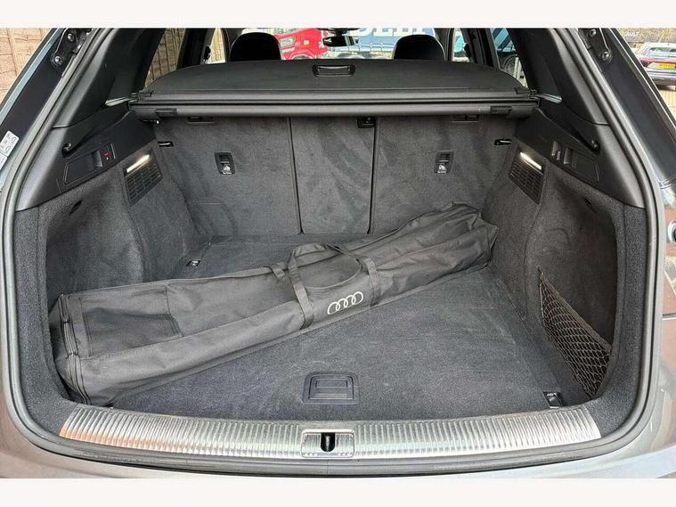 Audi connect, Audi drive select, Audi smartphone interface, Driver information centre with colour display in instrument panel, Electric power steering, Power tailgate, Remote electric boot opening/closing, SD card based MMI navigation, Service interval indicator, Voice control system, Diesel particulate filter, 2 USB ports, Audi sound system, Auxiliary input socket, CD player, DAB Digital radio, MMI radio plus with 7" colour MMI screen and MMI controller, Acoustic windscreen, Aluminium roof rails, Aluminium sill plates, Auto dimming rear view mirror, Black high gloss front air inlet in matt aluminium effect, Body colour bumpers, Body colour door mirrors, Body colour rear diffuser insert, Chrome exhaust tailpipe, Electric headlight adjustment, Electrically adjustable and heated door mirrors, Front and rear electric windows, Front fog lights, Headlight range control, Headlight washers, Honeycomb side air inlet in titan black, Light and rain sensor for auto activation of lights and windscreen wipers, Loading sill protector in stainless steel, Privacy glass with front acoustic glazing, Rear diffuser strip in matt aluminium silver, Rear spoiler, Rear wiper, S Line side skirts, Selenite silver underbody guard, Twilight grey matt radiator grille with matt aluminium horizontal chrome struts, 3 rear headrests, 3 zone climate control, 4 way electric lumbar support for driver and front passenger, 40:20:40 split folding rear bench seat, Black cloth headlining, Front centre armrest with 12v socket, Front sports seats, Front/rear floor mats, Height adjustable driver's seat, Height adjustable front head restraints, Illuminated door sills, Isofix front passenger and rear seat preparation, Jack and tool kit, Load compartment cover, Luggage compartment carpet, Matt selenite silver door inserts, Perforated leather gearknob, Reach + rake adjustable steering column, Removable luggage compartment floor, Removable net partition, Roller blind loadspace cover, Stainless steel pedals, Sunvisors with vanity mirrors, Non Smokers pack, 3 point seatbelts on all seats, ABS, Curtain airbags, Driver and passenger airbags, Driver and passenger side airbags, Electromechanical parking brake, ESC with ASR, ESP, First aid kit, Front passenger airbag deactivation, Hill descent control, Seat belt force limiter, Seatbelt warning lamp, Traction control, Tyre pressure monitor, Warning triangle, Keyless Go access/ignition system, Locking wheel bolts, Remote central locking, Thatcham category 1 alarm + immobiliser, Contrast stitching,