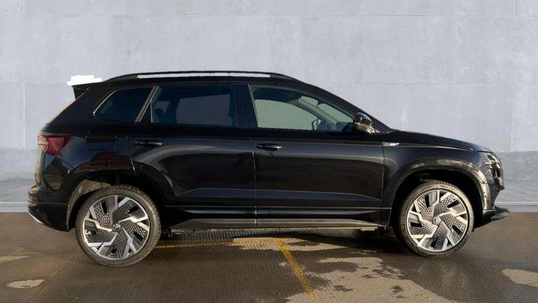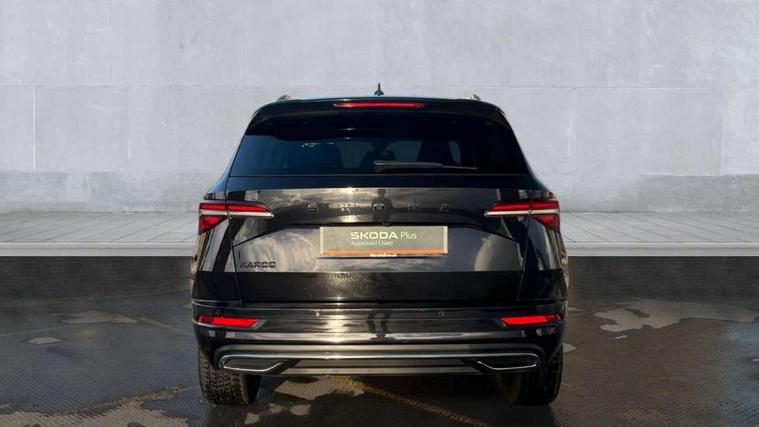 8" Digital display, Care connect, Driver fatigue sensor, Emergency services call system, Outside temperature gauge, Service interval indicator, SmartLink wireless for Apple and wired for Android, Start/stop system with regenerative braking, USB C Port x 2 in front centre console, Virtual pedal with electrically operated boot door, 8 Speakers, DAB radio with Bluetooth, USB connection, Acoustic glass, Aero front windscreen wipers with intermittent function, Auto dimming rear view mirror with light and rain sensors, Black door mirrors, Black electric window control buttons, Black radiator grille, Black roof rails, Body colour door handles, Dynamic headlight range control with cornering light function, Electric front and rear windows with child proof lock, Front door steps with SportLine logo, Heated rear windscreen, LED daytime running lights, LED rear lights with high functionality welcome effect and dynamic indicators, Light assistant (coming/leaving home/tunnel light), Panoramic sliding sunroof, Plastic scuff plates, Privacy glass, Protective door side sills in body colour, Rear diffuser, Rear side wing doors, Rear spoiler, Rear window wiper with washer system and intermittent control, Safety reflectors on front doors, Skoda lettering on tailgate in black, Sportline badge on front fender, Sportline decorative inserts with badging, Sports front and rear bumpers, 1.5 litre bottle holders in driver and front passenger door panels, 12V socket in boot, 12v socket in front centre armrest with storage compartment and rear air vents, 2 Folding hooks and nets in boot, 3 rear height adjustable headrests, 3 seat bench in 2nd row, 3 spoke leather sports multifunction steering wheel and silver stitching with gear shift paddles, 4 foldable roof handles with rear coat hooks, Black floor carpet, Black roof headlining, Chrome inner door handles, Double sided boot floor, Foldable hooks in the boot, Front head restraints, Height adjustable front three point seats belts with tensioners, Height/reach adjust steering wheel, Ice scraper, Illuminated glovebox, Illuminated luggage compartment, Isofix child seat preparation outer rear, Manual lumbar support for front seats, Pen holder, Pollen filter, Rear boot cover, Rear reading lights, Rear seats fixed folding and divided 60:40, Rubbish bin door, Safety vest holder, Single front passenger seat, Storage box in upper central dashboard closed, Sunvisors with illuminated vanity mirrors, Textile floor mats, Ticket holder, Titan black interior ceiling, Welcome animation with sportline logo, Light Pack - Karoq, Parking pack - Karoq, Automatic door unlocking in case of crash, Automatic fuel cut off in case of crash, Child locks on rear doors, Driver airbag, Electronic parking brake with auto hold function, Emergency rear braking signal, ESC including ABS, MSR, ASR, EDS, HBA, DSR, RBS, MKB and traction control, Front side airbags, Hill hold control, Knee airbags, Passenger airbag with switch-off function, Pedestrian monitor, Seatbelt reminder signalisation and pretensioner for all seats, Three point seatbelts rear, Two tone horn, Tyre pressure display, Tyre pressure monitor, Alarm with interior monitoring, back up horn and tilt sensor with safe function, Electronic engine immobiliser, Keyless entry and start/stop, Remote central locking with 2 remote folding keys, Black air vent surround, Black centre console, Satin black dashboard, Satin black door trim, 19" Vega black polished alloy wheels, Anti-theft wheel bolts protection, Matt black aero hub caps, Storage on wheel cover, Tool kit,