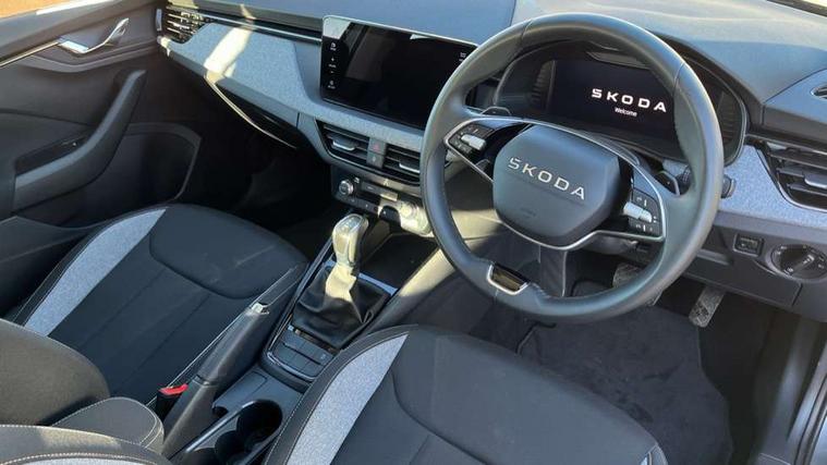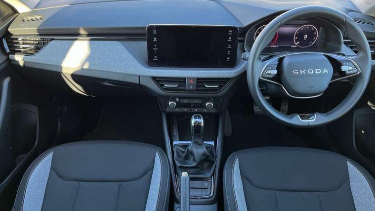 Advanced driver attention and drowsiness monitor, Bluetooth, e-Call (emergency call), Front assist system, PAS, Rear parking sensors, Rear view camera, Speed limiter, Tailgate, Traffic sign recognition, Virtual Cockpit - 10.25" digital display, Voice control system, Wireless smartlink, 4 USB C ports, 8 Speakers, 9.2" Skoda navigation display, DAB radio, Auto dimming rear view mirror, Automatic headlamp activation with Coming home and Leaving home feature, Automatic high/low beam, Body colour bumpers, Body colour door mirrors and handles, Chrome moulding around grille, Front and rear electric windows, Full LED headlights, Heated rear window, LED 3rd brake light, LED brake lights, LED daytime running lights, LED front turning lights, LED high beam, LED low beam, LED taillights, Rear LED fog light, Rear side wing doors, Rear wiper, Tinted windows, Unique dark chrome design logo on alloy wheels, 12V socket in luggage compartment, 3 seat bench in 2nd row, Black / Grey armrest stitching, Black hotstamping, Cargo elements, Chrome inner door handles, Door inserts in satin black, Driver and passenger sun visors with vanity mirror, Dual zone climate control, Front and rear roof lights, Front centre armrest, Front head restraints, Glasses storage in roof liner, Height adjustable driver seat, Height adjustable passenger seat, Ice scraper, Illuminated glove compartment, Inner circulation control with pollen filter, ISOFIX for front passenger seat, Isofix preparation for back seats, Leather gearknob and handbrake lever, Loft cloth upholstery, Luggage net under rear parcel shelf, Manual lumbar support for front seats, Net package and top tether hooks in boot space, Pearl grey ceiling, Pocket on the back of both front seats, incl. mobile phone pockets, Single front passenger seat, Skoda lettering on steering wheel, Textile floor mats, Third rear headrest, Ticket holder, Top tether for front passenger seat, Umbrella in driver's door, 3x3 point rear seatbelts, ABS, Child locks, Curtain airbags and front side airbags, Disc brakes, Driver and front passenger airbags, ESP, Hill hold control, Manual leather parking brake, One tone horn, Passenger airbag switch off function, Seatbelt reminder for driver and front passenger, Tyre pressure monitoring system, Anti theft alarm system with interior monitoring, backup horn and towing protection, Anti-theft wheel bolts, Remote central locking with 2 remote folding keys, SAFE function for remote central locking, Decord pad, door inserts Kota uni,