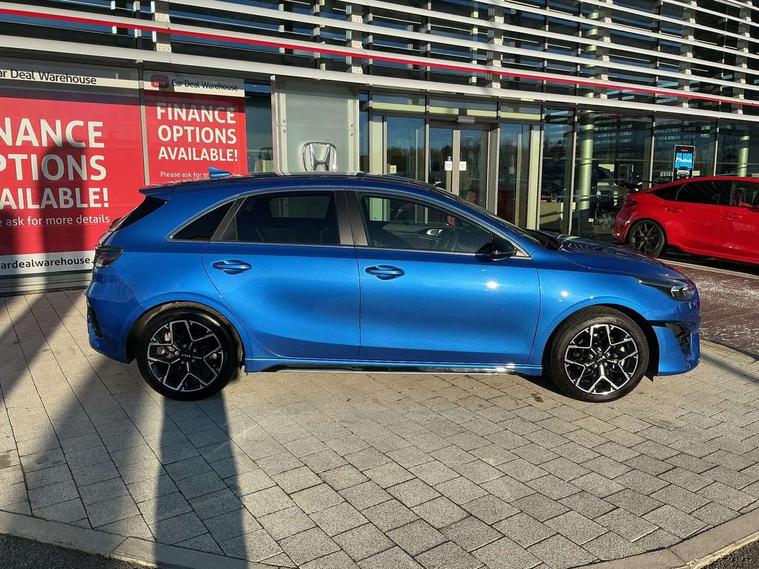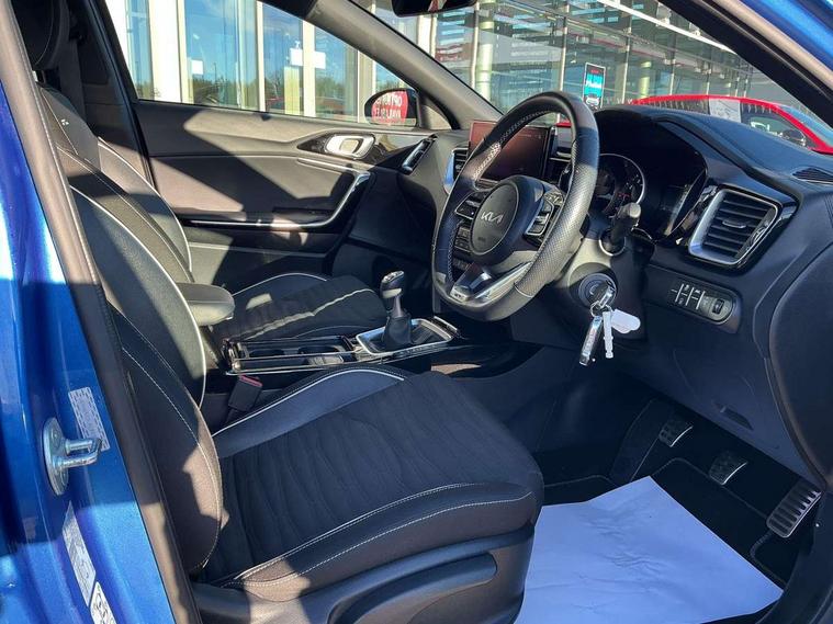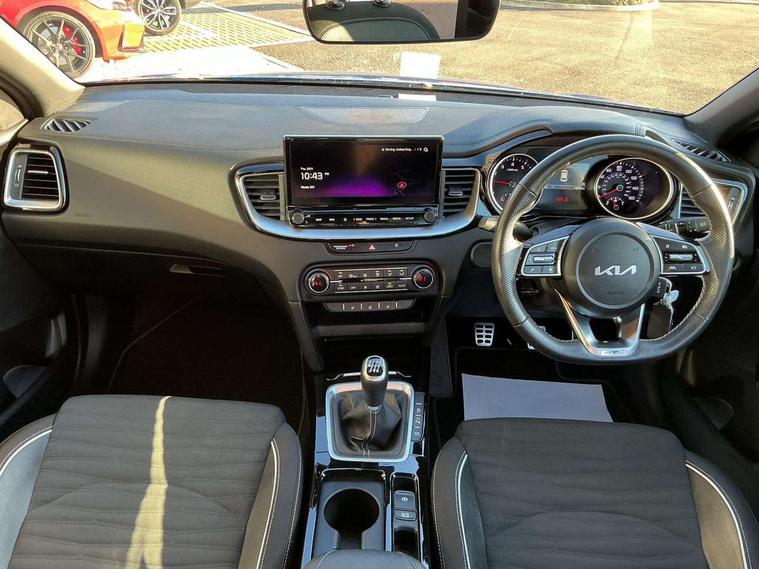 10.25" touchscreen satellite navigation, 4.2" supervision colour cluster display, Apple car play/Android Auto with voice control, Bluetooth with Voice Recognition & Music Streaming, Cruise control + speed limiter, Driver Attention Warning (DAW), Emergency call service, Emergency stop signalling system, Forward Collision-Avoidance Assist (FCA) - City/Pedestrian/Cyclist, Kia connect UVO, Lane Following Assist (LFA), Lane keep assist, Manual speed limit assist, Motor driven power steering, Rear parking sensor, Reversing camera system with dynamic guidelines (Integrated into centre fascia screen), Trip computer, Intelligent Stop and Go, 6 speaker audio system, DAB Radio with MP3, Illuminated USB ports, Steering wheel mounted controls, USB Fast Charger in Front Centre Console, USB port for connection of a media device, All-round Electric Windows with Front Auto Up & Down Function, Auto dimming rear view mirror, Automatic defog system, Automatic headlights control, Body colour bumpers, Body colour exterior door handles, Body coloured and dark chrome rear skid plate, Body coloured side sill mouldings, Dark chrome window surround, Electric adjustable/heated/folding door mirrors with LED Indicators, Heated rear window with timer, High beam assist, High gloss black and dark chrome radiator grille, High gloss black door mirrors, High Gloss Black rear spoiler, LED daytime running lights, LED front fog lights, LED Headlights, LED High-mounted Brake Light, LED honeycomb rear light, LED rear combination lights, LED rear fog light, Privacy glass (rear side windows and tailgate), Rain sensing front wipers, Rear side wing doors, Rear wash/wipe, Satin chrome dual exhaust trim, Tinted glass, Wide view drivers door mirror, Windscreen Washer Level Warning, 1 x Front 12V socket, 12V power socket in luggage compartment, 3 seat bench in 2nd row, 3 x passenger assist grips, 60/40 split folding rear seat, All-round height adjustable headrests, Aluminium pedals, Black headlining, Centre console storage box/armrest, Cloth/faux leather upholstery, Cupholders in centre console, Cupholders in rear armrest, Dash illumination dimmer switch, Door courtesy lamps, Driver & Front Passenger Sunvisors with Vanity Mirror Illumination & Ticket Holder, Driver + front passenger electric lumbar support, Driver's seat height adjuster, Dual Height Luggage Area Floor, Dual zone automatic air conditioning, Faux leather door centre trim, Front and rear door storage, Front cabin map light with sunglasses case, Front Passenger Seat Height Adjuster, Front seat back pockets, Gear shift indicator, Heated front seats, Heated steering wheel, Interior door lock/unlock function, ISOFIX Child seat top tethers and anchor fixings, Leather D-Cut steering wheel, Leather handbrake, Luggage area light, Luggage area parcel shelf, Luggage hooks, Rear centre armrest, Rear coat hooks, Satin chrome interior door handles, Single front passenger seat, Tilt/telescopic adjustable steering wheel, All round 3-point seatbelts, Anti-lock braking system (ABS), Brake assist system, Dual front side airbags, Dual horn, EBD - Electronic brakeforce distribution, Electronic parking brake, Electronic stability control (ESC) and vehicle stability management (VSM), Front passenger airbag cut-off switch, Height adjustable front seatbelts, Hill start assist control (HAC), Impact sensing auto door unlocking, Rear door child safety locks, Seatbelt reminder warning, Twin curtain airbags, Twin front airbags, Tyre pressure monitoring system, Alarm system, Engine Immobiliser & Deadlocks, Locking wheel nuts, Remote central door locking with fold away key, Speed sensitive auto door locking, Black high gloss front console garnish & door trim, Satin Chrome Fascia Trim, 17" GT-Line alloy wheels, Tyre mobility kit,