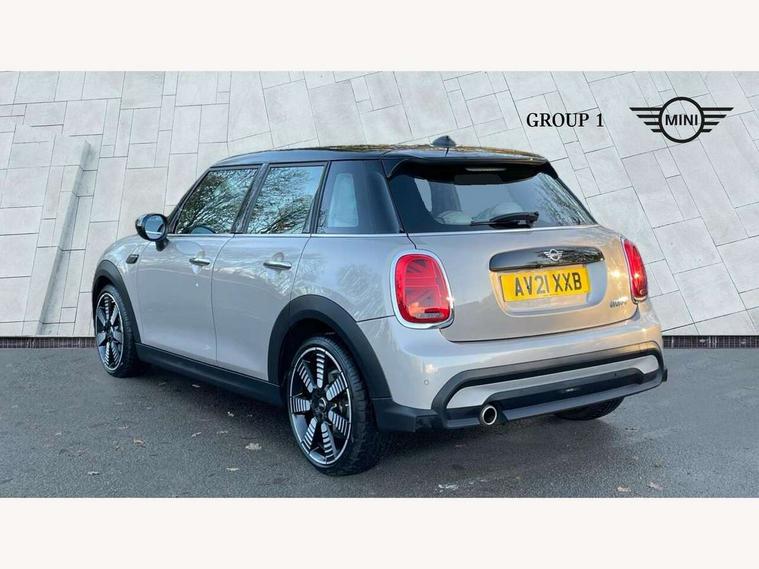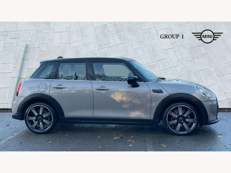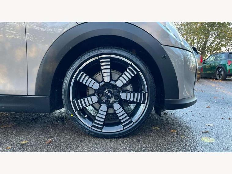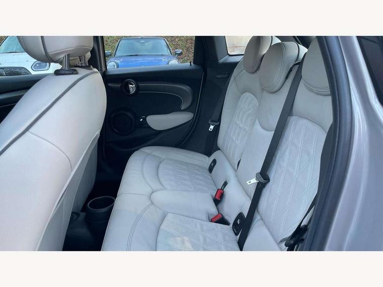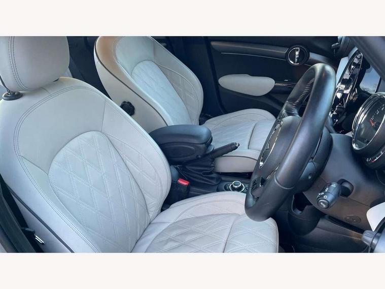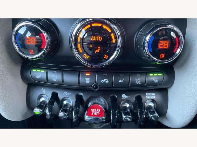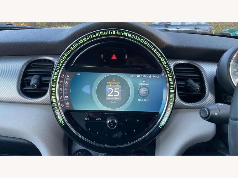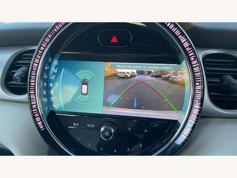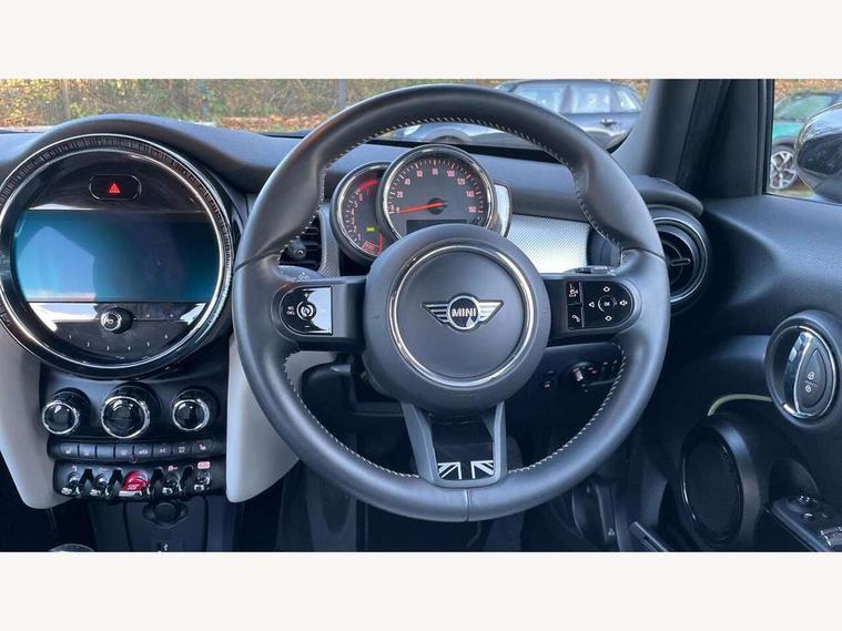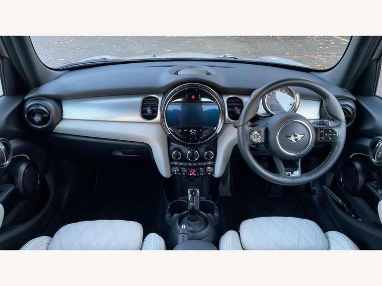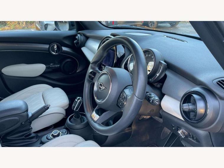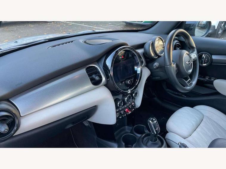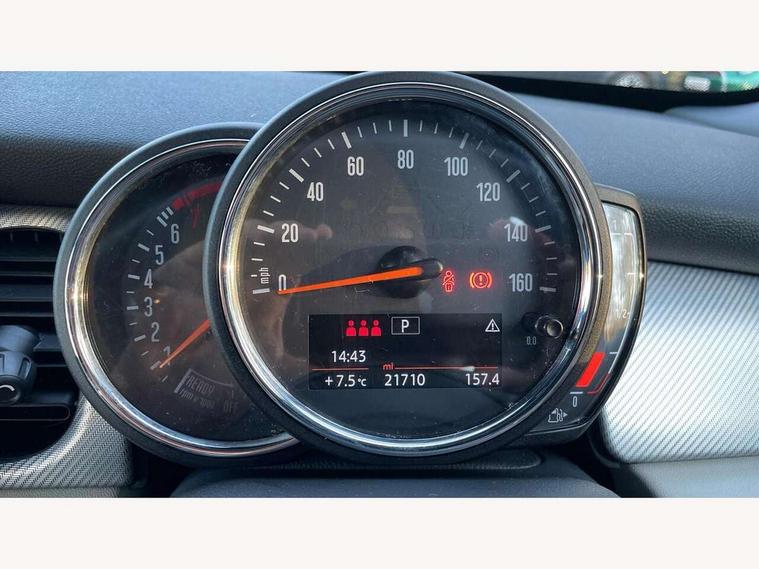 Automatic start/stop function with brake energy recuperation, Compatible mobile phone bluetooth with audio streaming, Cruise control with brake assist, Electro-mechanical speed dependant steering assistance, Flexible car sharing preparation, Instrument cluster, MINI Driving Modes - centre toggle switch to control driving setting (sport, mid and green), Mini E-call, MINI TeleServices, On board computer, Rear park distance control, Service interval indicator, Double Vanos system, Fully variable valve control, Gear change indicator display, High precision injection, Performance Control, Steptronic transmission with double clutch, 6 speakers in front door trims and underneath front seats, 8.8" touchscreen with LED ring, FM tuner and DAB digital radio, Automatic headlight activation switch, Body colour fuel filler cap, Chrome line exterior - radiator grille bars, tailgate handle, lower front grille grating and rear central fog-light, Dynamic brake lights, Electric front+rear windows, Heated rear window, Heated windscreen washer jets, LED headlight with closed ring and daytime driving lights, Metal door sill strips with MINI imprint, Model logo Cooper on right of tailgate, Rain sensor window wipers, Rear fog lights, Rear LED lights with union jack design, Rear window wiper, Side scuttle panel with integrated indicator, Sun/heat protection glass, White indicator lenses, 12V Accessory socket in centre console, 4 lashing eyes in luggage compartment, 60/40 split folding rear seat, Anthracite headliner including grab handles and clothes hooks, Carbon black colour line - Knee roll and door armrest, Chrome interior highlights, Chrome line interior - air vents, gear lever base, door handles and speakers in doors, Cupholders, Front and rear head restraints, Front and rear isofix with front passenger airbag deactivation, Glove compartment, Height and length steering column adjustment, Interior lighting with 12 different colours across the dashboard, underneath door bezel with illuminated laser-engraved design on central display, Leatherette gearshift lever and handbrake gaiters, LED reading lights, vanity mirror lights, front foot well light and spotlight on front seats, Manual air conditioning, Mechanical seat adjustment - forward/back & backrest for front seats and driver seat height adjust, MINI yours badge on exterior pillar, Multifunction steering wheel, Storage compartments in doors, Sunvisors with vanity mirrors, Velour floor mats, Walknappa leather steering wheel with grey seam and MINI Yours badge on Piano Black lower steering wheel spoke, 3 point seatbelts on all five seats, 6 Airbags - front, side, head and seat belt tensioners, Anti-lock braking system (ABS), DSC - Dynamic Stability Control, Front and rear disc brakes, Hill start assist, Single tone fanfare horn, Tyre pressure monitoring system, Alarm system with tilt sensor, monitoring doors, bonnet interior and tailgate, Electronic vehicle immobiliser, Start/stop toggle with keyless go, Tool kit,