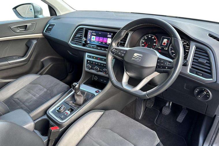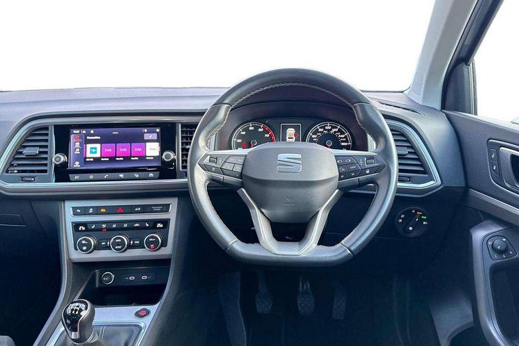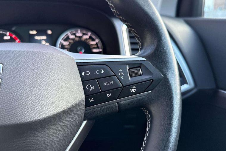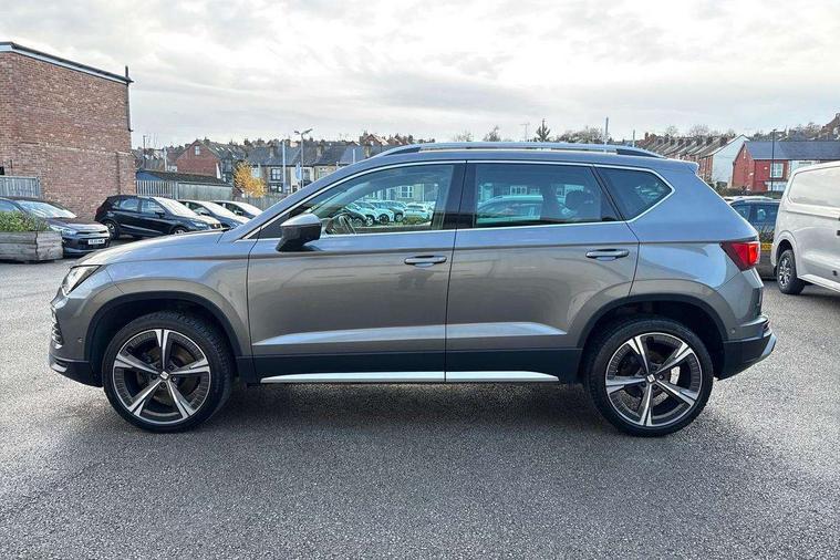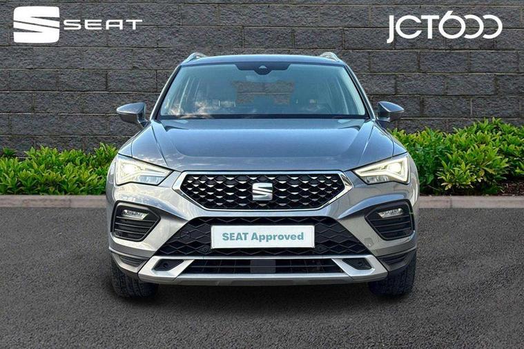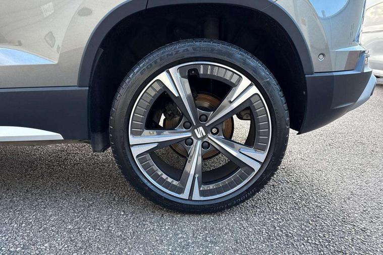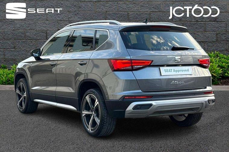 8" Digital cockpit, Colour multi-function on board computer display, E-call, Electric tailgate closing, Outside temperature gauge, Progressive power assisted steering, Rear view camera, SEAT drive profile with driving experience button - Normal, Sport, Eco and Individual mode, steering and throttle response, Self parking functionality (includes front and rear parking sensors), Start/stop system, Tailgate, Trip computer, Wired Full Link, Wireless phone charger, Steering wheel mounted audio/phone controls, Black simulated exhaust pipes, Black wheel arch surrounds, Body colour bumpers, Chrome front grille frame, Chrome roof rails, Chrome side window trim, Dark tinted rear windows, Daytime running lights, Door mirrors with welcome light silhouette, Dynamic headlight range control with self adjusting whilst driving, Electric adjustable/heated/folding door mirrors, Front and rear electric windows, Front grille hot stamping, Full LED headlamps with lens and LED front fog lamps with cornering function, Heated windscreen, Illuminated aluminium front door sill, LED rear tail lights with dynamic indicators, Rear fog lights, Rear side wing doors, Rear wash/wipe, Reflex silver side mouldings, Roof spoiler, Third brake light, Variable front intermittent wipers, 12V socket in front, 3 seat bench in 2nd row, 60/40 split folding rear seat, Drawer under right front seat, Dual zone climate control, Front and rear head restraints, Front centre armrest, Front seat back storage pockets, Height adjustable driver and passenger seat with lumbar adjustment, ISOFIX points in outer rear seats with top tether anchorage points, Leather steering wheel and gear knob, Microsuede upholstery with front comfort seats, Rear armrest and easy back seat release mechanism from boot, Single front passenger seat, Convenience pack - Ateca, Interior lighting pack - Ateca, Media system plus pack - Ateca, Safe and driving pack - Ateca, 3x3 point rear seatbelts, ABS, Traction control system (TCS), Electronic stability control (ESC) and Electronic differential lock system (XDS), Airbags - Driver and front passenger airbag with deactivation, front side, two curtain and driver's knee airbags, Electric parking brake with auto hold function, Front and rear seatbelt reminder, Hill hold control, Manual rear child locks, Single tone horn, Tiredness recognition system, Traction control, Tyre pressure monitoring system, Alarm, Keyless entry, Locking wheel bolts, Remote central locking, Chrome interior detailing, 19" Exclusive 36/5 Machined Aerowheels in Nuclear Grey,