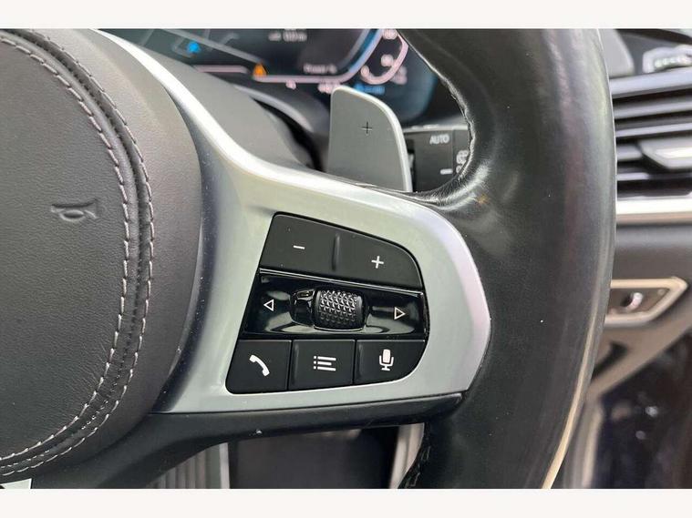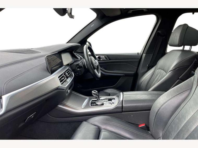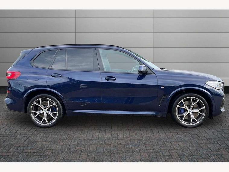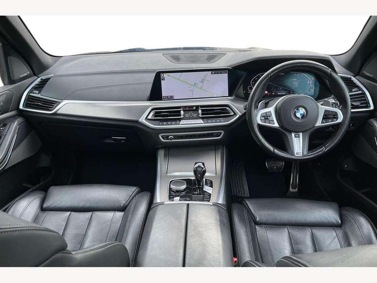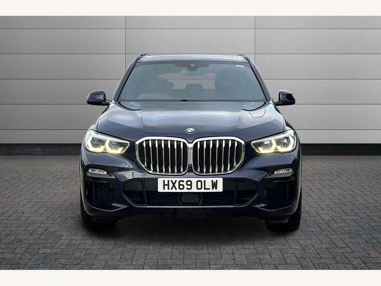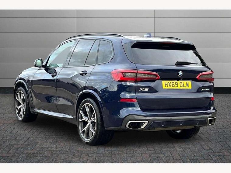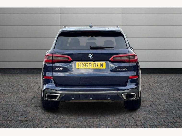 20GB hard disc drive (HDD) memory, Active guard plus, Attentiveness assist, Automatic tailgate with top hinged section open and manual bottom hinged section, BMW ConnectedDrive online services, BMW digital live cockpit professional - 12.3" digital instrument panel and 12.3" CID, with touch/voice command, BMW legal emergency call, BMW Teleservices, Brake force display, Brake pad wear indicator warning light, eDrive button to select between AUTO eDrive, MAX eDrive and SAVE Battery settings, Enhanced bluetooth hands free facility with Telephony wireless charging, Front/rear park distance control, Lights on warning, Oil sensor for level and grade, On board computer inc. average speed, fuel consumption, liquid crystal Info display, journey computer, outside temperature display, personal profile, Service interval indicator, Speed limit info display, Wi-Fi hotspot, 5 meters in length charger cable(Mode 2 cable), Adaptive 2-axle air suspension, Double VANOS, Double wishbone front axle, Drive performance control with ECO PRO comfort + sport mode, Eight speed steptronic sport automatic transmission and gearshift paddles on the steering wheel, High precision injection, Petrol Particulate Filter, Safety battery terminal clamp, Twin scroll turbocharger with Valvetronic, DAB Tuner enables digital radio reception, Favourite buttons, Gesture control for infotainment system, USB connection, USB type A 1.5A in cupholder, USB Type C 3A in centre armrest, Active Air Stream kidney grille with high-gloss chrome, Adaptive air flap control bar in high-gloss black, Automatically dimming rear view mirror, Body colour bumpers, Body colour door handles, Body colour mirror housing, Dynamic brake lights with LED technology, Exhaust tailpipes - single, left and right with Chrome finisher, Follow me home headlight function, Front and rear electric windows with open and close fingertip control, anti trap facility and comfort closing, Heated windscreen washer jets, High gloss black outer and central air intakes on front bumper with pearlescent chrome finish, High gloss black Side elements, LED daytime running lights, LED fog lights, LED rear lights, Left charging flap on the front side, M aerodynamic body styling, M designation on left and right front side panels, Pearlescent chrome front grille bars, Rain sensor with automatic headlight activation and windscreen wiper control, Satin aluminium side window graphic, Third brake light in rear spoiler, Variable intermittent rear wash/wipe, Welcome light carpet, X5 on left tailgate, xDrive designation on right tailgate, 12V - Power sockets with 2x centre console and 1x luggage compartment, 40:20:40 split folding rear seats, Ambient interior lighting with 6 pre-designed selectable lights including dynamic function, Centre and rear interior light, Child seat ISOFIX attachment with rear outer seats includes top tether, Compartment in front of cupholder, Electric front seat adjustment with driver memory, Electrical steering column with adjustable height and length with activation and control on the steering column, Foldable rear centre armrest with 2 cupholders and storage compartment, Front and rear cupholders x 2, Front and rear door pockets, Front and rear door sill finishers with illuminated BMW designation, Front and rear door sill inlays with illuminated BMW M designation, Front and rear side armrest integrated into door trim, Front footwell lights, Front reading lights, Light inside glove compartment, Lockable glove compartment, Luggage compartment floor panel with integral storage tray, Luggage compartment lighting, M leather steering wheel, M specific key, M specific pedals, M specific steering wheel, M specific velour floor mats, Make-up mirror lights, Multifunction controls for leather steering wheel, Multifunctional hooks, Seat back with flap pocket, Securing rings in luggage compartment, Storage bins on all doors, Storage tray and compartment with cover in centre console, Sunvisors with illuminated vanity mirrors, Toolkit located in luggage compartment, Connected Package Professional - X5 xDrive45e, Expanded exterior mirror pack - X5/X5 M, Non-smokers pack - X5, Acoustic protection for pedestrians, Airbags - driver/front passenger, rear and side, first and second row seats head airbags, front passenger seat airbag deactivation + knee airbag, Anti-lock braking system (ABS), Automatic Stability Control (ASC), Brake drying, Brake energy regeneration, Brake fade compensation, Braking pre-tensioning, CBC - (Cornering brake control), Crash sensor activating central locking release, hazard warning lights, fuel cut off, interior lighting + activation of safety battery terminal clamp, Deformation zones - front and rear with door reinforcements and bumpers up to 2.5 mph, DSC - Dynamic Stability Control, Dynamic brake control, Dynamic Traction Control - DTC, Electromechanical parking brake with automatic drive away release and auto hold function, Electronic brake force distribution, Front and rear seatbelts with seatbelt stopper, seatbelt tensioner for front and outer rear seats and belt force limiter, Front head restraints with anti-whiplash, Height adjustable front seatbelts, Hill start assistant, Integrated brake system, M Sport braking system in blue high gloss + blue painted brake calipers with M designation, Mechanical child proof lock on rear doors, Passive protection for pedestrians, Seat occupancy detection for driver and passenger side, Side impact protection, Three 3 point inertia reel seatbelts, Two tone horn, Tyre pressure monitoring system, Ventilated front and rear disc brakes, Warning triangle and first aid kit, Closing system with central locking, Driver and front passenger door centre lock switch, Locking wheel bolts, Thatcham 1 alarm system with remote control and engine immobiliser, Sensatec instrument panel, Start/stop toggle diamond shaped trim finisher in pearl chrome,
