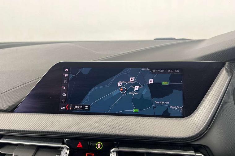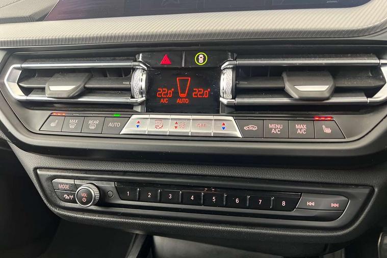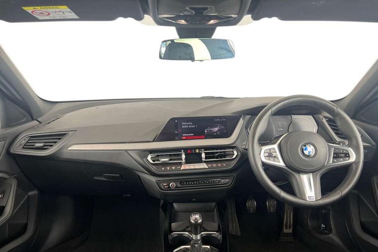 Active guard plus, Attentiveness assist, BMW Online services, BMW Teleservices, Check Control warning system for monitoring of lights and door/luggage compartment open warning, Connected eDrive Services, Cruise control with brake assist, Eco pro mode, Electric power steering, Front/rear Parking distance control, Integrated owners handbook, On board computer, Optimum shift indicator, Personal Profile, Pull away assistant, Speed limiter, Anti roll bar front and rear, Balancer shaft, Double VANOS, Drive Performance Control, Electronic differential lock, M sports suspension + self levelling, Petrol Particulate Filter, VALVETRONIC engine management, Bluetooth audio streaming, DAB Digital radio, Auto dimming rear view mirror, Body colour door handles, Body colour mirror caps, Chrome 'M' logo side designation, Chrome exhaust tailpipe in single, round (Exhaust tailpipe, stainless steel - single, round), Chrome kidney grille frame with Satin Aluminium struts, Direction indicator side lights in exterior mirrors, Electric folding and anti dazzle exterior mirrors, Fading support, Follow me home headlights, Front and rear electric windows with open and close fingertip control, anti trap facility and comfort closing, Front door sill finishers in black plastic with BMW designation, Green tinted heat protection glazing, Headlight beam throw control, High gloss shadow line exterior trim, High level third brake light, LED daytime running lights, LED front fog lights, Lightweight engineering, Matt black air guide grilles, Matt black roof moulding, B pillar finisher and wheel arch trim, Matt black window frame, Model designation on right side of tailgate, Nearside reverse light in rear light cluster, Rain sensor including auto headlights activation, Rear fog lights, Rear window wiper, Shark fin antenna, Visible VIN plate, Welcome lighting, Windscreen wipers with integrated washing jets, 12V power socket in centre console, 2 cupholders in front centre console, 3 rear seat head restraints, 3 Spoke M sports leather steering wheel, Anthracite headlining, Anthracite Velour floor mats, Bag hook in luggage compartment, Child seat ISOFIX attachment for two outer rear seats and front passenger seat with anchorage points, Conditioned based service, Dakota leather upholstery with perforation and contrast stitching, Driver and front passenger seat heating, Driver side folding compartment in instrument panel, Folding rear clothes hook, Folding rear seats, Four grab handles integrated in roof lining, Front and rear door pockets, Front and rear side armrest integrated into door trim, Front Armrest foldable with integrated storage compartment, Front sports seats with electric side bolster adjustment, Gearshift lever with M designation, Glove compartment, Height adjustable front head restraints, Manual adjust steering wheel, Multi-function controls for steering wheel, Rear seat backrest with manual 60:40 split folding with 3 top tether clips integrated on rear of seat panels, Storage compartment in centre console, Sun visors with vanity mirrors and insert tab, Two extra lashing eyes in luggage compartment, Two zone automatic air conditioning, Extended Lighting pack - 1 Series, Extended storage pack - 1 Series, Interior lights pack - 1 Series, Luggage compartment pack - 1 Series, M Sport exterior styling aerodynamics pack - 1 Series, 2 tone horn, 3 point seatbelts on all seats, front pyrotechnic belt tensioners, stopper and belt force limiters, rear coded belt buckles, Airbags - Front driver and passenger, front and rear head, front side, curtain head protection, Anti lock braking system (ABS) with brake assist, BMW emergency call, Brake drying, Braking readiness, Crash sensor activating central locking release, hazard warning lights, fuel cut off, interior lighting + activation of safety battery terminal clamp, Driver and front passenger seat belt security check, Dynamic stability control + (DSC+), Dynamic Traction Control - DTC, Electrically operated hand brake, Front passenger manual airbag deactivation, Rear child proof door locks, Seatbelt warning, Side impact protection, Tyre pressure monitoring system, Warning triangle and first aid kit, Automatic drive away locking facility, Central locking switch for all doors, fuel filler cap and luggage compartment, Deadlocking function system to all doors, Locking wheel bolts, Remote control with integrated key with High-gloss Black inlay and M designation and 1 button for open/ close lock, window, open luggage compartment, Start/stop button with comfort go keyless engine start and auto start stop deactivation button, Thatcham Cat.1 alarm and immobiliser, Contrast stitching on instrument panel, Reduced rolling resistance tyres,