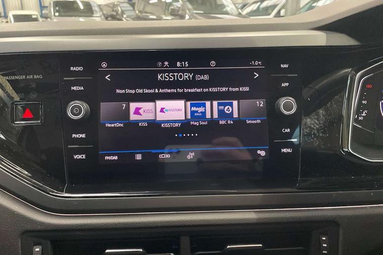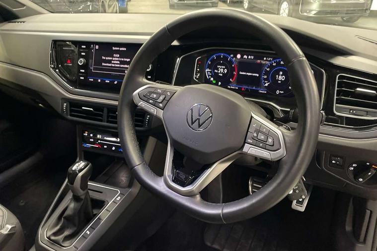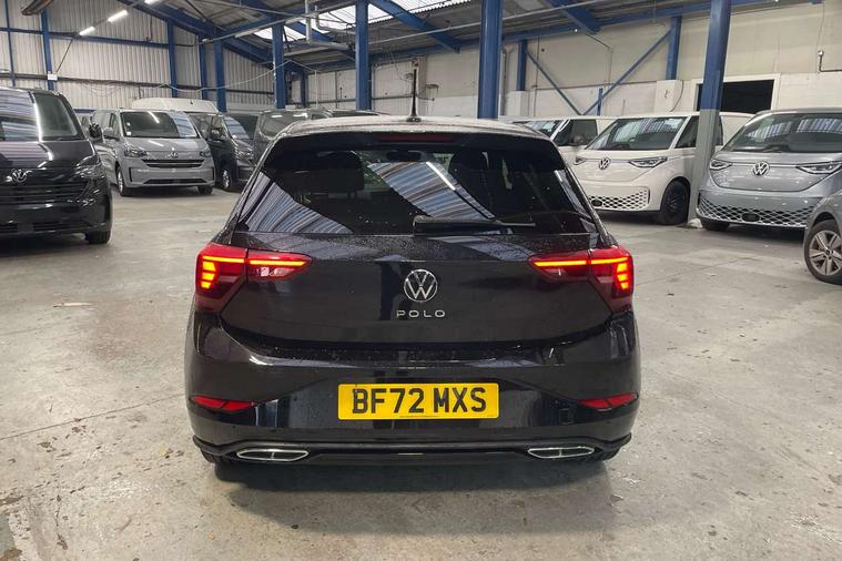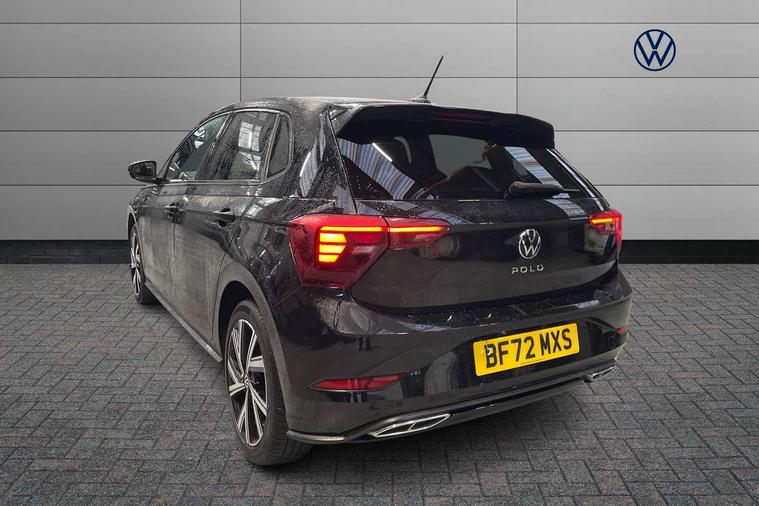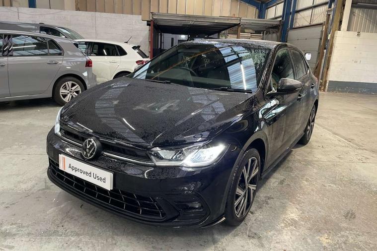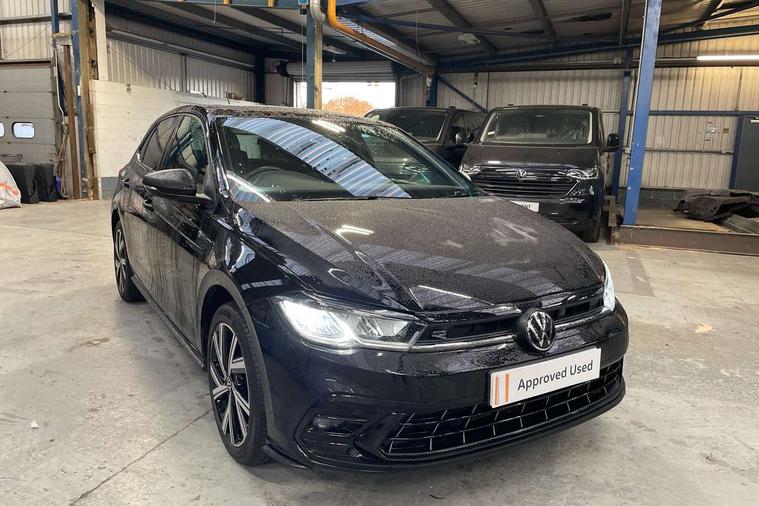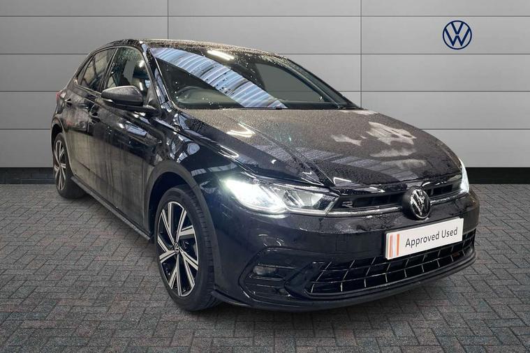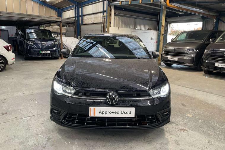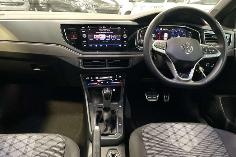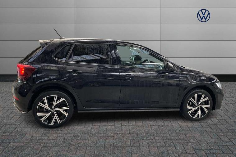 Adaptive cruise control with follow-to-stop and speed limiter, Bluetooth mobile phone interface, Digital Cockpit Pro with 10.25" Display, Driver alert system, Dynamic road sign display, Emergency call service, Power assisted speed sensitive steering, Preparation for We connect and We connect plus, Speedo and rev counter, electronic odometer, trip, service interval display and fuel gauge, Standard rear axle, Travel Assist - Lane keeping system and traffic jam assist, Travel assist including emergency assist, Trip computer, Warning signal and warning light for front and rear seatbelts not fastened, Washer fluid level indicator, Wireless app connect, Front wheel drive, Rear shock absorpion, Start-stop system with battery regeneration (recuperation - energy recovery during braking), DAB Digital radio, Diversity antenna for FM reception, Front and rear 6 speakers, Body colour bumpers, Body colour door handles, Body colour door mirrors, Electric front windows, Front scuff plates with R-Line logo, Heat insulating darkened glass in side and rear windows, Heat insulating glass windscreen, Power folding adjustable/heated exterior mirrors and front passenger exterior mirror lowering function, Rear electric windows, Rear fog light, Rear side wing doors, Rear tinted glass from B-pillar backwards approx 65% tinted, Rear windscreen washer and wiper with interval delay, Third brake light, 12V power socket in centre console, 2 USB-C ports in the front, 2 USB-C charging sockets on the center console in the rear, 3 rear head restraints, 60/40 split folding rear seat and rear seat bench not split, Air care climatronic air conditoning system with active combination filter and 2-zone temperature control, Black roof lining, Ceramique headliner, Chrome plated radiator grille inserts, air vent surrounds and light switch surrounds, Door and side trim panel, Driver and front passenger seat height adjustment, Driver/passenger sunvisors with illuminated vanity mirrors, Front + rear carpet mats, Front centre armrest, Front footwell illumination, Front seat backrest storage pockets, Front sports comfort seats, Handbrake lever handle in leather, Isofix child seat preparation easy-fit (for two outer rear seats, and front passenger seat) compatible with I-size, Karoso artvelours cloth upholstery, Leather trimmed gear knob, LED interior light with switch off delay and dimmer, 2 reading lights front and rear, Luggage compartment cover, Luggage compartment floor, Luggage compartment lighting, Lumbar adjustment for front seats, Single front passenger seat, Stainless steel pedals, Standard pedal cluster, Three spoke leather wrapped multifunction steering wheel with shifting paddles, Light and sight pack - Polo R-Line/Black Edition, 3 point height adj front seatbelts + pretensioners, 3x3 point rear seatbelts, ABS, Driver and front passenger airbag with front passenger airbag deactivation, Drivers and front passengers safety optimised head restraints, ESC (Electronic stability control) + EDL (Electronic Differntial lock) and ASR (Traction control), Extended and predictive pedestrian/ cyclist protection, Front curtain and side airbags with center airbag, Front/rear disc brakes, Hill hold control, Manual child lock in rear doors, Single tone horn, Tyre pressure loss indicator, Alarm with interior protection, Anti-theft alarm system with interior monitoring, backup horn, and towing protection, Anti-theft wheel bolts, Electronic engine immobiliser, Chrome applications on rotary light, mirror adjustment, window regulator switches, outlet with frame in black, Dark grey anodised matt decorative inserts in dash and front door panels, Low rolling resistance tyres,