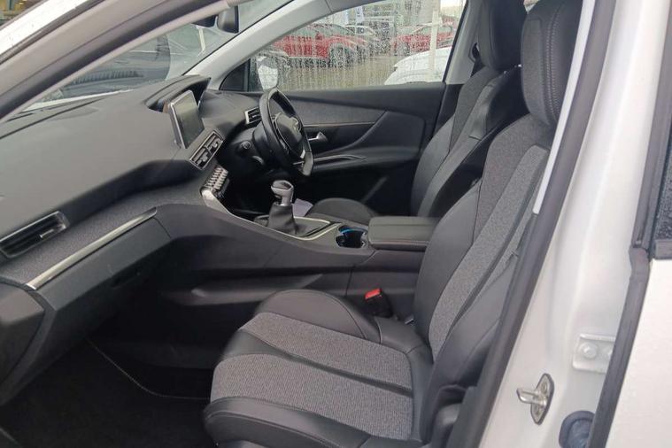 'Lights On' Reminder warning buzzer, 3D connected navigation + voice control + Peugeot connect SOS and assistance, Bluetooth telephone facility, Digital clock, Exterior temperature indicator with ice warning, Front and rear parking sensors, Lane departure warning system, Mirror screen with mirror link, apple carplay and android auto, Multi function trip computer, PEUGEOT i-Cockpit with 8.0" capacitive touchscreen in centre console, PEUGEOT i-Cockpit with compact sports steering wheel, PEUGEOT i-Cockpit with configurable 12.3" Head-up digital instrument panel, Speed limit recognition and recommendation, Dynamic stability control and electronic anti-skid system, DAB Digital radio, Steering wheel mounted controls, USB socket, 2 X Rear number plate lights, Aluminium longitudinal roof bars, Automatic hazard light activation upon heavy brake application, Automatic triggered rear windscreen wiper in reverse gear, Black and chrome front wing trim, Black rubber side window trim, Body colour door handles, Body colour door mirror shells, Body colour rear spoiler with stainless steel edging trim, Body coloured bumpers, Body protectors (bottom of front and rear bumpers + wheel arches + protection at bottom of doors) in black, Chrome front fog light trim, Chrome rear bumper facia, Dark tinted rear side windows + tailgate window, Door mirror mounted LED courtesy approach lights, Electric operated/heated door mirrors, Front windscreen wiper with magic wash cleaning system, Gloss black B and C pillar and aerodynamic deflector trim, Gloss black rear cluster connecting strip, Gloss black windscreen surround, Headlights left on audible warning, Heated rear windscreen with integrated antenna, LED daytime running lights, LED side indicator lights integrated into door mirrors, Lion grey front bumper scuff plate, One touch electric front/rear windows with pinch protection, Power folding door mirrors with blind spot detection indicator and auto dipping function in reverse gear, Radiator grille in chrome edge trim and facets, Rear LED Peugeot signature 'Claw Effect' lights, Stainless steel roof arches, 1/3 to 2/3 split folding rear seats, 12V Sockets in dashboard, rear cabin and load area, 2 cupholders in front centre console, 2 rear reading spotlights, 2x Rear coat hooks, 3x Isofix child seat fittings in the front passenger and outer rear seats, 4 Grab handles retractable and damped, Blue ambient lighting for connecting zone, Blue ambient lighting to front door panels, central storage and cupholders, Blue ambient lighting to head up instrument panel, Centre front armrest with butterfly wing opening and illuminated storage compartment, Driver and front passenger seat height adjustment, Driver seat manual adjustment, Dual zone automatic climate control, Electric power steering with reach and rake adjustable steering column, Fixing rings 4 in load compartment, Flocked glovebox interior, Fold flat front passenger seat with picnic table, Footwell illumination, Front interior light with 2 reading spotlights and rear interior light with timer, Front passenger seat manual adjustments, Front seat back map pockets, Gear shift indicator, Illuminated glovebox, Illuminated vanity mirrors, Leather steering wheel with detail stitch, Rear armrest with ski flap and two cup holders, Rear centre console ventilation system, Reclining front seats, Roof LED interior lighting, Roof lining - Salin light grey, Satin chrome dashboard trim, Satin chrome digital instrument panel and touchscreen trim, Satin chrome front door panel recess trim, Satin chrome gear lever, Satin chrome interior door handles, Satin chrome scorpion's tail and toggle switch trim, Seatbelt not fastened audible and visual alert for front seats, Seatbelt unfastened on the move audible and visual alert for front and rear seats, Two position boot floor, Safety pack - 3008, Safety Plus Pack - 3008, Visibility pack - 3008, 3x Rear three-point retractable seatbelts with force limiters in the outer rear seats, Adaptive driver and front passenger airbags with passenger airbag deactivation function, Anti lock braking system + Electronic brake force distribution, Driver and front passenger side airbags, Electric child locking functionality on rear windows and doors, Electric parking brake, Front and rear curtain airbags, Front optimised safety headrests and 3 x rear retractable headrests with height adjustable, Front three point retractable seatbelts with pre tensioners and force limiters, Front ventilated disc brakes and rear disc brakes, Height adjustable front seatbelts, Hill start assist, Tyre pressure sensor, Anti theft alarm, Automatic door locking when moving off, Central locking button on dash, Deadlocks, Electronic immobiliser, Locking wheel bolts, Remote control central locking with two plip keys, Brumeo fabric Dashboard, front and rear door panel finish,