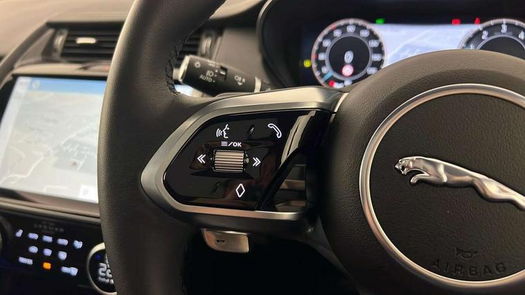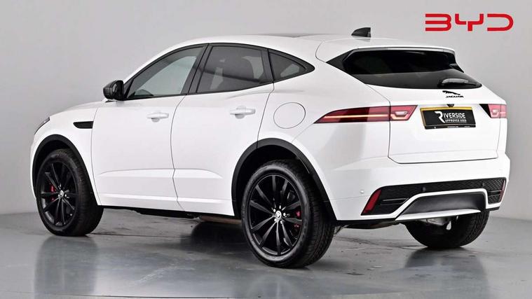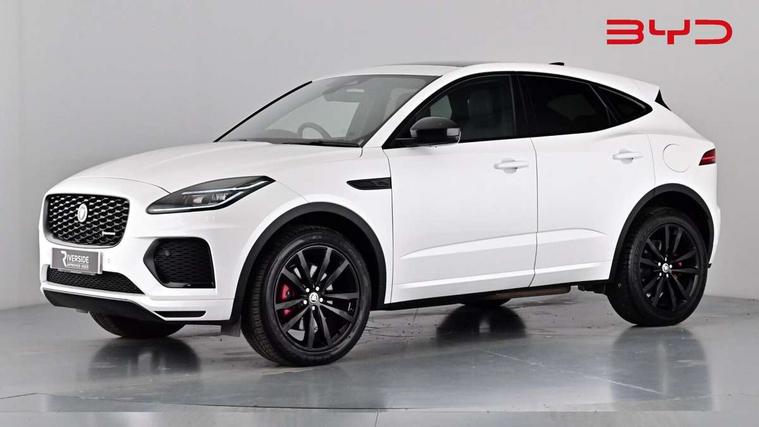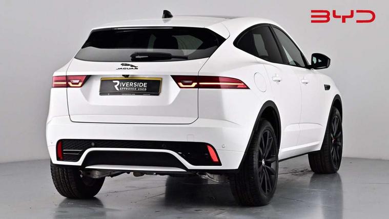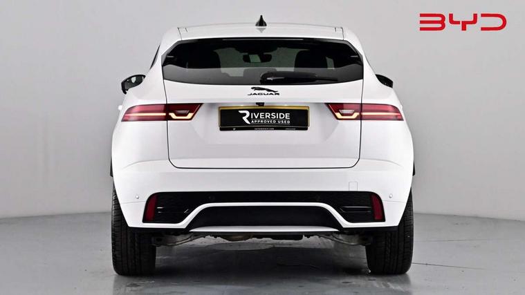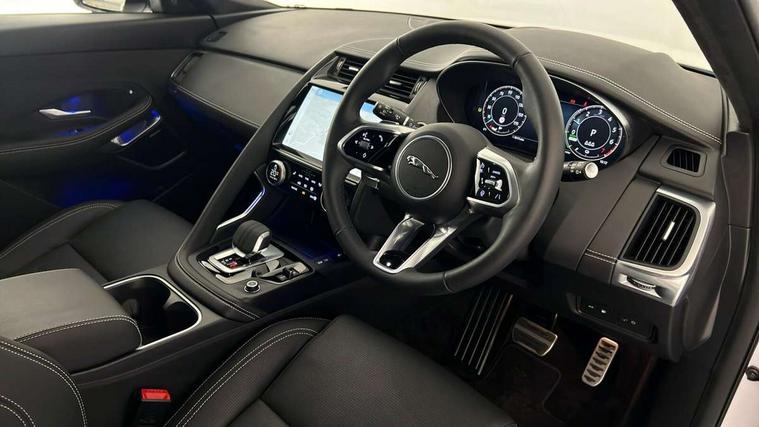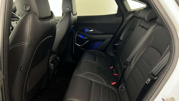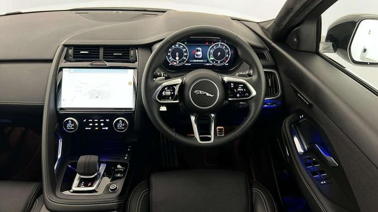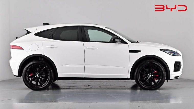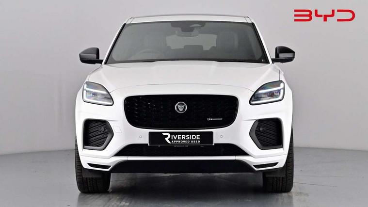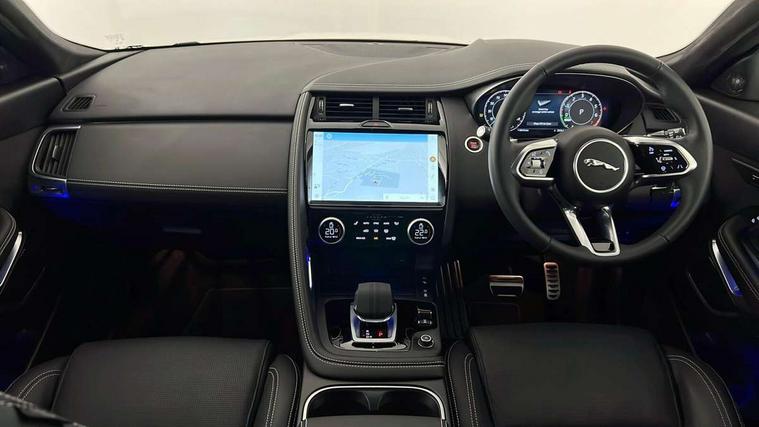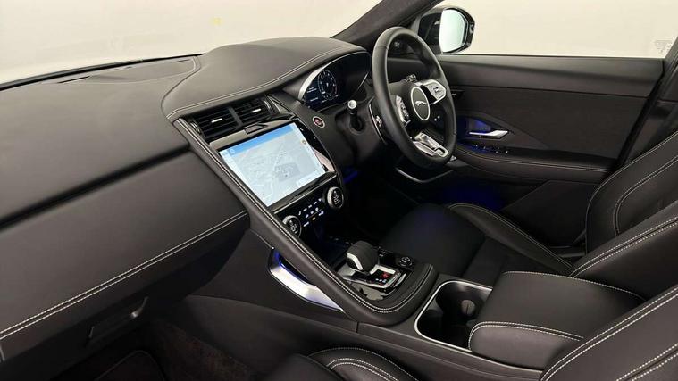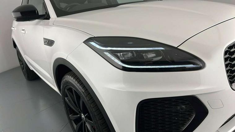 11.4" touchscreen with central ICP, Adaptive cruise control, Android Auto, Apple car play, Blind spot assist, Driver condition monitor, Eco driving style assistant, Electric power assisted steering, Emergency services call system, Front and rear parking aid, InControl remote, Interactive driver display, Jaguar drive control with adaptive surface response, Jaguar Toggle sport shift selector, Lane keep assist, Outside temperature gauge, Pivi pro connected infotainment system with smart settings and navigation pro, Push button start, Rear collision monitor, Rear traffic monitor, Speed proportional steering, Traffic sign recognition with adaptive speed limiter, Trip computer, Voice control system, Wireless device charging, 7 kW onboard charger, Configurable dynamics, Electric rear axle drive, Gasoline particulate filter, Home charging cable Mode 2, Large fuel tank, Passive suspension, Public charging cable Mode 3, Bluetooth connectivity including audio streaming, DAB digital audio broadcast, Dynamic volume control, 3 flash lane change indicators, Approach Illumination, Automatic headlights, Body colour door handles, Body colour front and rear lower bumper main moulding and lower side cladding, Body colour upper spoiler, Body coloured side sills, Centre high-mounted stop light, Dark satin grille tips, Electric front/rear windows with one touch/auto up/down, Electric heated/power fold memory door mirrors with approach lights and auto dimming driver side, Fixed panoramic glass sunroof, Heated washer jets, Heated windscreen, Jaguar script and leaper, Leaper for duo leather and embossed leaper for windsor leather, LED tail lights, LED third brake light, Metal load space scuff plates, Narvik black antenna pod and side pillar finisher, R Dynamic badge, R Dynamic body colour bumpers, Rain sensor windscreen wipers, Rear fog lights, Rear side wing doors, Rear wash wiper, Satin black grained front outer grille, low grill mesh and low bumper valence, side fender vent mesh and finisher, rear tow eye cover and grille mesh, Twin exhaust tailpipe, Variable front intermittent wipers, 16 way heated and cooled, electric adj driver memory front seats with 2 way manual headrests and heated rear seats with centre armrest, 3 rear head restraints, 3 seat bench in 2nd row, 40:20:40 rear seat fold, Bright metal pedals, Carpet mats, Centre console with armrest, Ebony suede cloth headlining, Enhanced ambient lighting, Hooks loadspace, ISOFIX on outer rear seats, Leather steering wheel, Loadspace cover, Loadspace light, Loadspace storage net, Luggage tie-downs in loadspace, Manual height/reach adjust steering wheel, Multifunction steering wheel, Overhead lighting console, Passive front head restraints, Power sockets, Premium cabin lighting, Rear air vents, Rear bench seats, Satin chrome gearshift paddles, Single front passenger seat, Sunvisors with illuminated vanity mirrors, Twin front cupholders, Two zone climate control, Windsor leather upholstery + sport seats, Online pack with data plan - E-Pace, 3x3 point rear seatbelts, ABS, All surface progress control (ASPC), Child locks on rear doors, Customer configurable autolock, DSC - Dynamic Stability Control, Electronic brake force distribution, Electronic parking brake, Emergency brake assist, Emergency braking, Front airbags with passenger seat occupant detector, Front and rear curtain airbags, Front and rear seatbelt reminder, Front passenger airbag deactivation, Front seatbelt pretensioners, Front side airbags, Height adjustable front seatbelts, Hill start assist, Low friction launch, Power child locks, Torque vectoring brake, Tyre pressure monitoring system, Intrusion sensor and alarm, Keyless entry, Locking wheel nuts, Remote central locking,