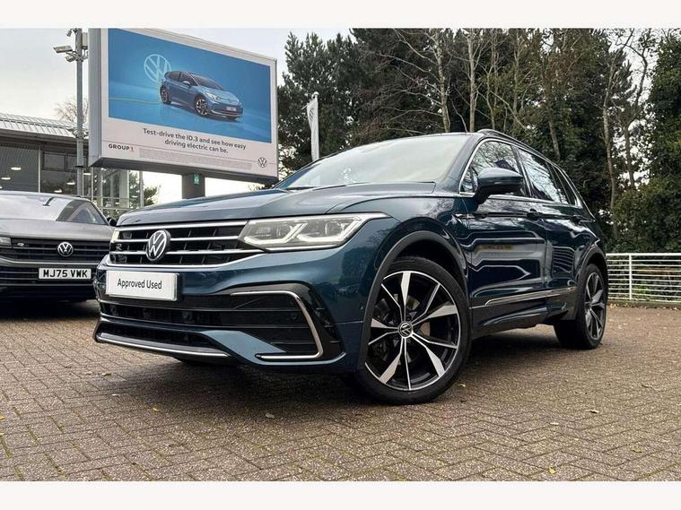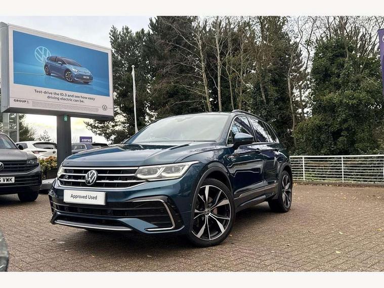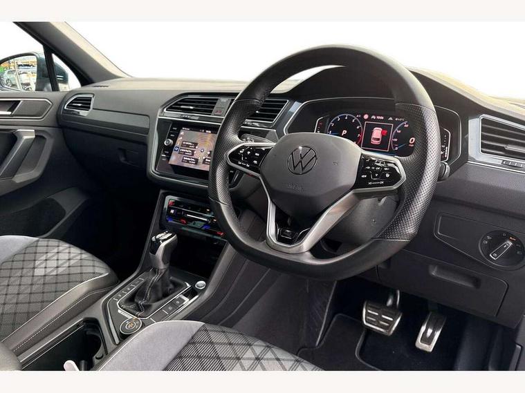 Adaptive cruise control ACC stop and go including speed limiter, App-Connect incl. App-Connect Wireless for Apple CarPlay and Android Auto, Bluetooth phone integration system, Distance control assist, Driver alert system, Driver profile selection, Dynamic road sign display, eCall emergency call system, Electromechanical speed sensitive power steering, Engine start/stop button, Lane keeping system Lane Assist, Lights on warning, Multifunction front facing camera, Outside temperature display, Premium multifunction display with multi colour display, Remote control boot opening, Rev counter, Revision / skills operating concept travel assistant, Service interval indicator, Speed limit display, Start/stop system with regenerative braking, Trip computer, Warning sound and light for doors and tailgate open, All wheel drive - 4Motion, Battery regeneration during braking, XDS electronic differential lock for improved traction and handling, 4 X 20 watt output, 8 Speakers, Diversity antenna for FM reception, Radio, SD card slot, Simultaneous pairing of 2 compatible mobile devices, SMS functionality - read, compose and send SMS messages using touch-screen display, Title and cover art display, USB C ports, Auto dimming interior rear view mirror, Automatic headlight control system, Body colour door handles, Chrome moldings on the side windows, Coming/leaving home lighting function, Dynamic headlight range control, Front and rear electric windows, Heated rear window, High level 3rd brake light, Laminated safety glass windshield, heat and sound insulating, LED headlamps with LED separate daytime running light and dynamic cornering light, LED rear combination lamps, LED rear number plate lights, License plate carrier in front and rear, Poor weather light and cornering light, R Line body kit, R Line side sills, Rain sensor windscreen wipers, Rear exhaust tailpipe, Rear fog lamp, Rear side wing doors, Rear spoiler in R style, Rear windscreen washer and wiper with interval delay, Side and rear windows in heat insulating glass, Trailer Stability Programme, Unique R Line badging, Windscreen wipers/ intermittent wipe + 4 position delay, 12V outlet in center console rear and in luggage compartment, 12V outlet in front and tray, 2 cup holders in front, 2 LED front reading lights, 2 LED rear reading lights, 3 bench rear seats in 2nd row, 3 rear headrests, 4 load lashing points, 40:20:40 split folding rear seats, Air Care Climatronic 3 zone automatic climate control with enhanced air filter and controls in the rear, Backrest release for left front seat, Black headlining, Brushed stainless steel pedals and footrest, Carpet mats in front and rear with decorative stitching in Gray, Climate control unit rear with touch function, Door and side trim panel in foam film, insert in leatherette, Front centre armrest, Front footwell illumination, Front seats head restraints (x-adjustment), Height adjustable front seats, Height/reach adjust steering wheel, Instrument lighting white adjustable panel illumination, Interior light with delay, Isofix Preparation 2 Rear child seats, Leather gear knob, Lockable cooled glovebox, Luggage compartment lighting, Luggage net, Rear bench seat asymetrically split folding, longitudinally movable and folding with load-through hatch and center armrest, Remote unlocking for rear seat backrest, Removable luggage cover, Removable rear headrests, Safety optimised front head restraints, Single front passenger seat, Sliding/reclining rear seats, Standard rear seat release, Storage compartment in driver's door, Storage compartment in passenger's door, Storage compartment in rear doors, Storage compartments in luggage area left and right, Storage tray on dashboard, Sun visors with illuminated vanity mirrors, Top front comfort seats, Variable boot floor, height adjustable and removable, Driver assistance pack plus - Tiguan DSG, 3 point seat belt for centre rear seats, 3 point seat belts with seat belt pretensioners for the outer rear seats, Active bonnet, Curtain airbags for front and rear passengers, Driver/Front Passenger airbags, Drivers knee airbag, Electronic parking brake with auto hold, Electronic Stability Control with driver steering recommendation, ABS, ASR, EDL, EDTC and trailer stabilization, Front assist with autonomous emergency braking (for Adaptive Cruise Control ACC up to 130 mph), Front disc brakes, Front passenger airbag deactivation, Front side airbags, Height adjustable front 3 point seatbelts + pretensioners, Hill hold control, Manual child proof rear door locks, Pedestrian monitoring system, Power assisted brakes, Proactive passenger protection system in combination with front assist, Rear disc brakes, Rigid safety cell with front and rear crumple zones, Two tone horn, Warning sound and light for front seat belts if unfastened, Anti theft alarm system with interior monitoring, backup horn and towing protection, Anti theft wheel bolts, Electronic engine immobiliser, Tool kit,