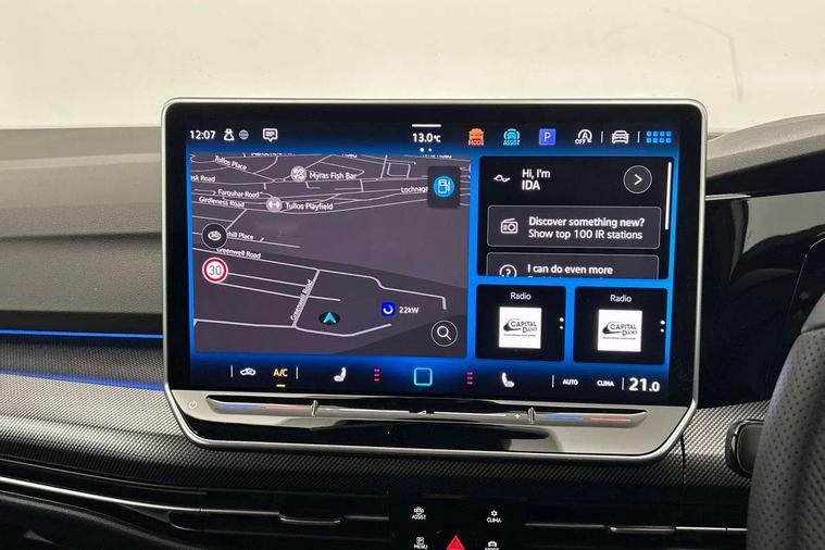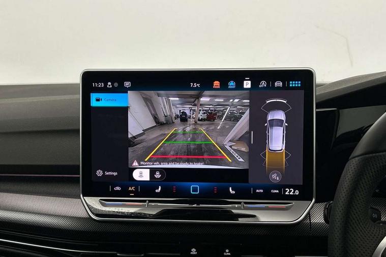 Activated carbon canister, Adaptive cruise control (ACC) with speed limiter and front assist (reacting to vehicles pedestrians and cyclists), Advanced driver attention and drowsiness monitor, Driver alert system, Dynamic road sign display, Dynamic steering, E-Sim card for online connectivity, eCall emergency call system, Front and rear parking sensors, Lane keeping system, Multi-color Digital cockpit pro, selection of different info profile possible, Multifunction camera for distance control, Navigation system, Oncoming vehicle braking when turning including swerve support, Power assisted speed sensitive steering, Preparation for light assist system, Speedo, rev counter, electronic odometer, trip, service interval display, exterior temperature and fuel gauge, Voice assistant and voice enhancer with chat GPT, Warning signal and warning light for front and rear seatbelts not fastened, We connect plus preparation, We connect preparation, Wireless app connect, Hybrid propulsion system, Petrol Particulate Filter, Start-stop system with battery regeneration (recuperation - energy recovery during braking), XDS electronic differential lock for improved traction and handling, Comfort telephony + wireless charging, without wireless aerial connection, Digital radio reception (DAB), Diversity antenna for FM reception, Infotainment system with 12.9" display, 3rd brake light, Auto headlights, Automatic headlamp activation with Coming home and Leaving home feature, Body colored bumpers in R-Line style, Body colour door handles, Chrome plated radiator grille inserts and light switch surrounds, Exterior mirrors convex on the left and aspherical on the right, Front and rear electric windows, Heat insulating windshield made of laminated glass, LED daytime running lights, Rear exhaust tailpipe, Rear fog light on one side and reversing lights on both sides, Rear side wing doors, Rear windscreen washer and wiper with interval delay, Remote electrically foldable door mirrors, puddle lights and reverse activated passenger's door mirror, Welcome light with surround lighting, 12V socket in front centre console, 12V socket in luggage compartment, 2 USB C ports in front, 2 USB charging sockets on the centre console in the rear charging capacity upto 45W, 3 rear head restraints, 3 seat bench in 2nd row, Ambient lighting with 30 colour incl. LED light unit in front footwell with selectable light colour, Brushed stainless steel pedals, Carpet mats, front and rear, Door insert, side trim panel and arm support in leatherette, Front centre armrest, Front passenger seat, Front seat lumbar support adjuster, Front sports seats, Integrated front head restraints, ISOFIX anchors for child seats on outer rear bench seats and on front passanger seat compatible for i-Size, Luggage compartment lighting, Manual height adjustable front seats, Plastic gear knob, Rear cupholder and loadthough, Sardegna cloth upholstery with front and outer rear seats Art Velour inner sides of bolsters, Soul black instrument panel, Split folding backrest with centre armrest and unsplit rear seat bench, Storm grey roof lining, Sun visors with illuminated vanity mirrors, 3 point height adj front seatbelts + pretensioners, 3 rear three point seatbelts, ABS, Autonomous emergency braking front assist with pedestrian and cyclist monitoring, Child locks on rear doors, Driver and front passenger airbag with front passenger airbag deactivation, Electronic parking brake with auto hold, ESC (Electronic Stability Control), Extended pedestrian protection measures, Hill start assist, Rear disc brakes, Two tone horn, Tyre pressure monitoring system, Volkswagen roadside assistance, Alarm with interior protection, Anti theft wheel bolts, Preparation for alcohol interlock, Decorative inserts carbon grey for dashboard and front door trim panels,