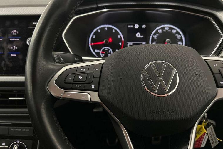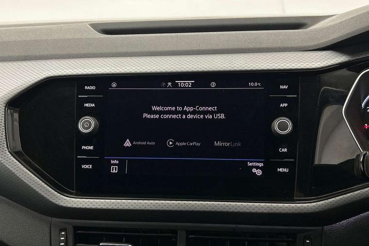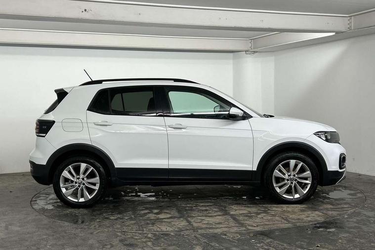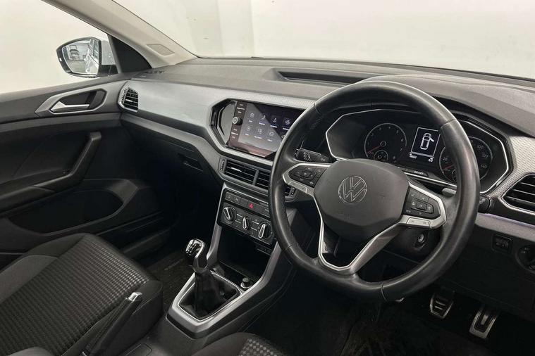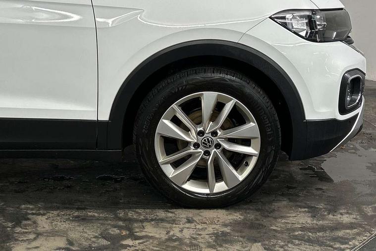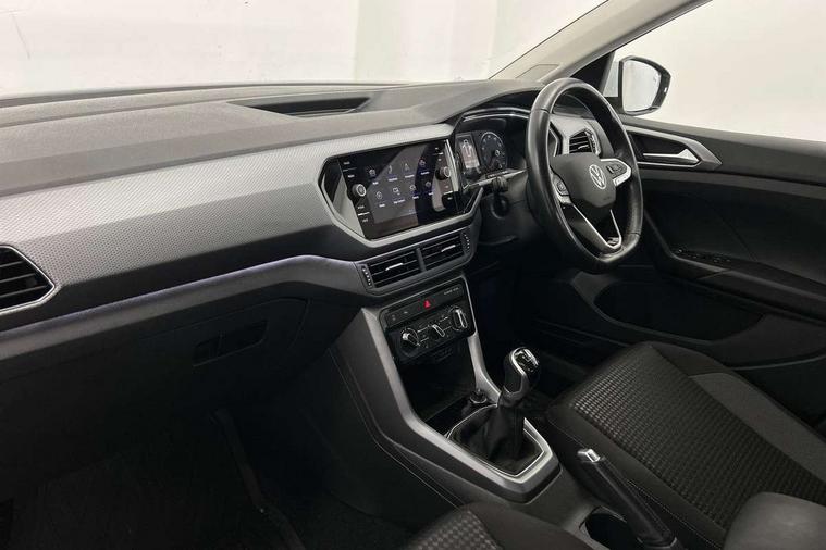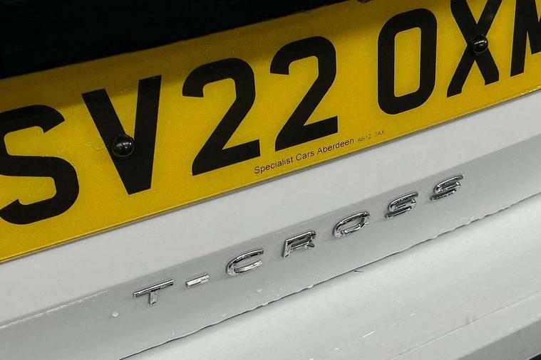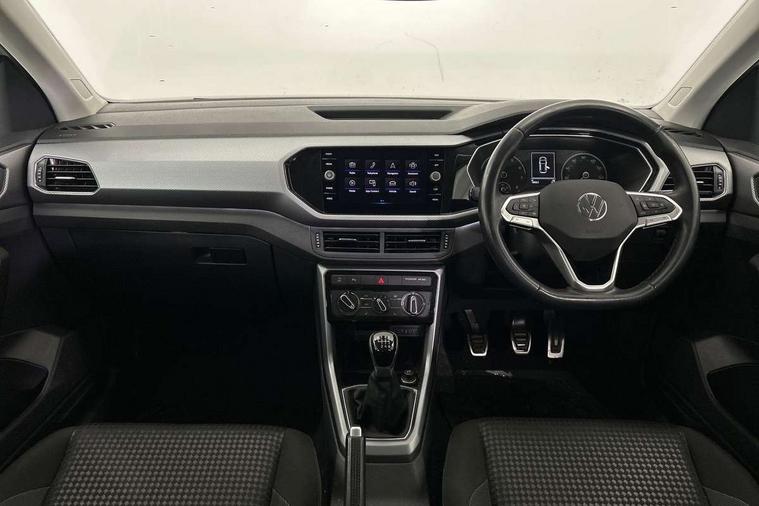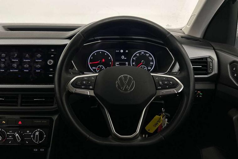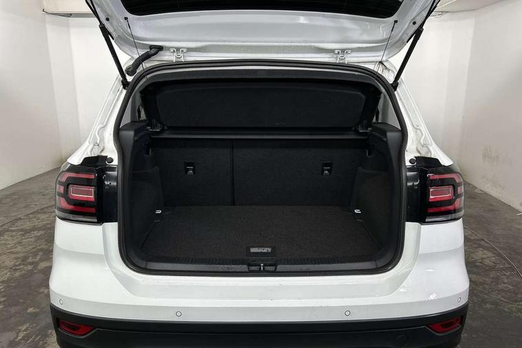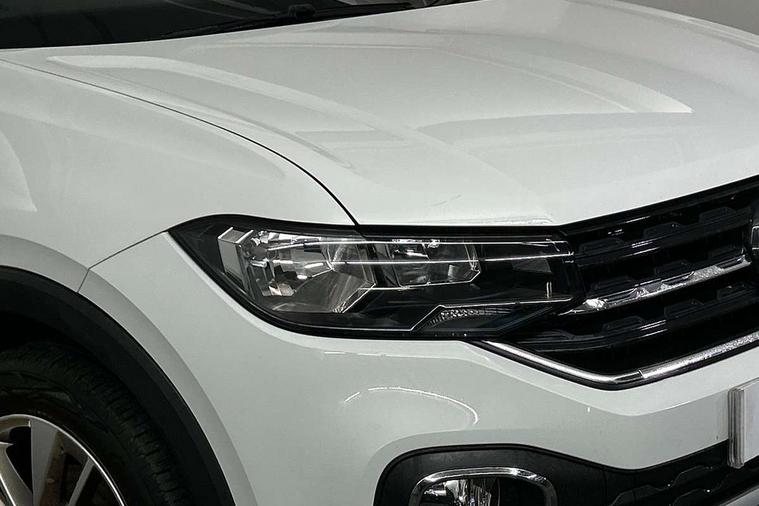 'Lights On' Reminder warning buzzer, Adaptive cruise control including front assist, forward collision warning, autonomous emergency braking, speed limiter, Blind spot monitoring, Bluetooth telephone and audio connection for compatible devices, Car information display, Driver alert system, eCall emergency call system, Lane assist, Low washer fluid warning light, Multifunction computer with visual gear change recommendation for fuel consumption, Operating permit alteration, Power assisted speed sensitive steering, Speedo, rev counter, electronic odometer, trip, service interval display, exterior temperature and fuel gauge, Stop/start system, Warning sound and light for doors and tailgate open, Warning sound and light for front seatbelts unfastened, We Connect Go Dongle, Wireless Car net app connect with Apple CarPlay, combined functionality of Apple CarPlay/Android Auto and MirrorLink, Battery regeneration during braking, Misfuel prevention device, 2x USB connection with USB charging sockets and in rear centre console, DAB Digital radio receiver, Diversity antenna for FM reception, Multi device interface (MDI) with USB connection, Music playback - MP3, WMA and AAC files, Premium USB cable for Apple or Android smartphone compatibility, Simultaneous pairing of 2 compatible mobile devices, Title and cover art display, 3D active badge on B-pillar, Active door sills, Active sill panel trims, Automatic hazard lights activation under emergency braking, Black roof rails, Body colour door handles, Body coloured bumpers, Dusk sensor + automatic driving lights, Electrically foldable, adjustable and heated door mirrors with reverse activated kerb view adjustment on passenger's side, Front and rear electric windows, Front fog lights with static cornering function, Galvanised body, Heated rear window, High level 3rd brake light, Lower door sills and door pillars in black, Radiator grille with high gloss surface and chrome strip, Rear fog light on one side, reversing light on both sides, Rear lights incorporating LED technology, Rear side wing doors, Rear tinted glass 65% approx light absorbing from B pillar backwards, Rear window aerial, Rear windscreen washer and wiper with interval delay, Reflectors in all doors, Tailgate with integrated roof spoiler, Windscreen wipers/ intermittent wipe + 4 position delay, 12V Accessory socket in centre console, 3 rear head restraints and 3 rear three point seat belts with ECE label, 3 seat bench in 2nd row, 60/40 split folding rear seat backrest, Ambient lighting and sourround lighting, Brushed stainless steel pedals, Drawer under drivers seat, Driver and front passenger sunvisor with vanity mirror, Driver's sunvisor with ticket holder, Dust and pollen filter, Front + rear carpet mats, Front and rear reading lights X 2, Front centre armrest with storage compartment, Front seat back storage pockets, Front seats with adj lumbar support, Glovebox, Heating and fresh air system with 4 stage blower, Height/reach adjust steering wheel, Instrument lighting white adjustable panel illumination, Interior light with delay, Isofix child seat preparation for 2 rear child seats, Luggage compartment cover, Luggage compartment lighting, Moveable and foldable Rear bench seat, Single front passenger seat, Storage compartment in drivers and front passengers door, Three spoke multi-function leather trimmed steering wheel and gearknob, Trapeze cloth upholstery, Variable boot floor, Winter pack - T-cross, Anti-lock Braking System (ABS) with Hydraulic Brake Assist (HBA), Automatic post collision braking system, Driver and front passenger safety-optimised head restraints, Drivers and Front Passengers airbags with front passengers airbag deactivation switch, ESC with EDL, ASR, EDTC and trailer stabilisation function, Extended and proactive pedestrian protection, Front and rear curtain airbags, Front seat side impact airbags, Height adjustable 3 point automatic front seatbelts with pretensioners, Hill start assist, Pre crash preventive occupant protection, Rear door child safety locks, Rigid safety cell with front and rear crumple zones, Single torn horn, Tyre pressure loss indicator, Volkswagen roadside assistance, Alarm with interior protection and deactivation via infotainment system, Child security locks in rear doors, Electronic engine immobiliser, Remote tailgate unlocking using key fob, Decorative strips in doors in matt silver/ center console, 17" Clayton alloy wheels + anti theft wheel bolts, Breakdown kit,