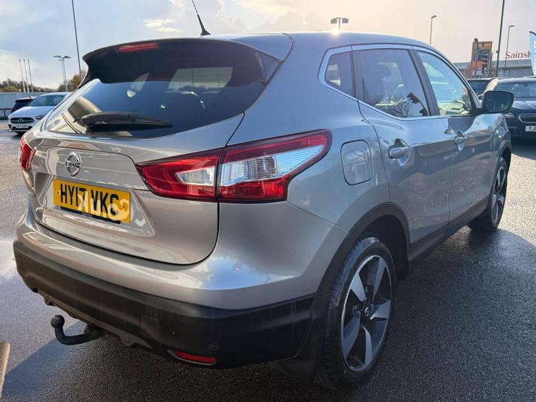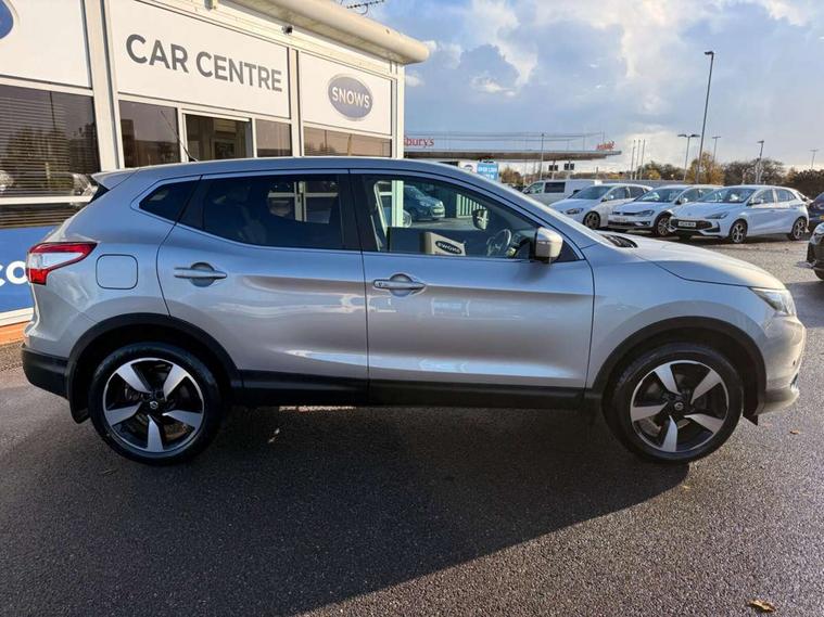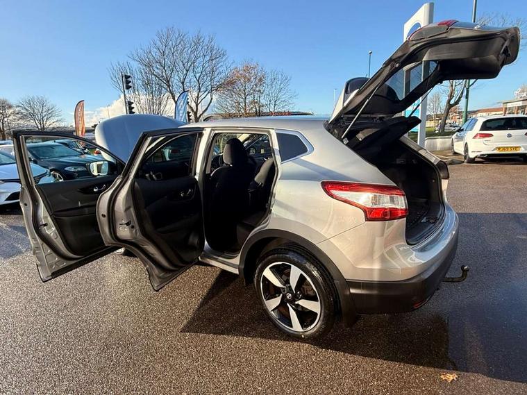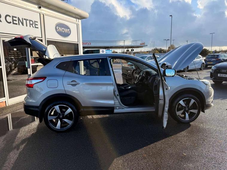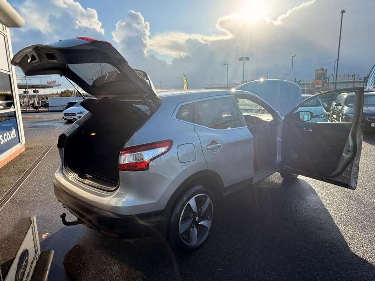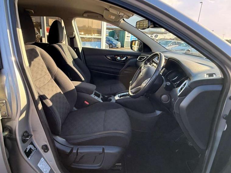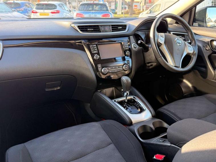 5" TFT driver information centre, 7" touch screen, Around View Monitor, Bluetooth phone integration system, Cruise control, Front and rear parking sensors, Lane departure warning system, Nissan connect sat nav system, Push button starter, Service interval indicator, Speed limiter, Speed sensitive power steering, Traffic sign recognition, Trip computer, 6 speakers, DAB radio/CD player, Steering wheel mounted audio controls, USB/aux input socket, 2 speed wipers+variable intermittent wipe, Automatic headlamp activation, Black honeycomb front grille, Body colour bumpers, Body colour door mirrors and handles, Chrome window surround, Electric folding and heated door mirrors, Electric front/rear windows, Front fog lights with chrome surrounds, High beam assist, Interior mirror with auto anti dazzle, LED daytime running lights, Rain sensor windscreen wipers, Rear privacy glass, Rear wiper, 12V socket, 60/40 split folding rear seat, Ambient interior lighting, Cloth upholstery, Driver's lumbar support, Driver/passenger front seatback pockets, Dual zone climate control, Footwell ambient lighting, Front armrest, Front cupholders x 2, Front headrests, Front seat belt pre-tensioners with load limiters, Height adjustable driver's seat, Height adjustable passenger seat with lumbar support, Illuminated glovebox, Isofix child seat preparation, Leather gearknob, Leather steering wheel, Luggage area divider, Map reading lamp, Pollen filter, Rake/reach adjustable steering wheel, Rear armrest with 2 cupholders, Rear headrests, ABS, brake assist and EBD, Active Trace Control, Child locks on rear doors, Curtain airbags, Driver/front passenger airbag, Electronic parking brake, ESP + traction control, Forward emergency braking, Height adjustable front seatbelts, Hill start assist, Side airbags, Three 3 point rear seatbelts, Tyre pressure monitoring system, Warning triangle and first aid kit, Alarm, Immobiliser, Intelligent Key, Remote central locking, 18" Diamond cut alloy wheels, Tyre puncture repair kit,